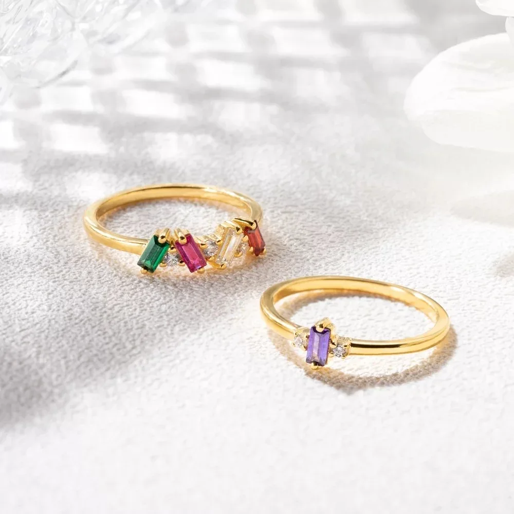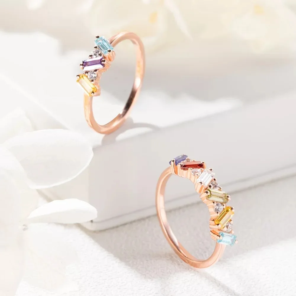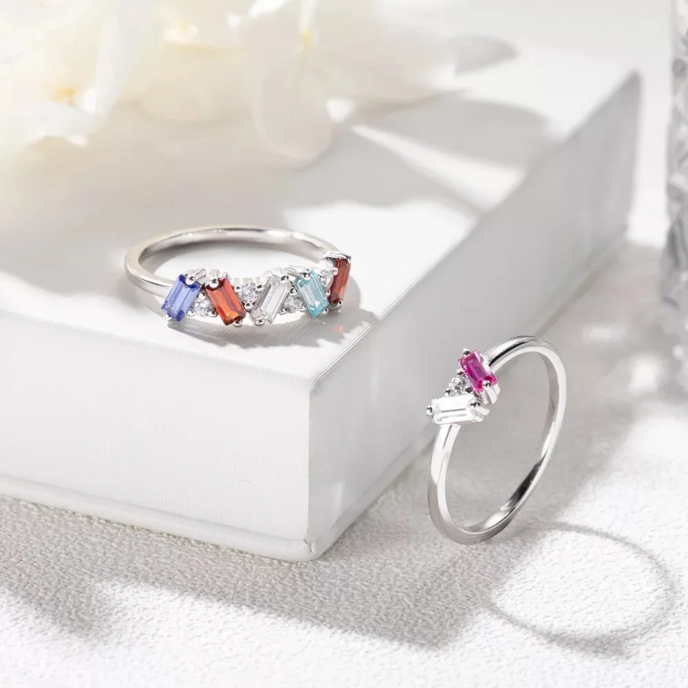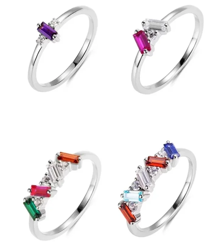 Trendy Exquisite 925 Sterling Silver Zircon Colorful Stones Ring Plated Sterling Silver Zirconia Ring for Fashion Women
