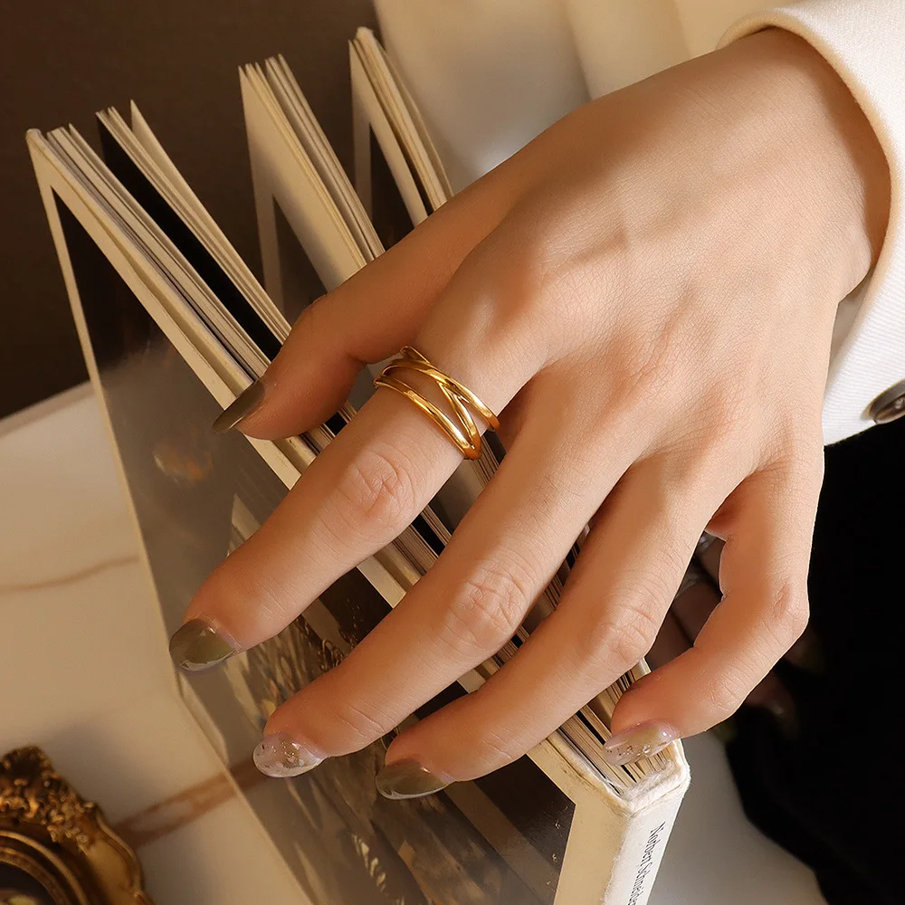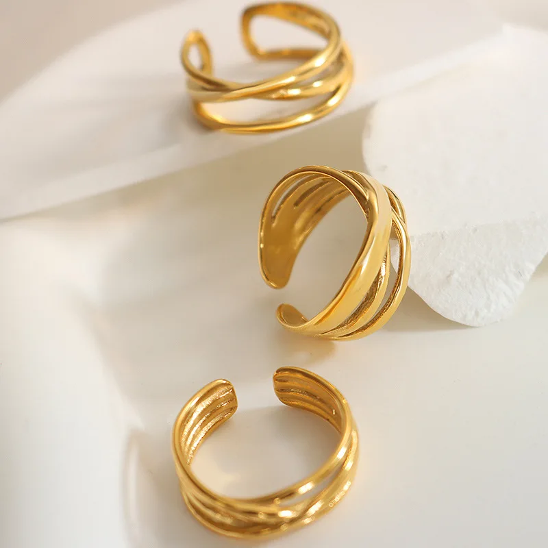 2023 Fashion Winding 18k Gold Plated Ring High Quality Multi Layered Finger Ring for Women