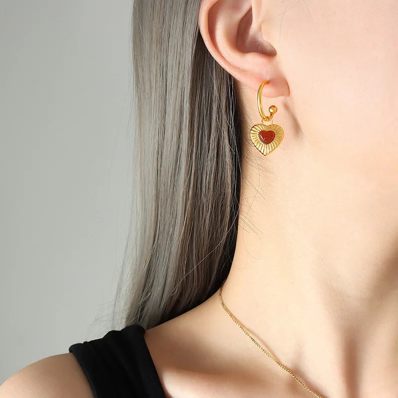 Valentine Jewelry Set for Woman Waterproof Titanium Steel Gold Plated Red Heart Drop Earrings and Necklaces Set