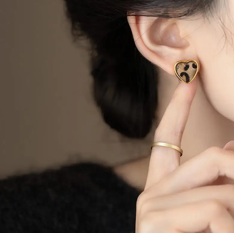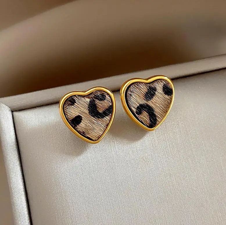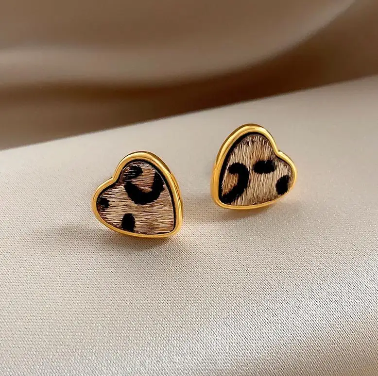 2025 Fashion New 18k Gold Plated Leopard Print Heart Stud Earrings for Women Gift