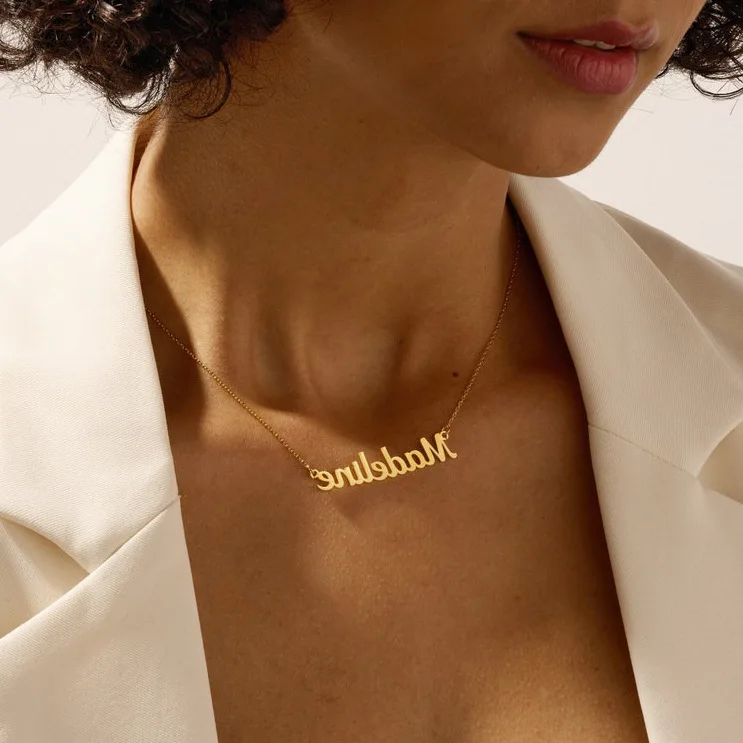 OEM Custom One Piece 18K Gold Name Pattern Necklace Stainless Steel English Letter Link Chain for Mama Children Friend