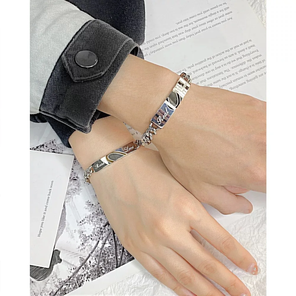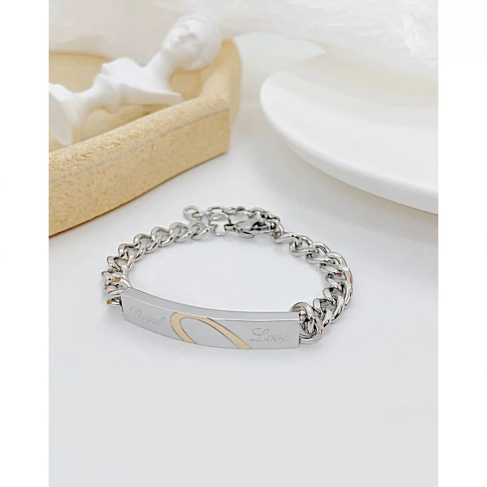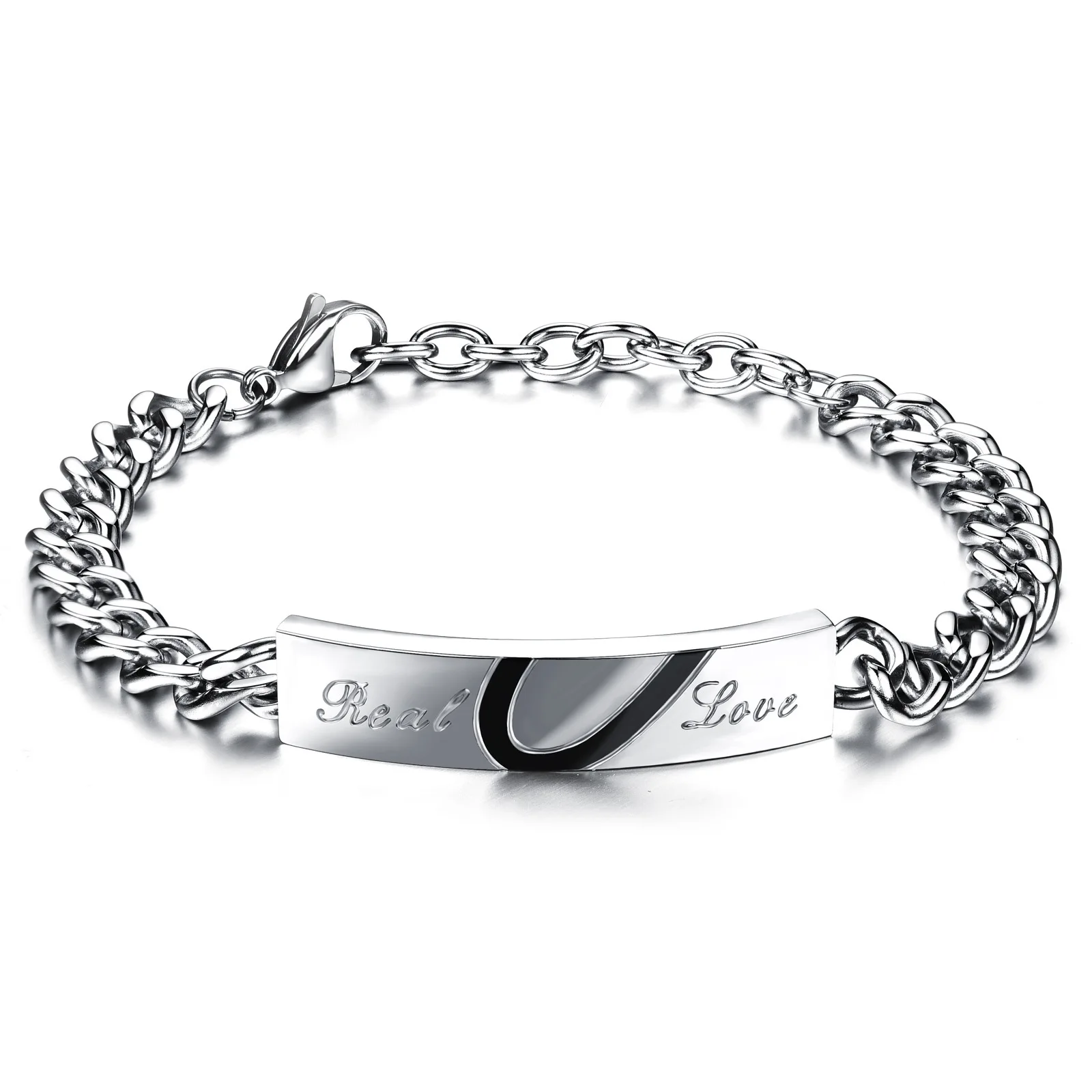 Wholesale Personal Gift Half love Couple Bracelets Silver Cuban Link Chain Stainless Steel Chunky Bracelet for Lovers