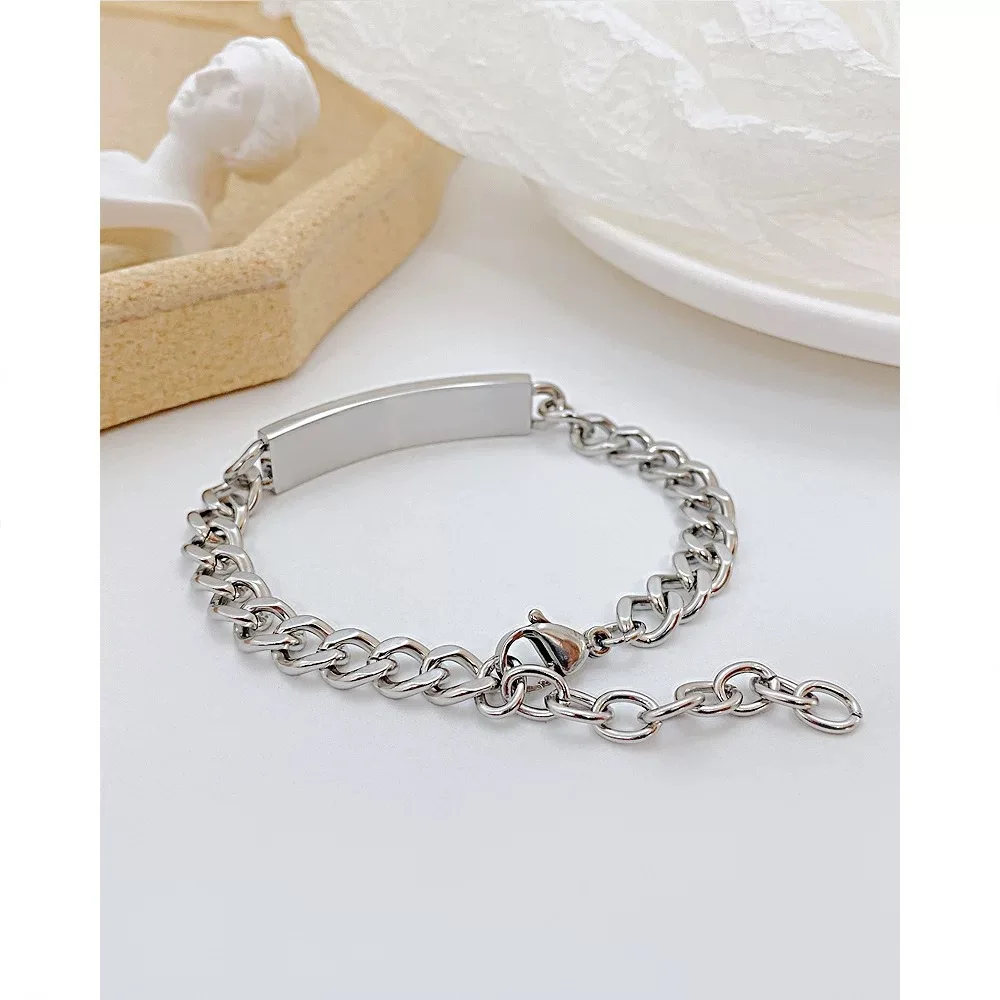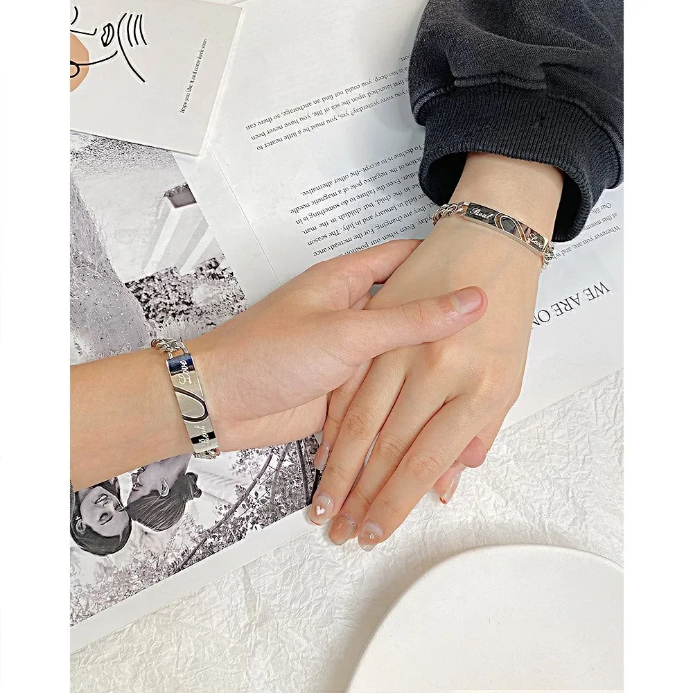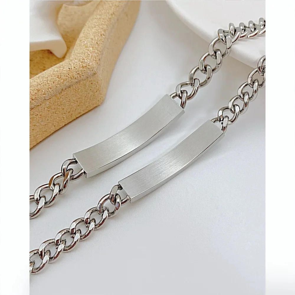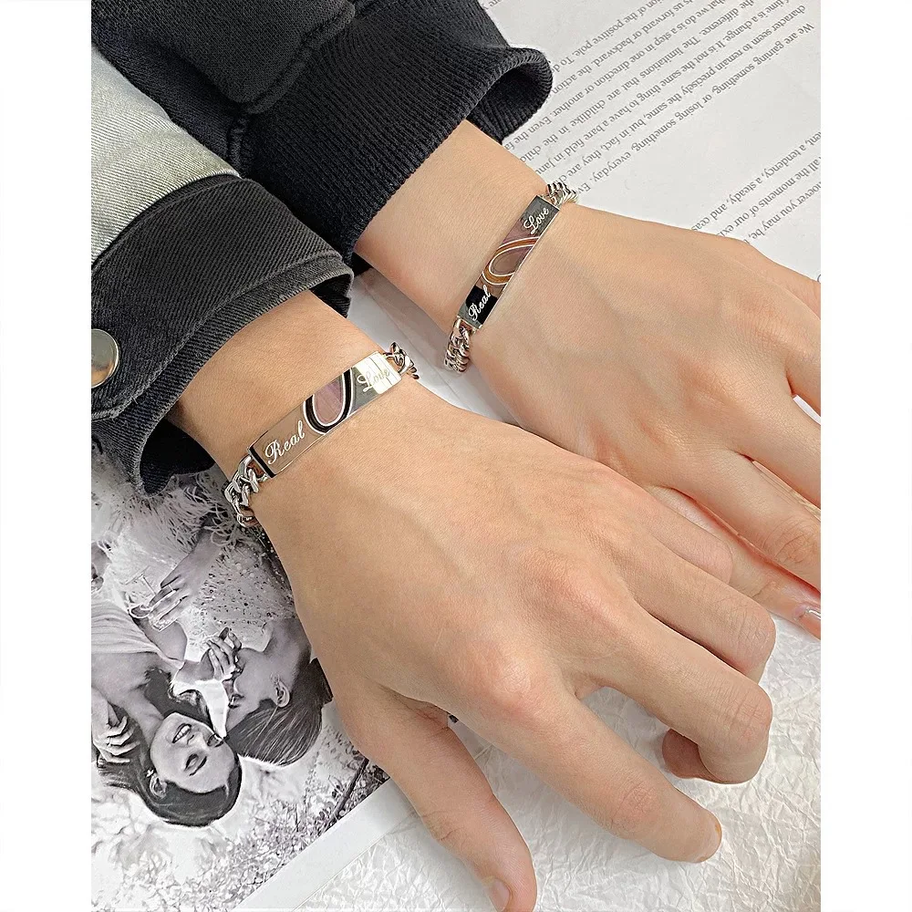 Wholesale Personal Gift Half love Couple Bracelets Silver Cuban Link Chain Stainless Steel Chunky Bracelet for Lovers
