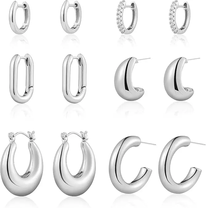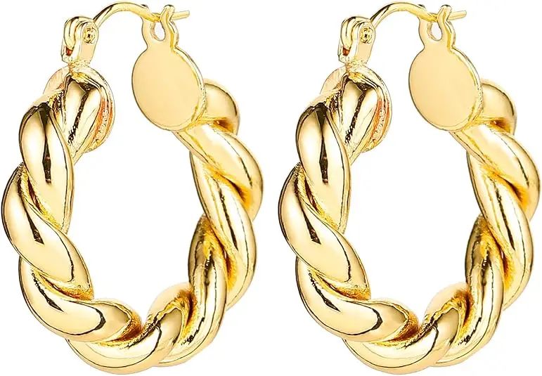 Custom Women's Hollow Chunky Earrings Hypoallergenic Gold Plated Hoop Earring Thick Open Twisted Huggie Hoops Earring Sets