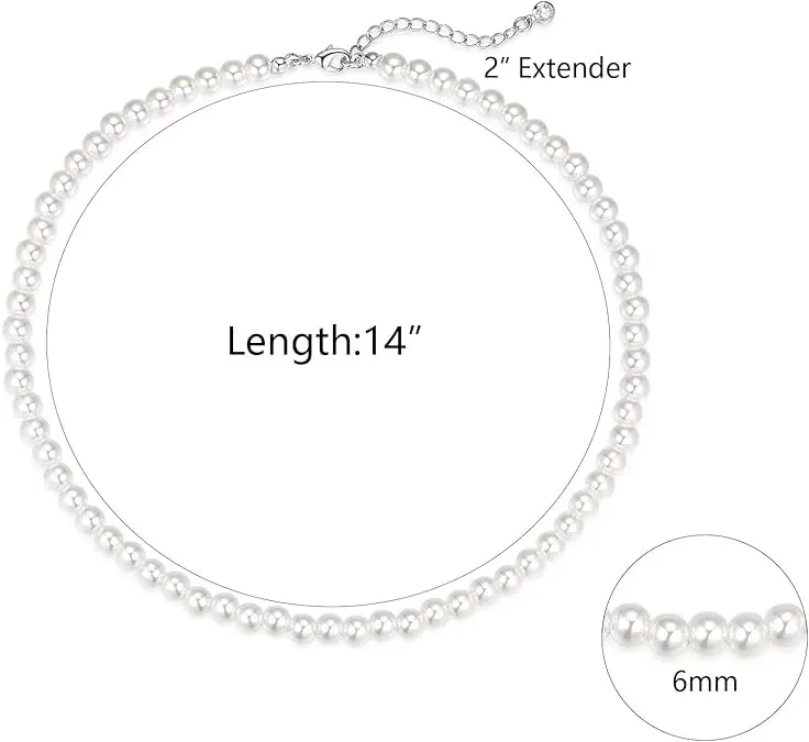 High Quality White Pearl Necklace Women's Waterproof and Sweatproof Round Imitation Pearl Choker Necklace Delicate Jewelry