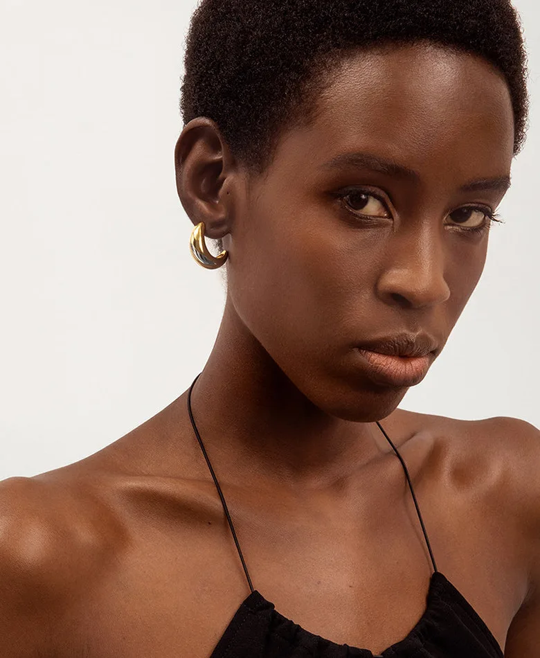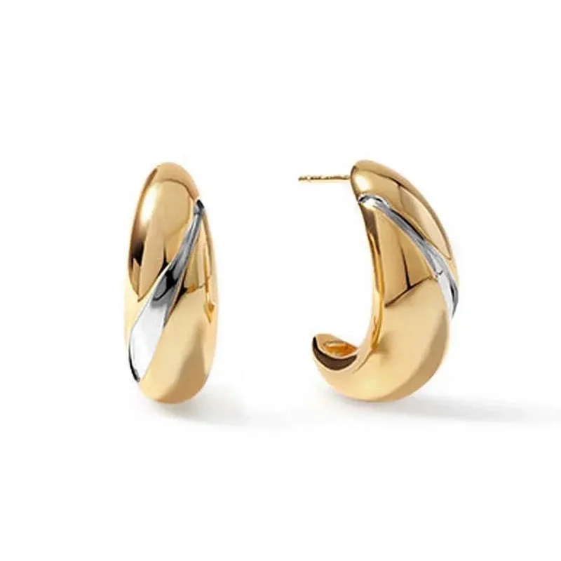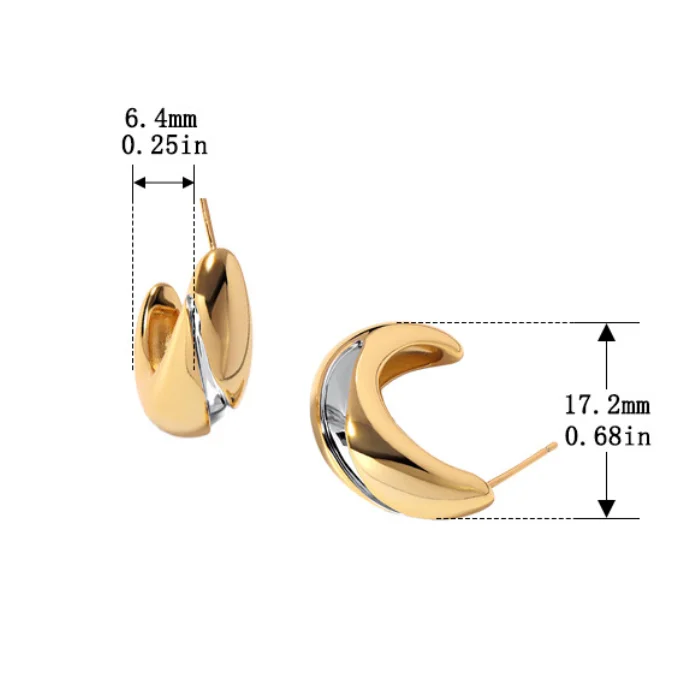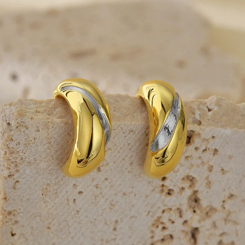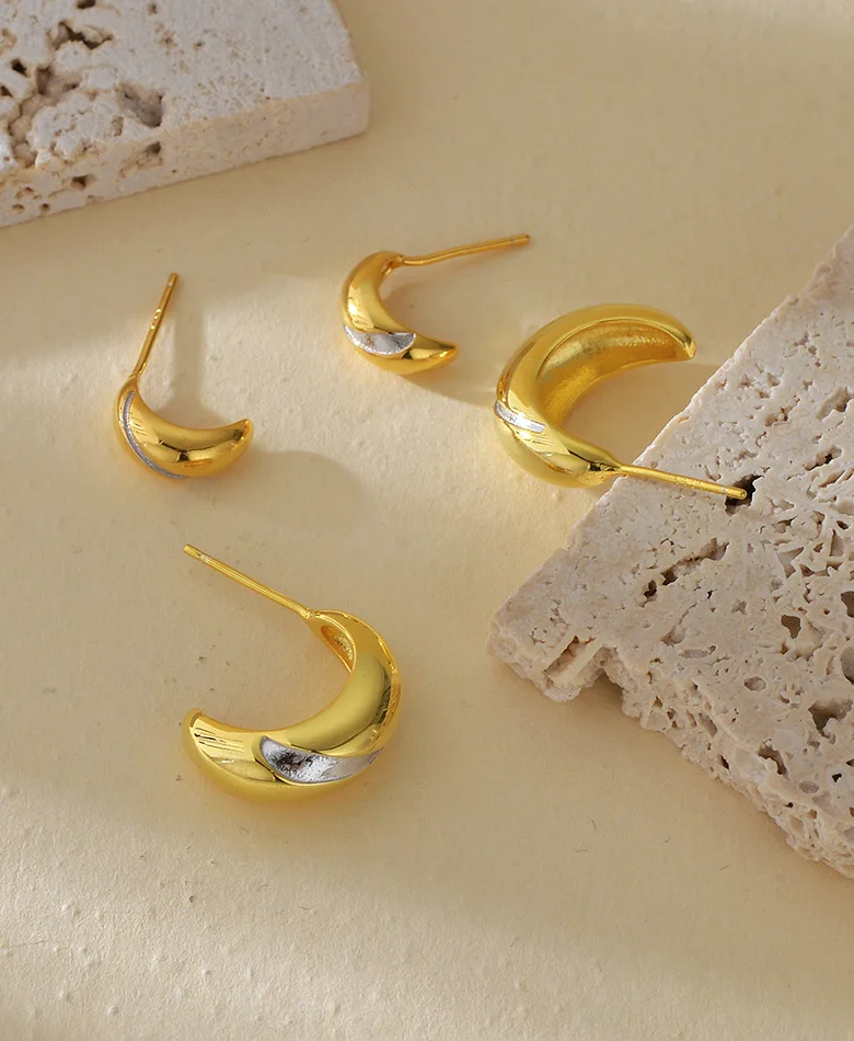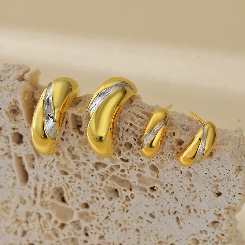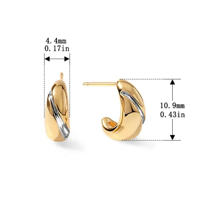 Sterling Silver C-Shaped Bicolor Ear Studs Trendy Pierced Earrings 925 Luxury Fashion Jewelry