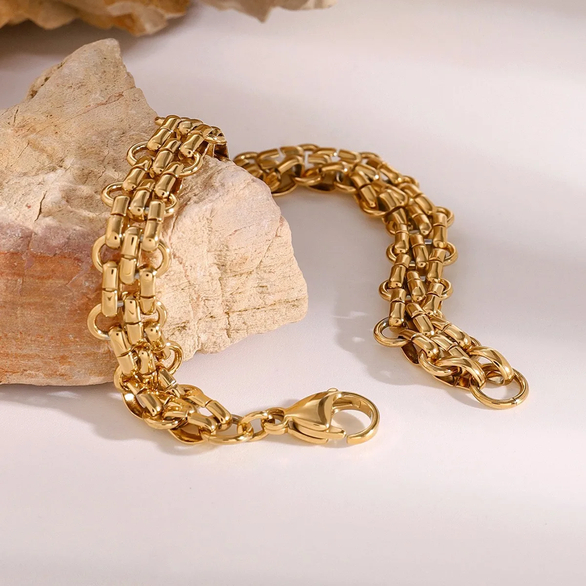 Hip Hop Chunky 18K Gold Plated Stainless Steel Cuban Link Bracelet Heavy Duty Woven Chain Bangle for Women & Men