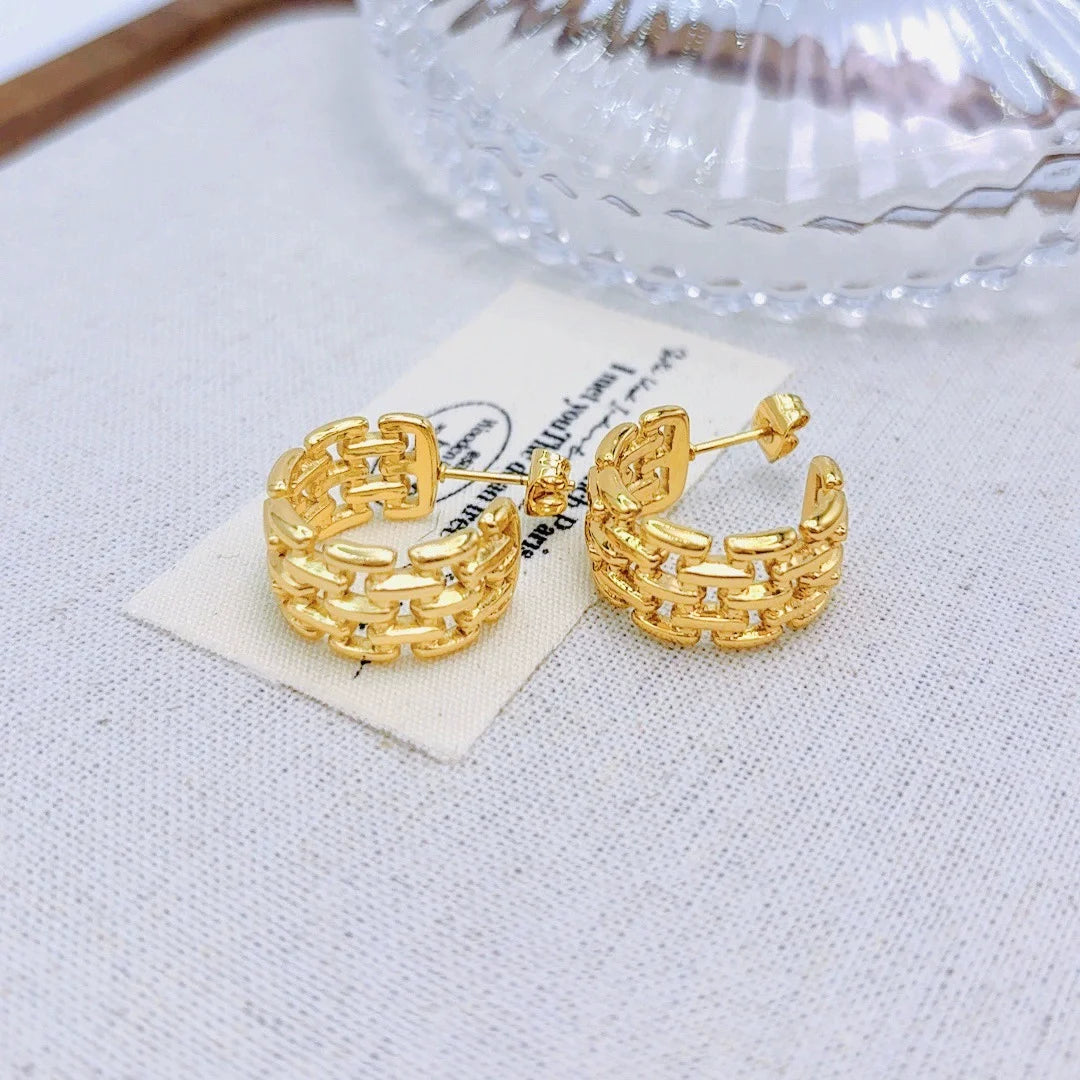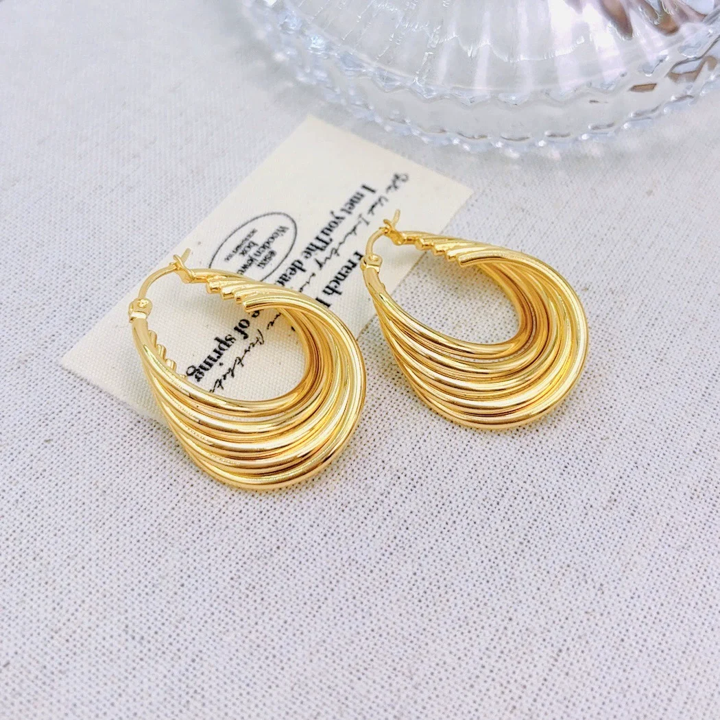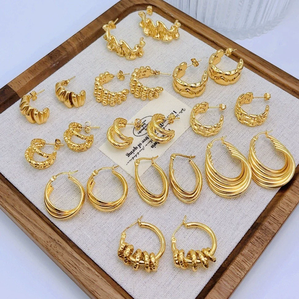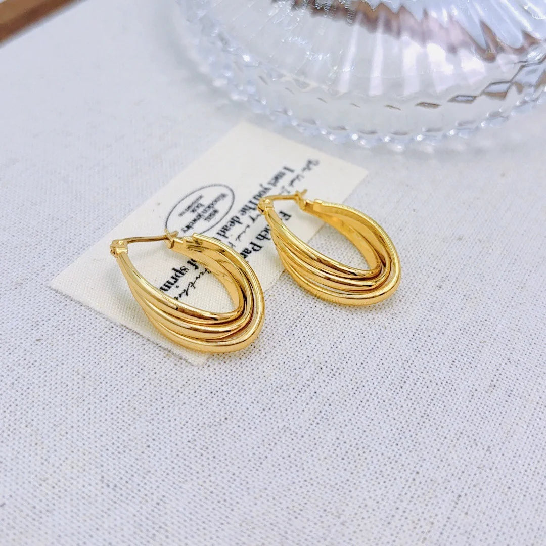 Titanium Steel Huggie Chunky Statement Earrings with Adjustable Clasp Women's Luxury Fashion Jewelry Boho Chic Minimalist Design