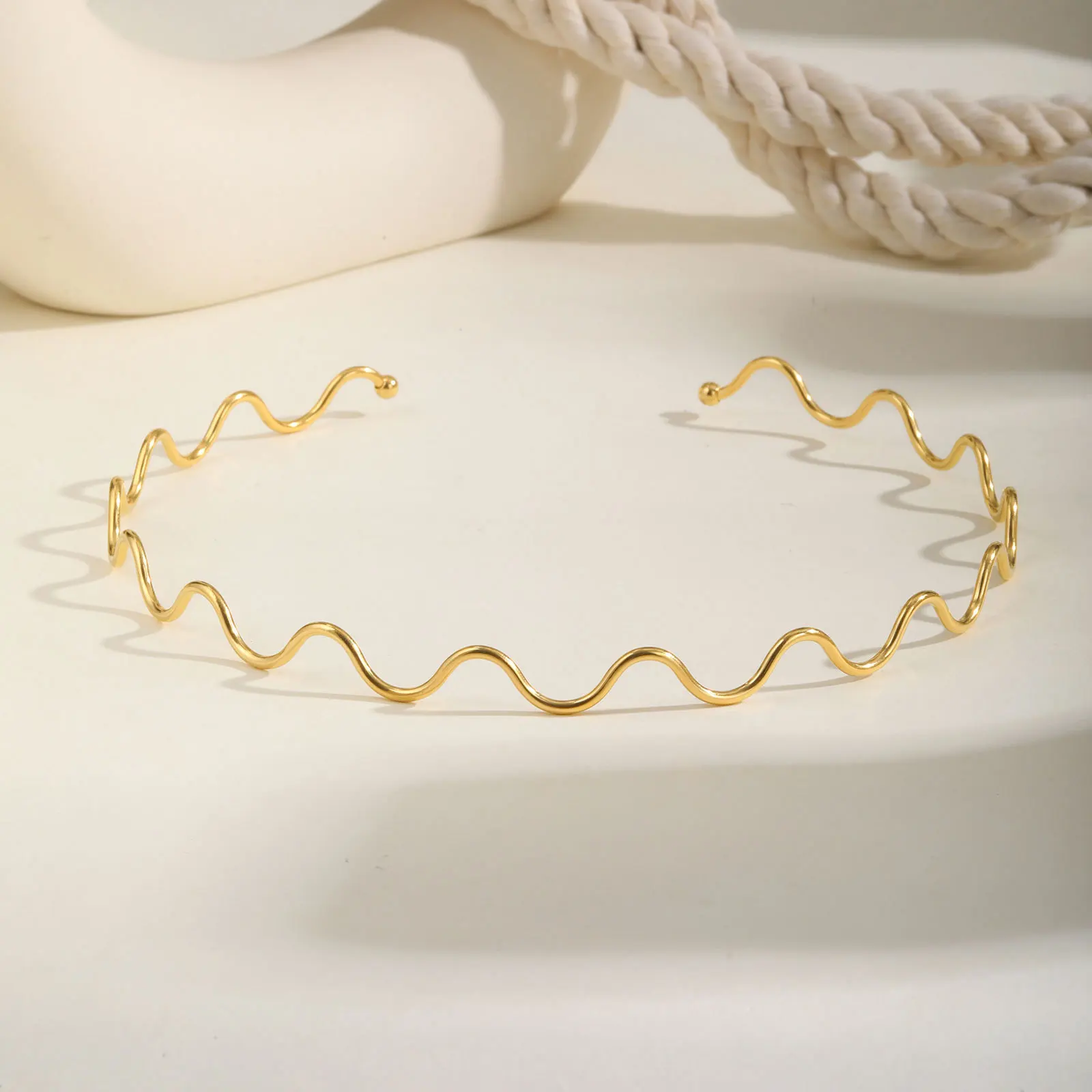 Wholesale Fashion Minimalist Stainless Steel 18k Gold Plated Thin Wavy Necklace Earring Bracelet Jewelry Set for Women