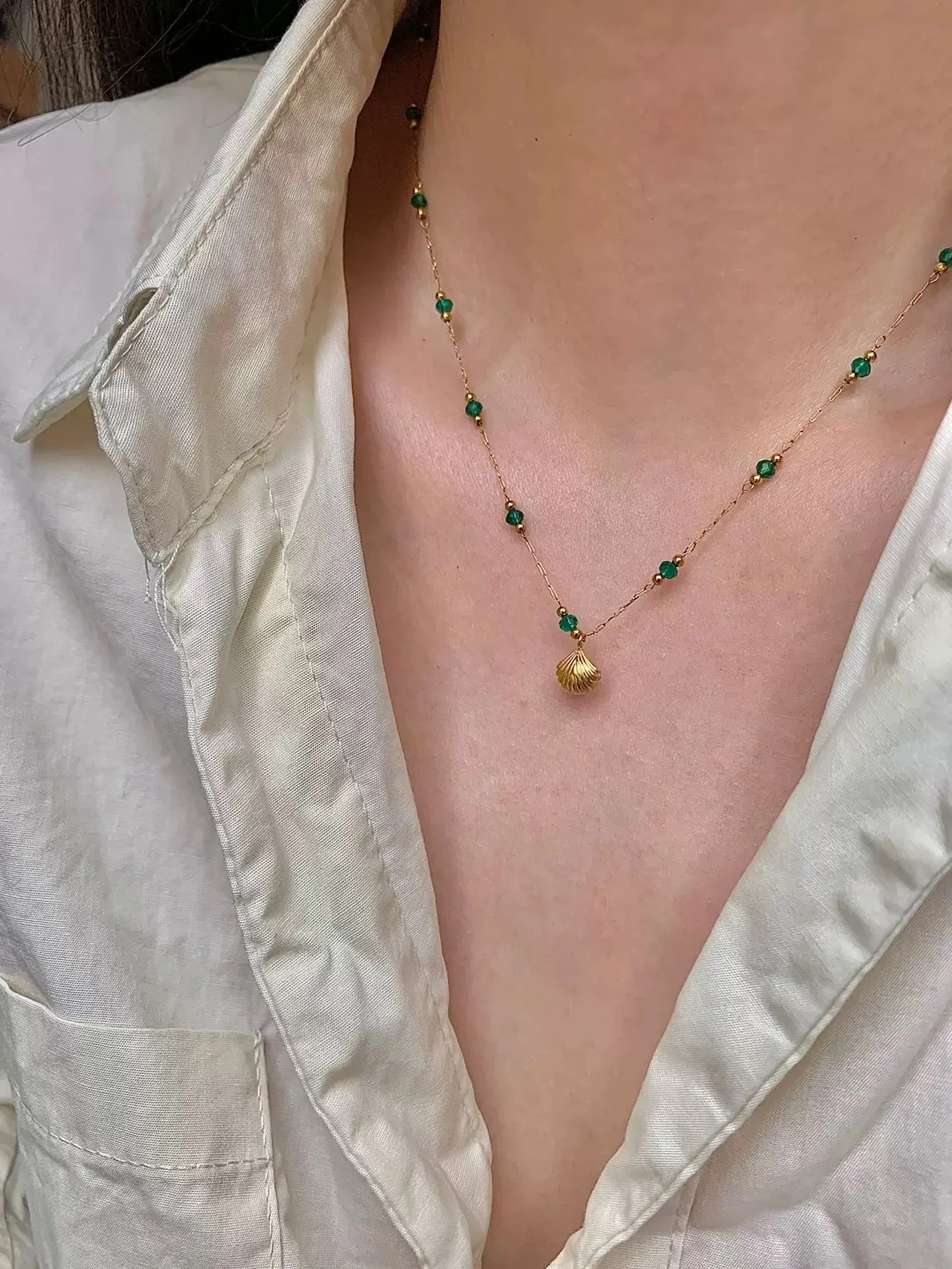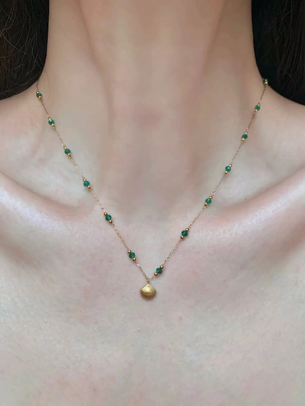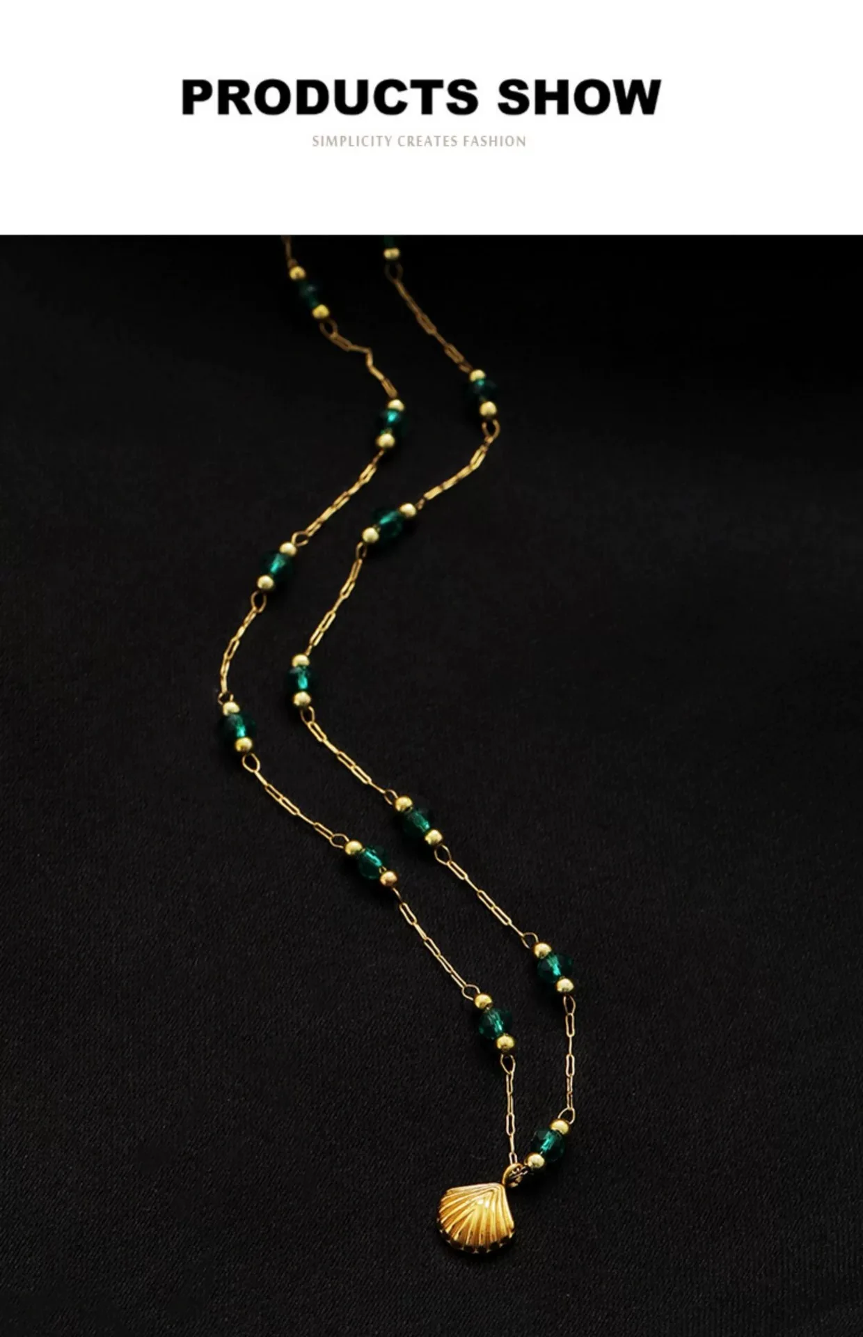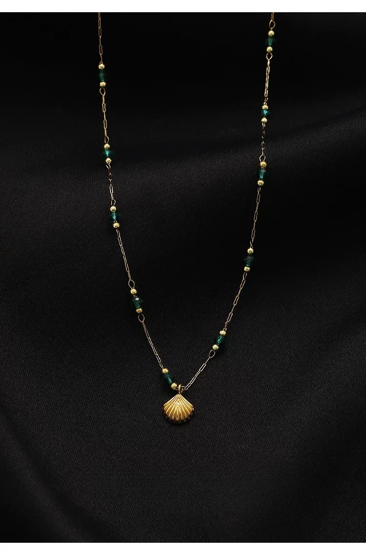 Stainless Steel 18k Gold Plated Green Beaded Shell Necklace Marine Theme Necklace for Women 2025 Summer Trend