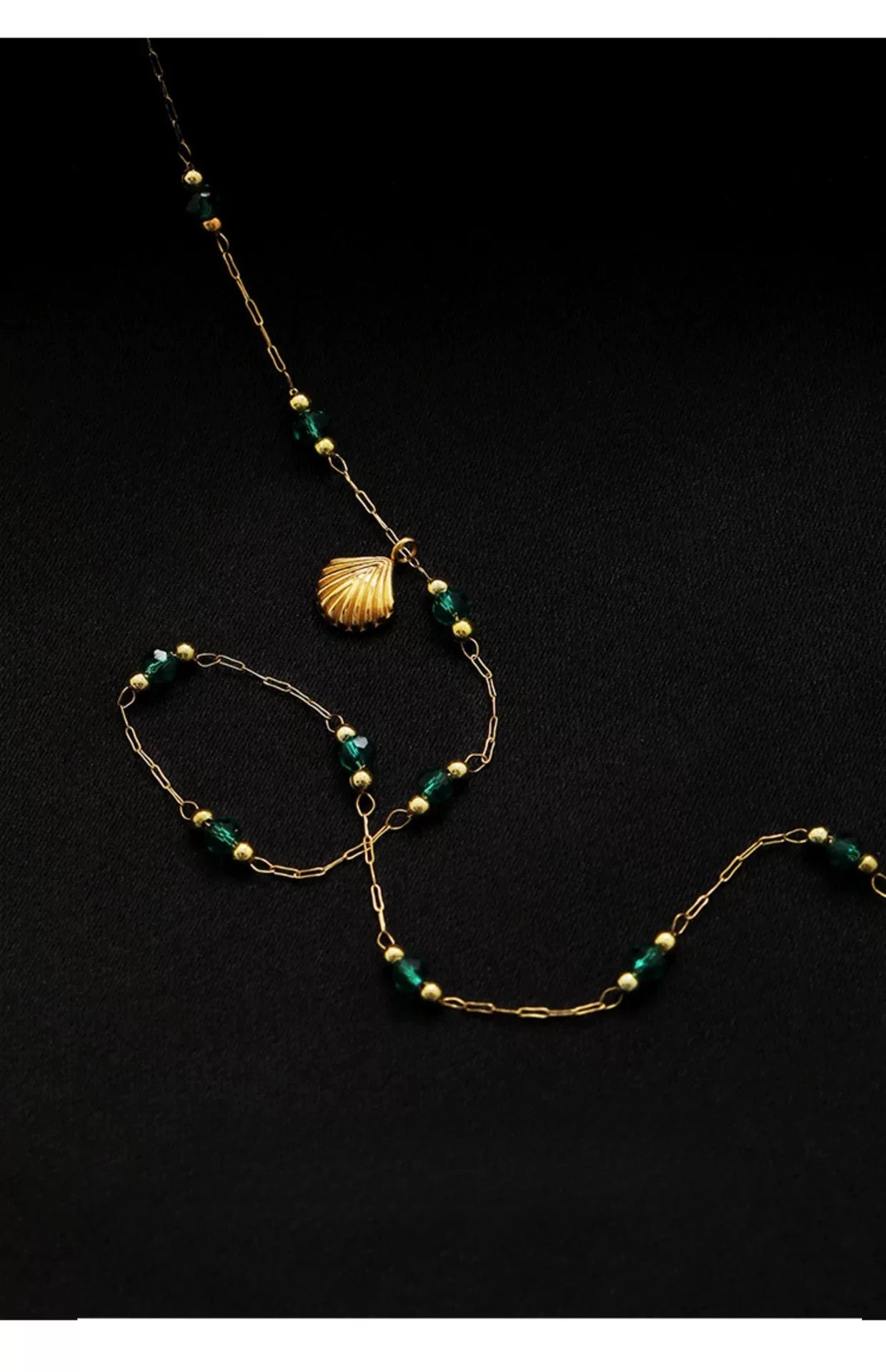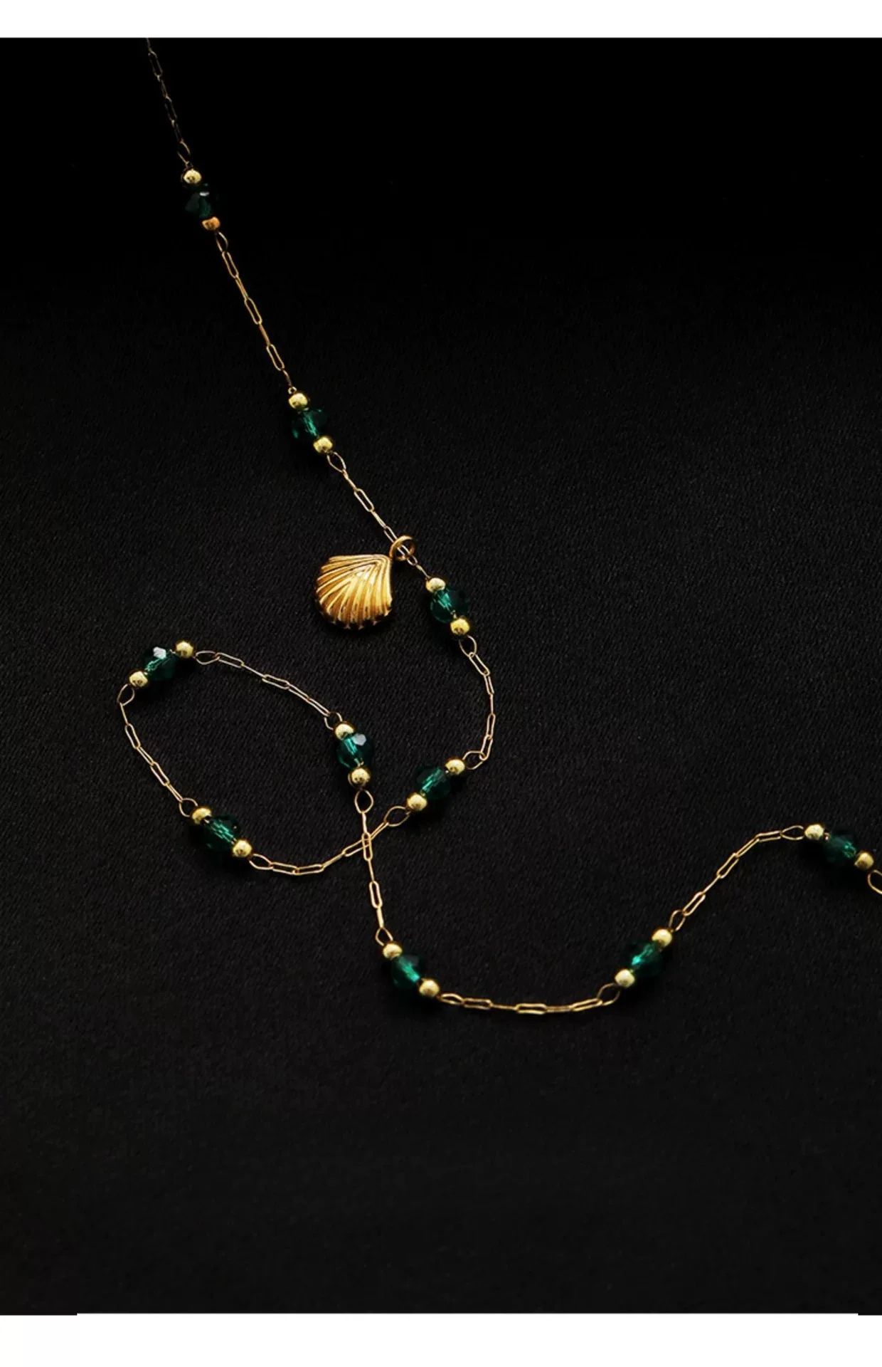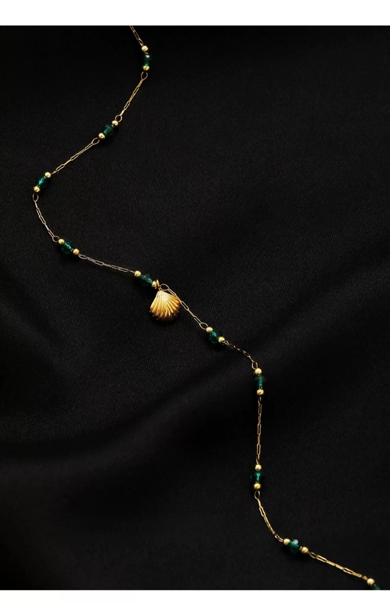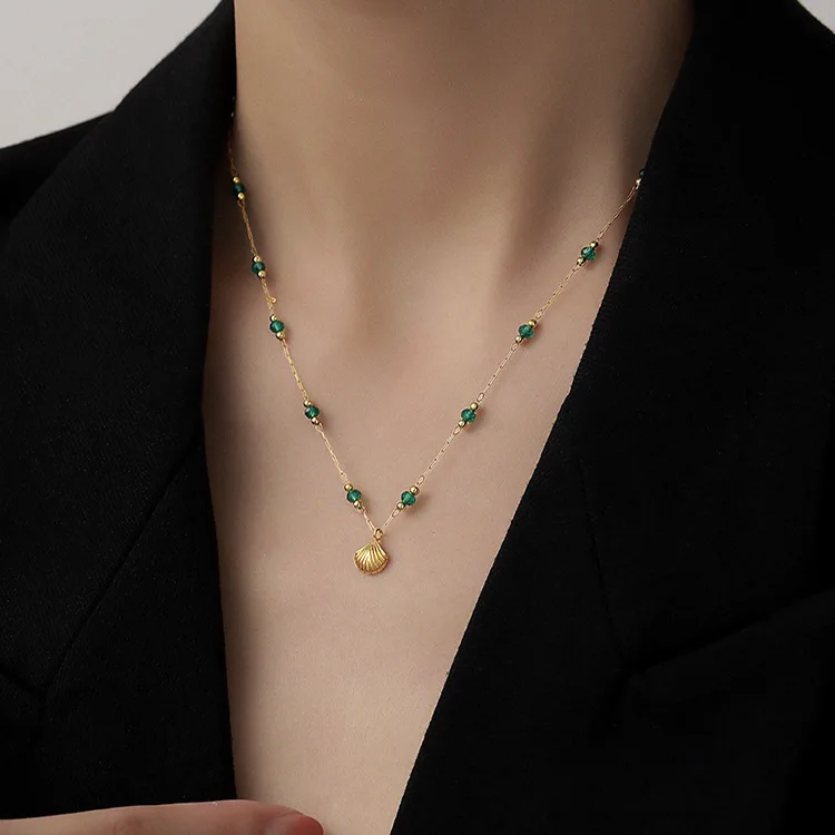 Stainless Steel 18k Gold Plated Green Beaded Shell Necklace Marine Theme Necklace for Women 2025 Summer Trend