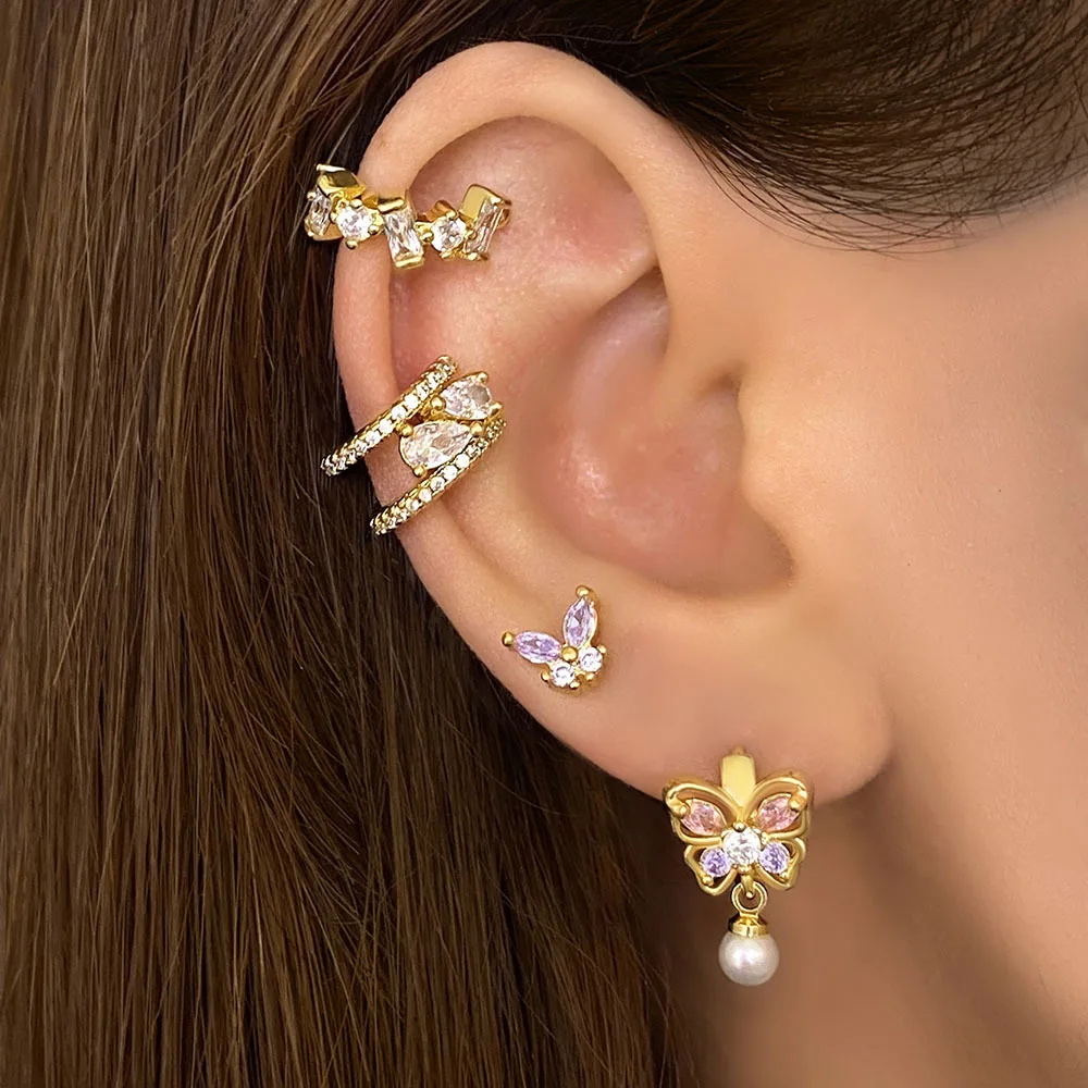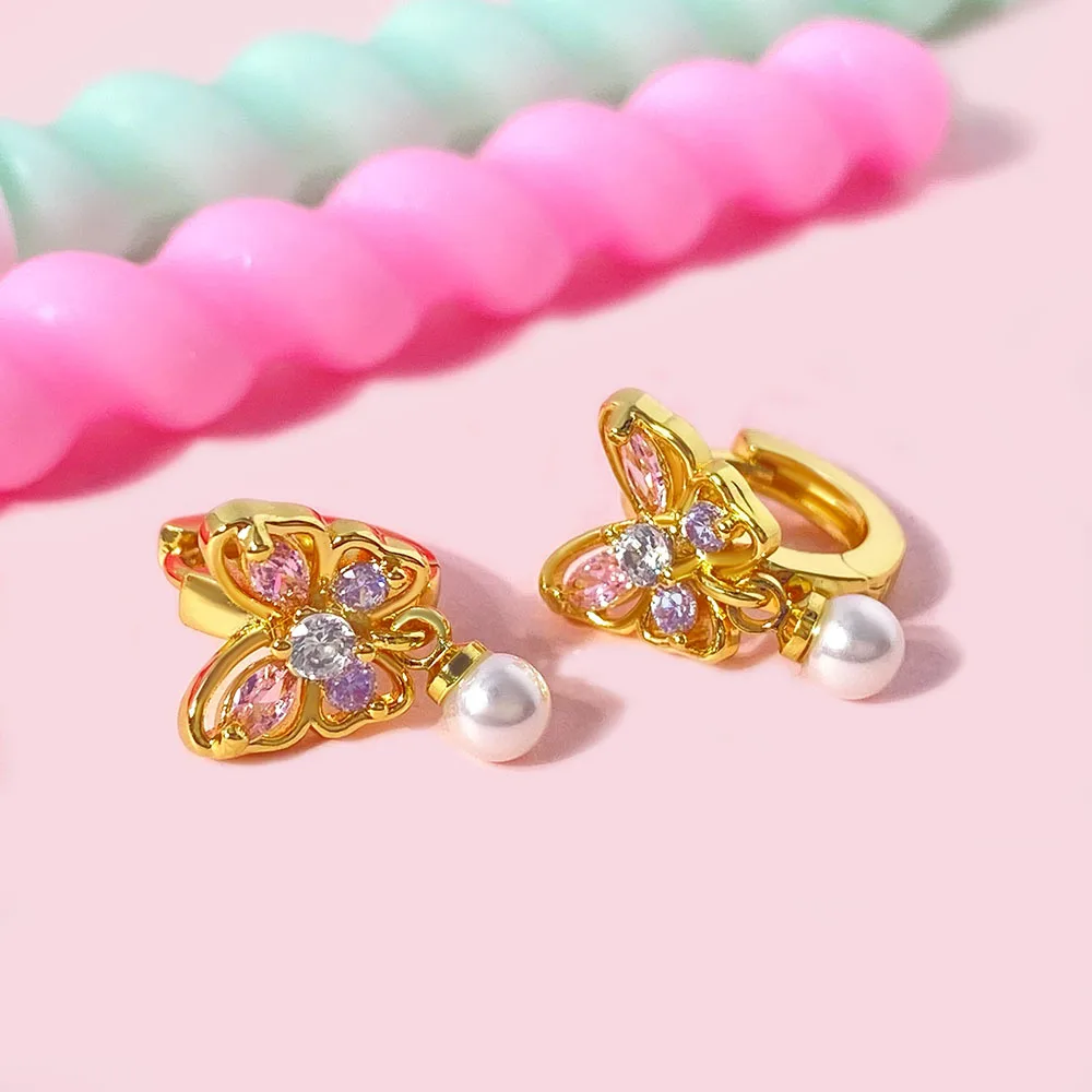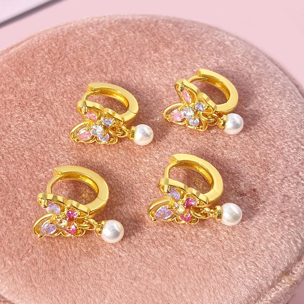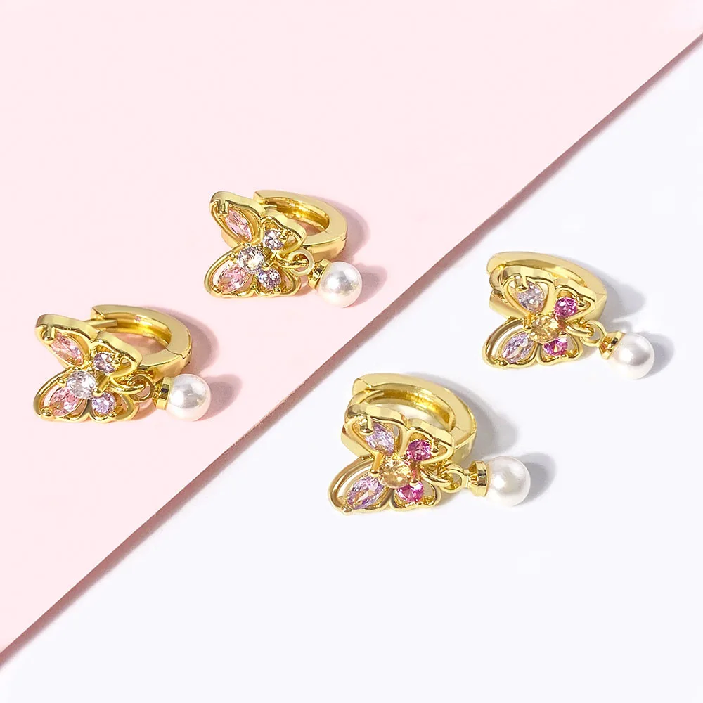 Trendy Gold Plated Cubic Zirconia Pearl Butterfly Hoop Earrings for Women Full Diamond Star Butterfly Earrings Jewelry