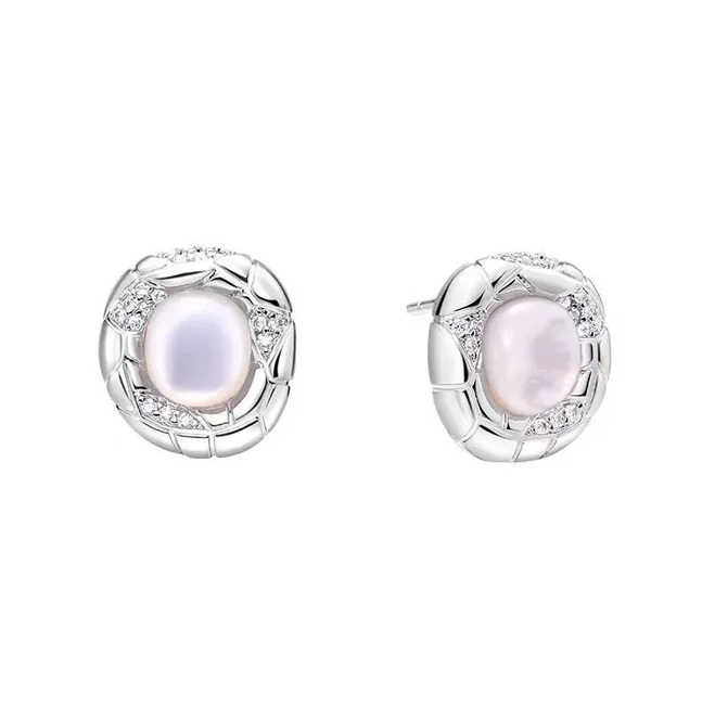 Luxurious Fashion 925 Sterling Silver Round Pearl Earrings Gold Plated Exclusive for Women's Chic Accessories