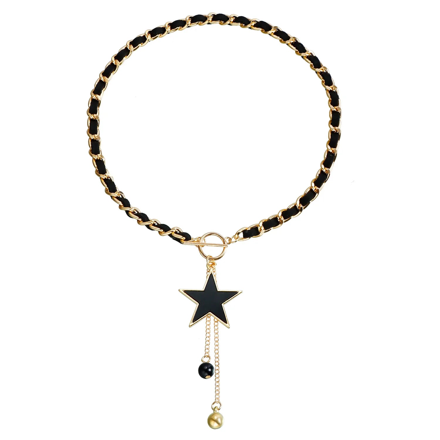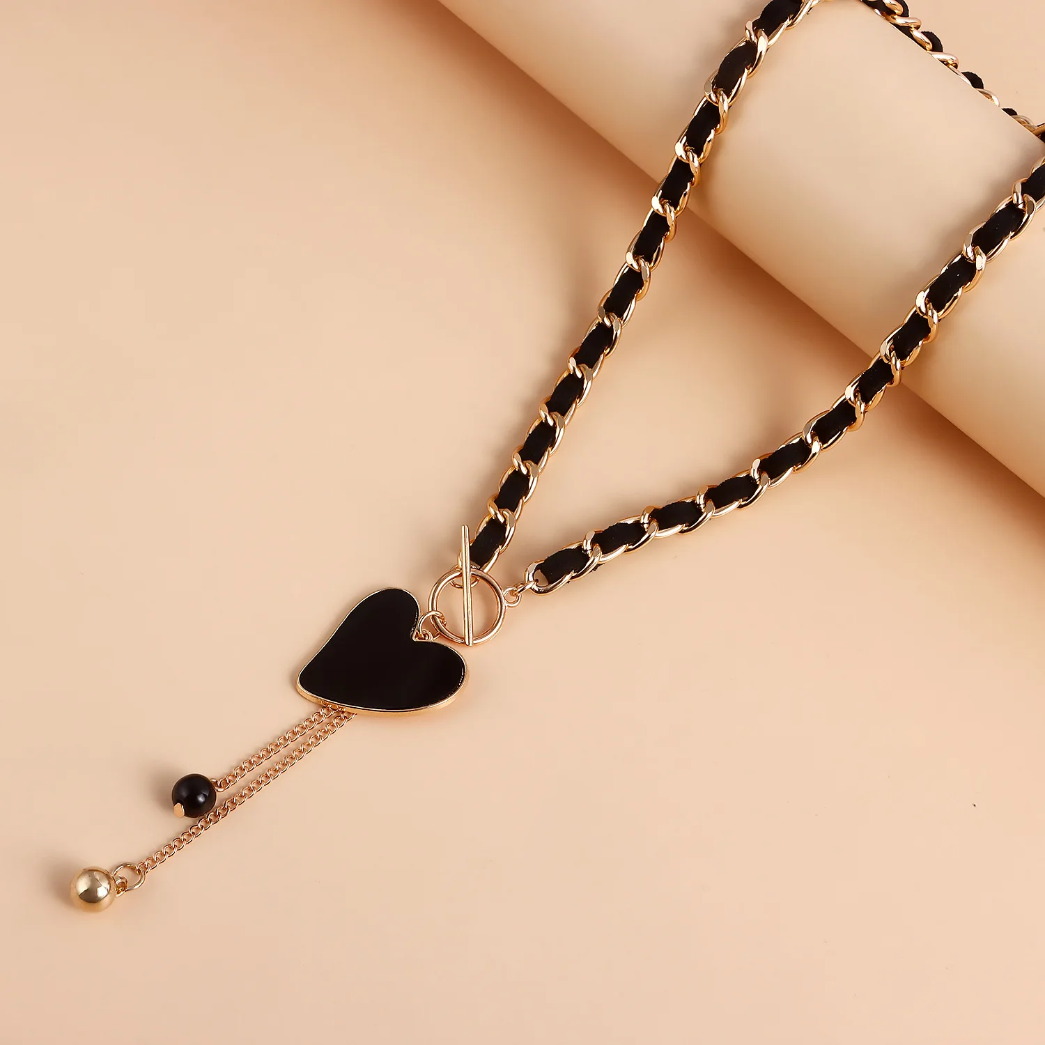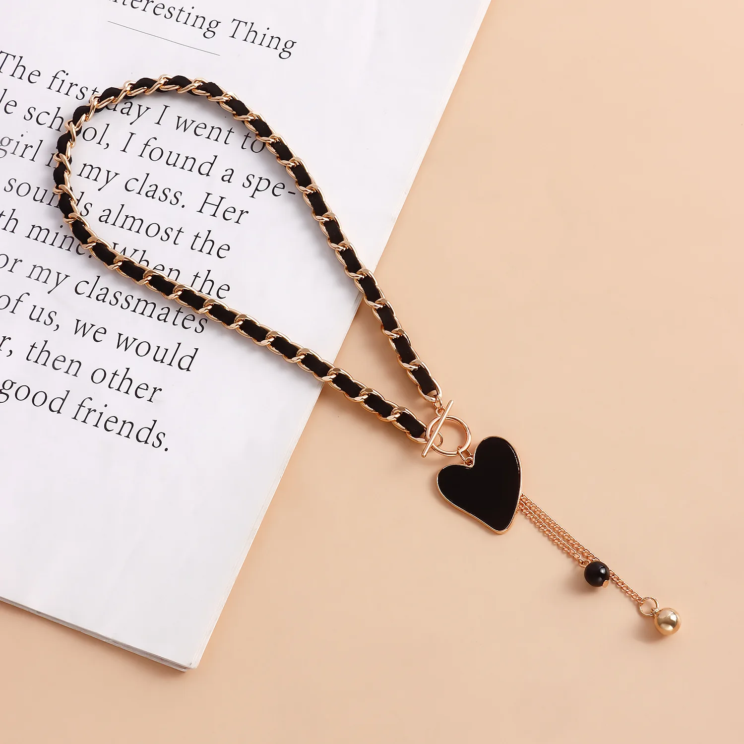 Black Heart Choker Ball Bead Pendant Necklace Black Velvet Wrap Gold Chain Necklace Minimalist Toggle Clasp Necklace for Girls
