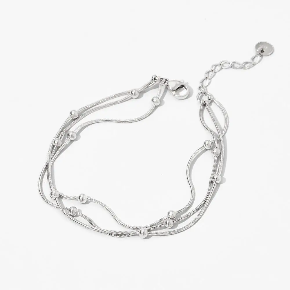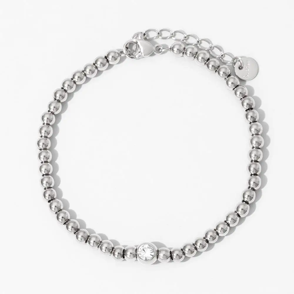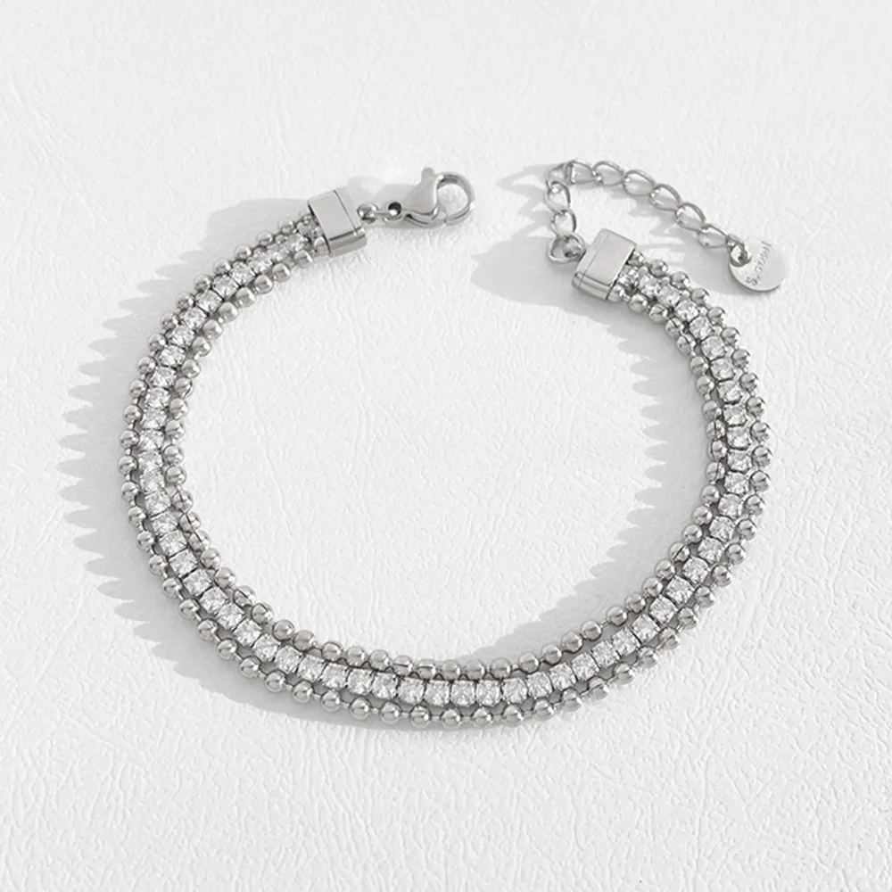 Stylish Stainless Steel Chain Link Bracelet for Women Elegant Stainless Steel Beaded Bracelet with Cubic Zirconia