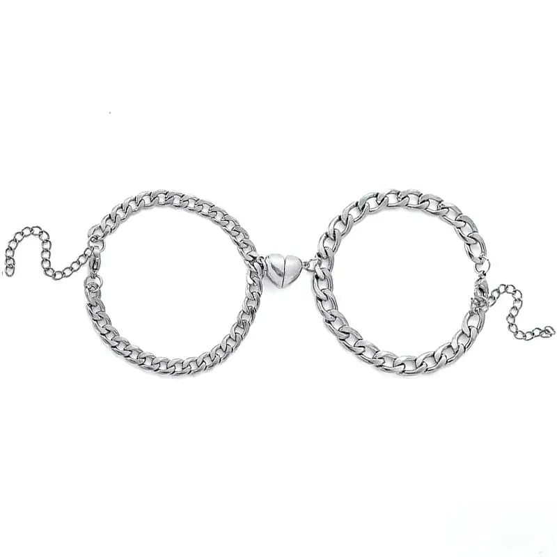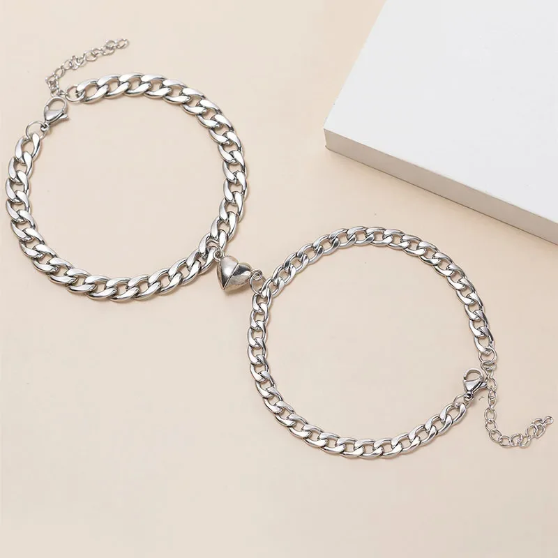 Fashion Adjustable Half Heart Magnetic Bracelets Silver Love Couple Bracelet Set Matching Bracelets for Couples