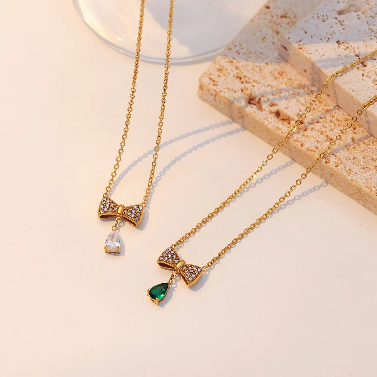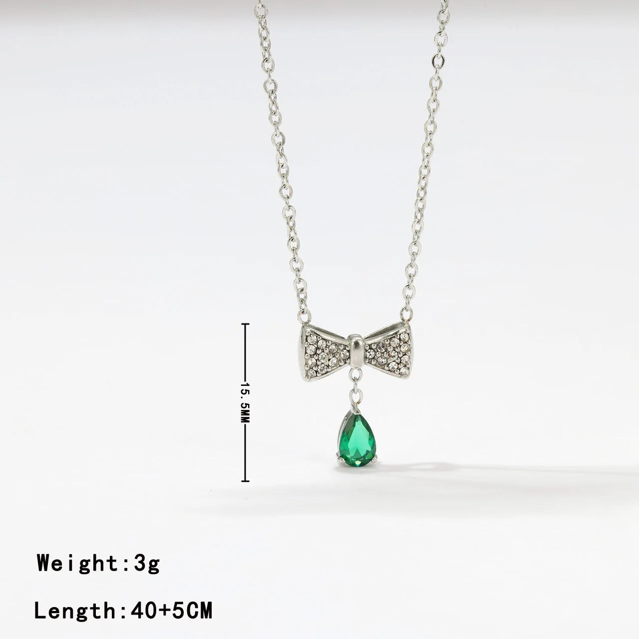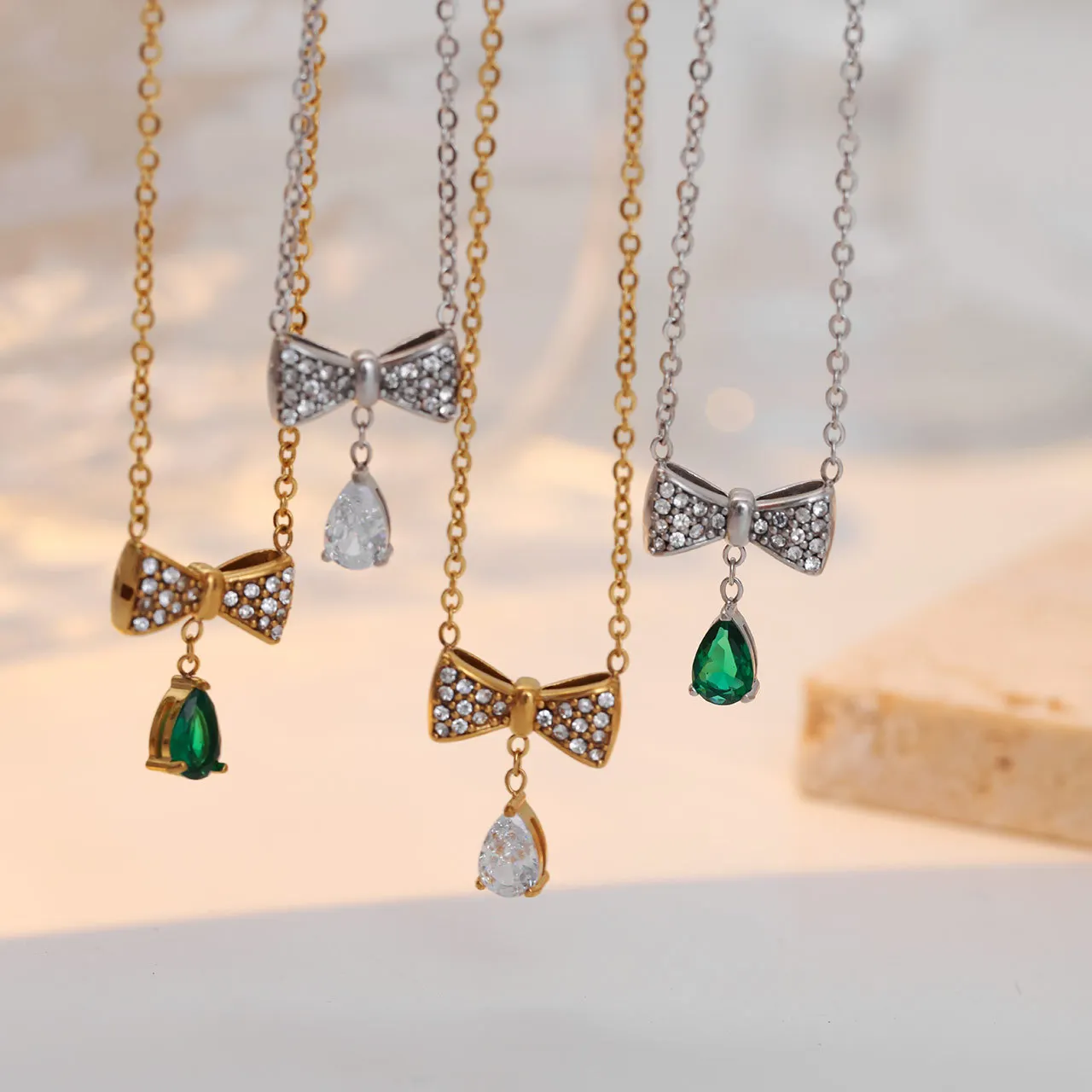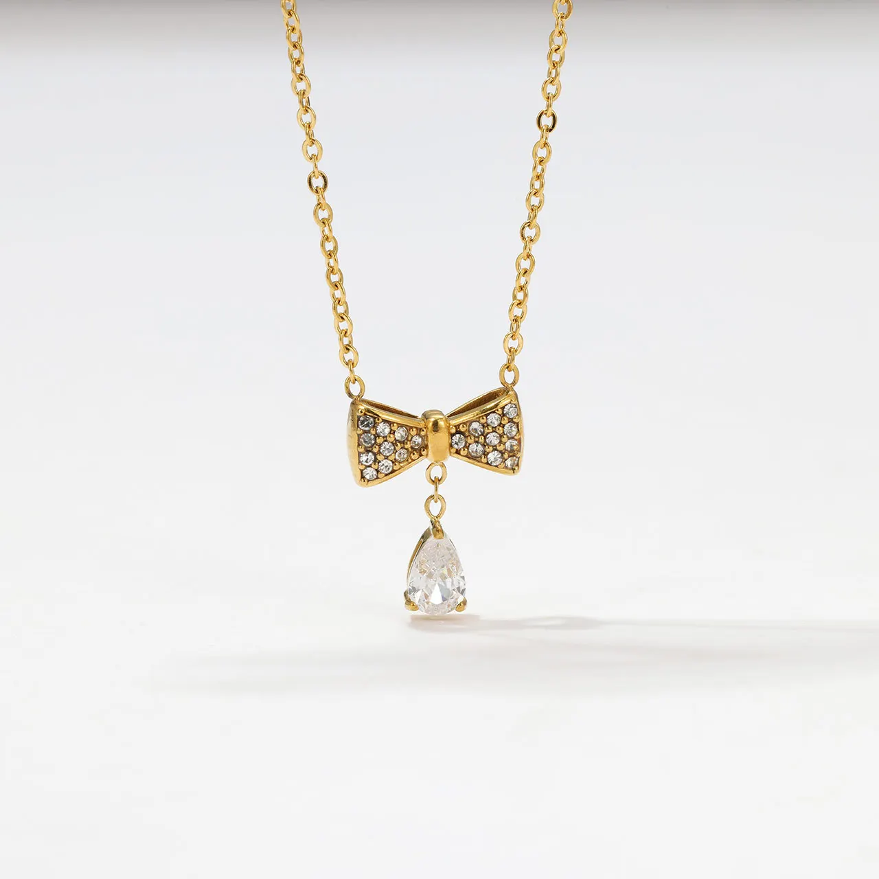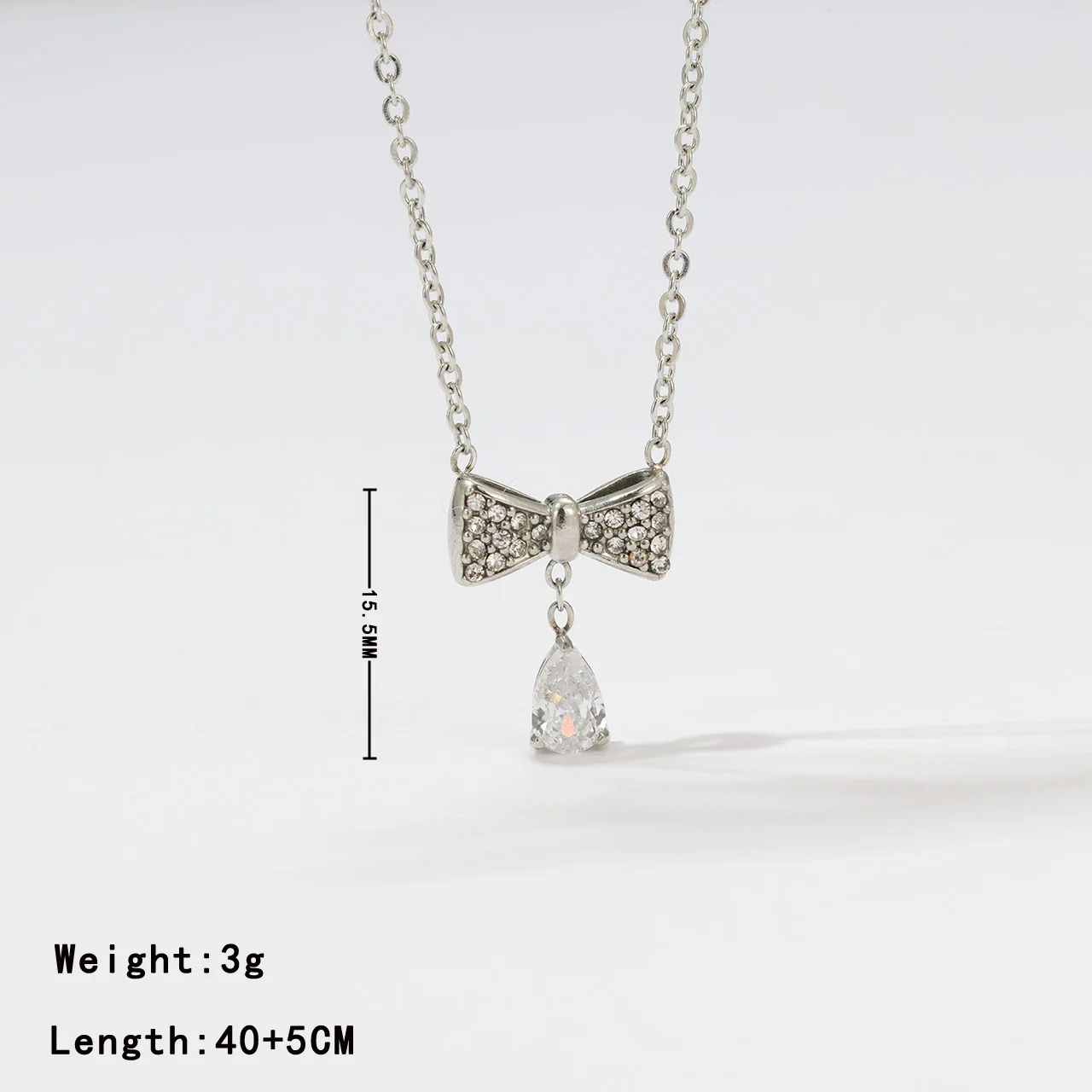 wholesale Fashion gold zircon bow Necklaces stainless steel silver bow tie necklace for women gift