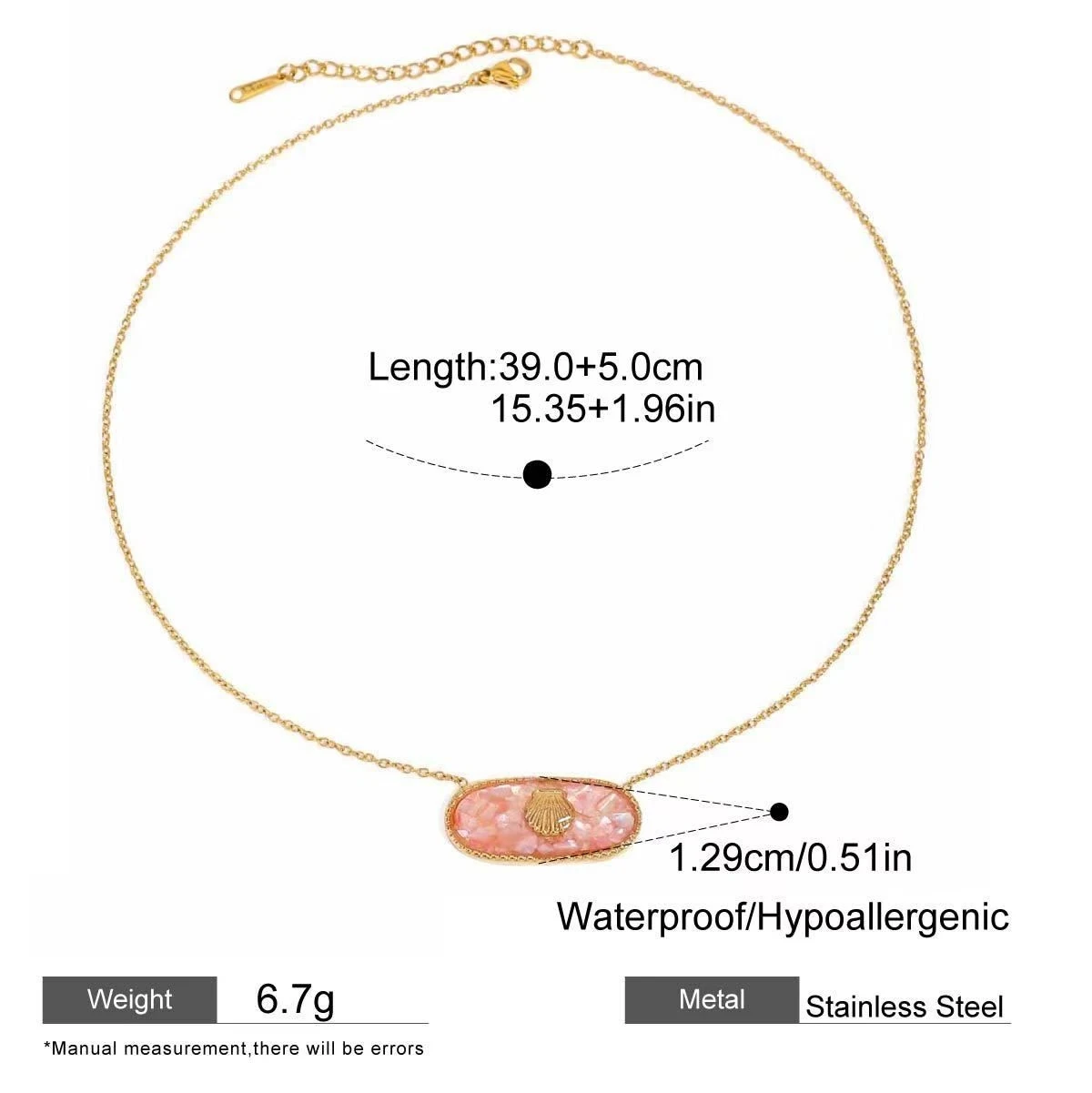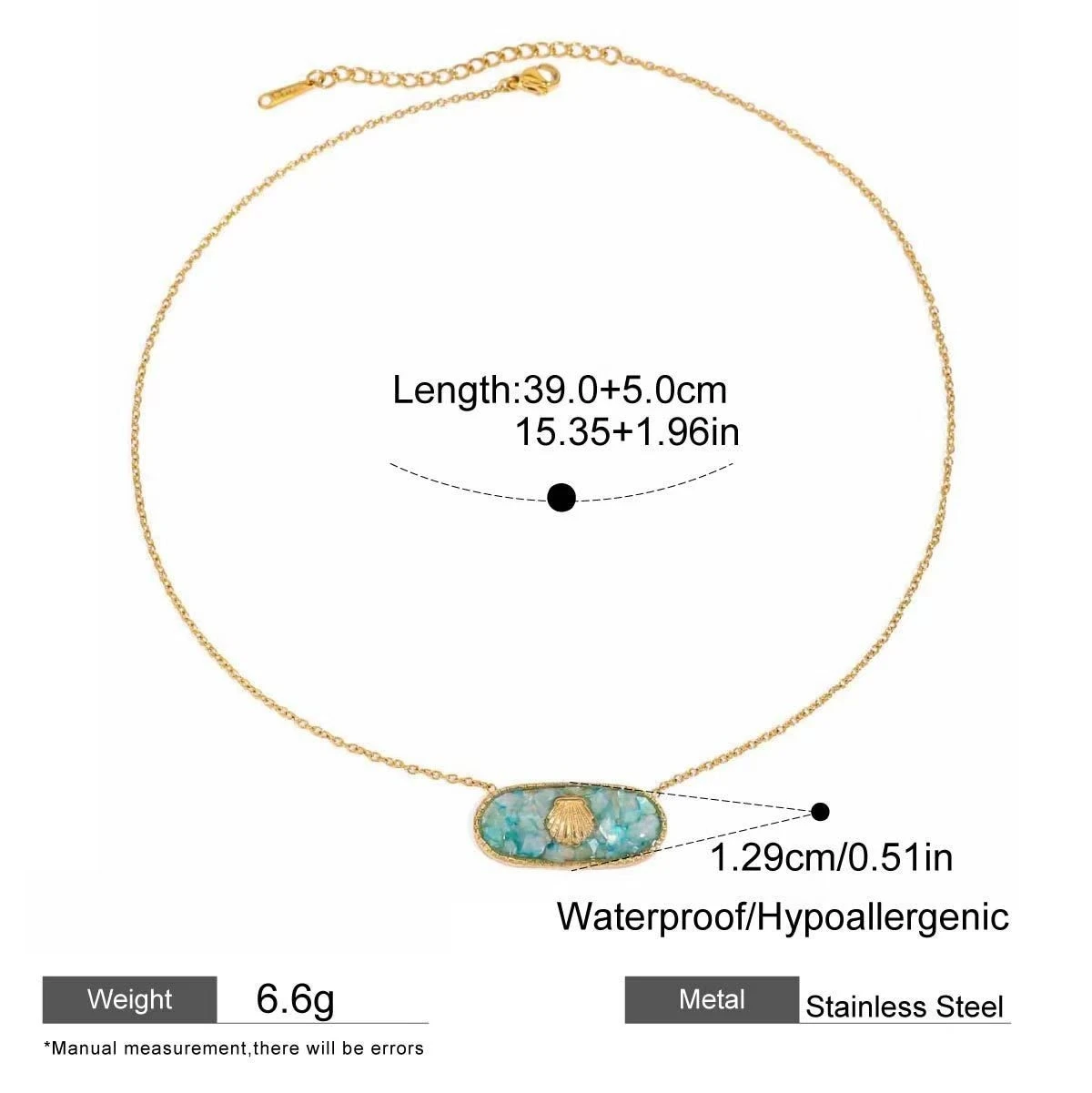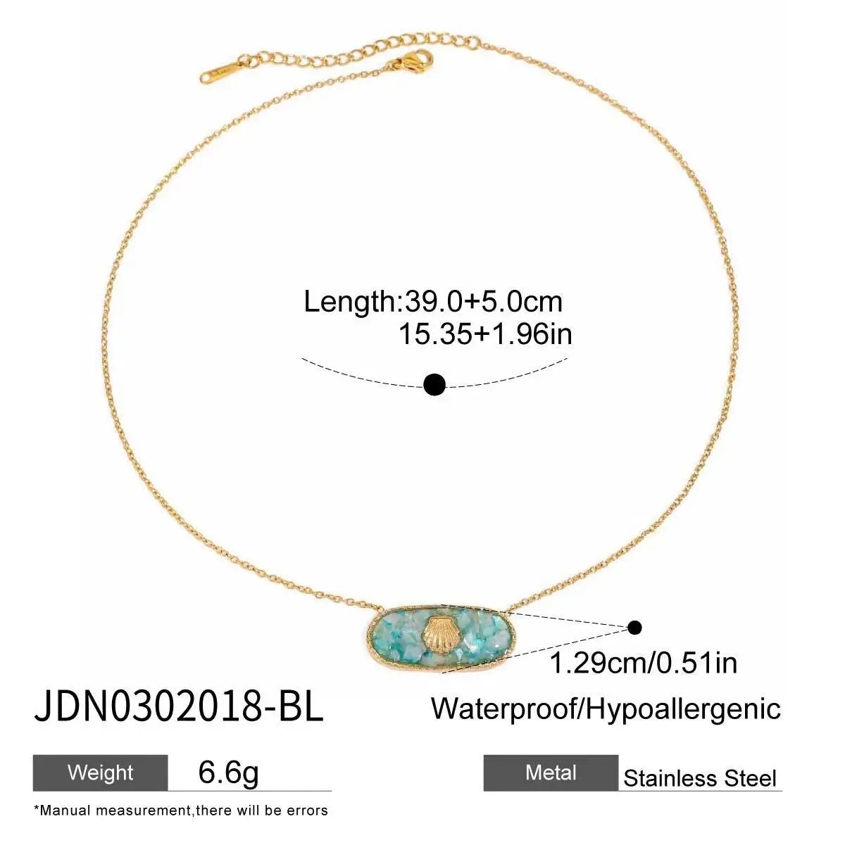 Trendy 18K Gold PVD Colorful Oil Drop Oval Pendant Necklace Boho Beach Women's Jewelry Gift
