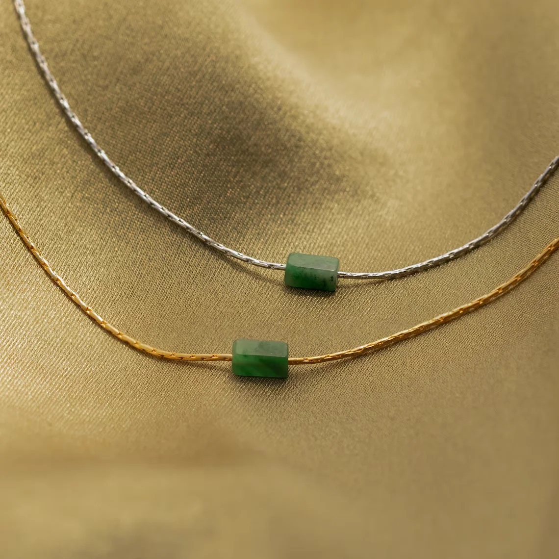 Dainty Womens Jade Necklace 18k Gold Plated Stainless Steel Tiny Jade Necklaces Green Zircon Gemstone Jewelry