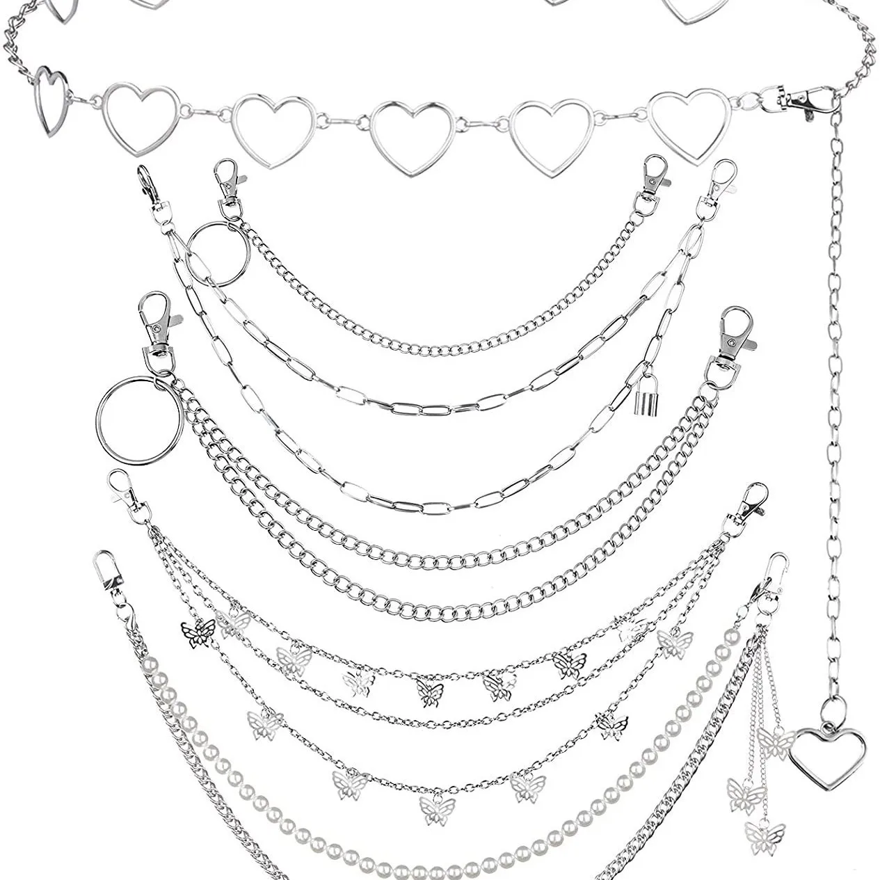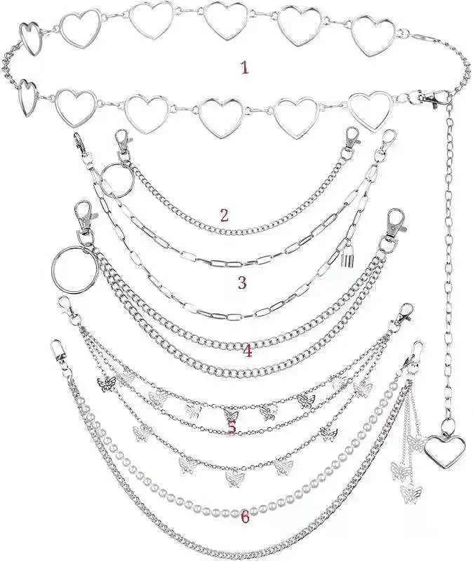 Punk Jeans Chain Set | Multi-Layer Metal Hip Chains with Hollow Star & Butterfly for Rock Hip-Hop Waist Link Chain