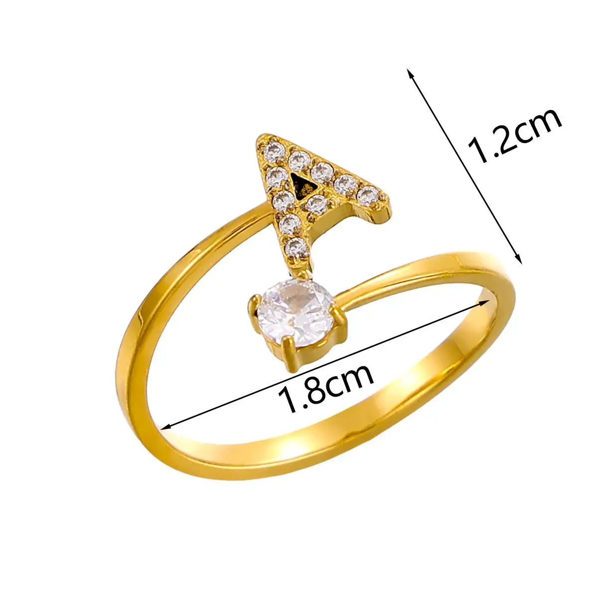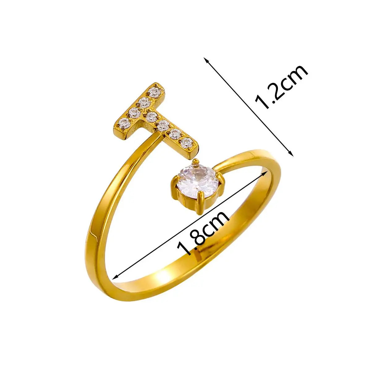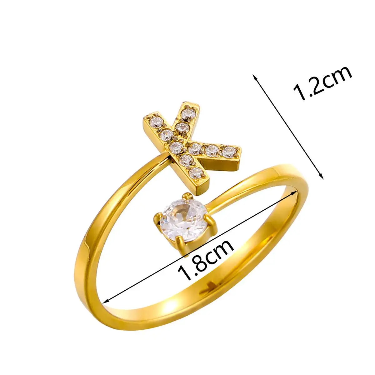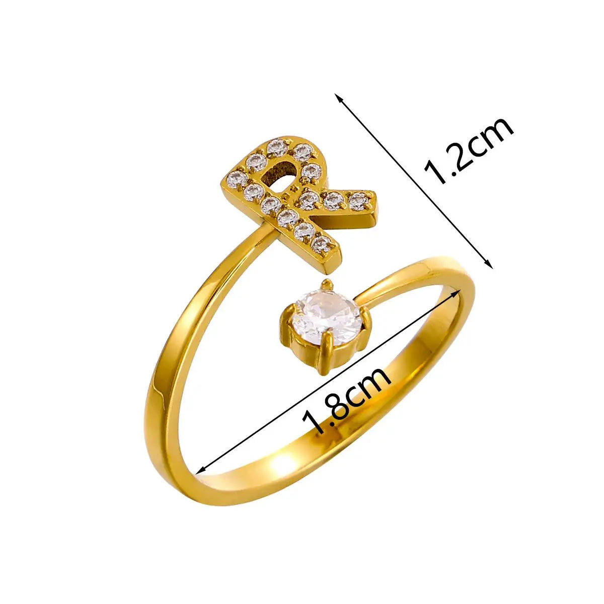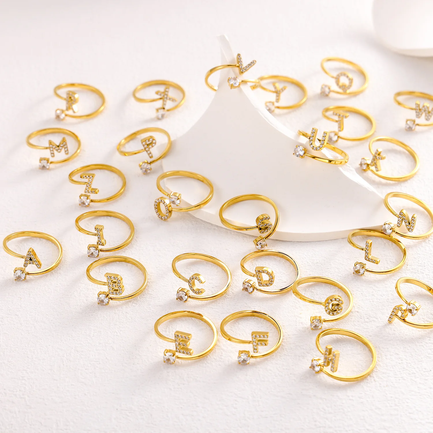 Wholesale 26 Initial Letters Ring Adjustable 18K Gold Zirconia A-Z Alphabet Ring Jewelry Gift for Women