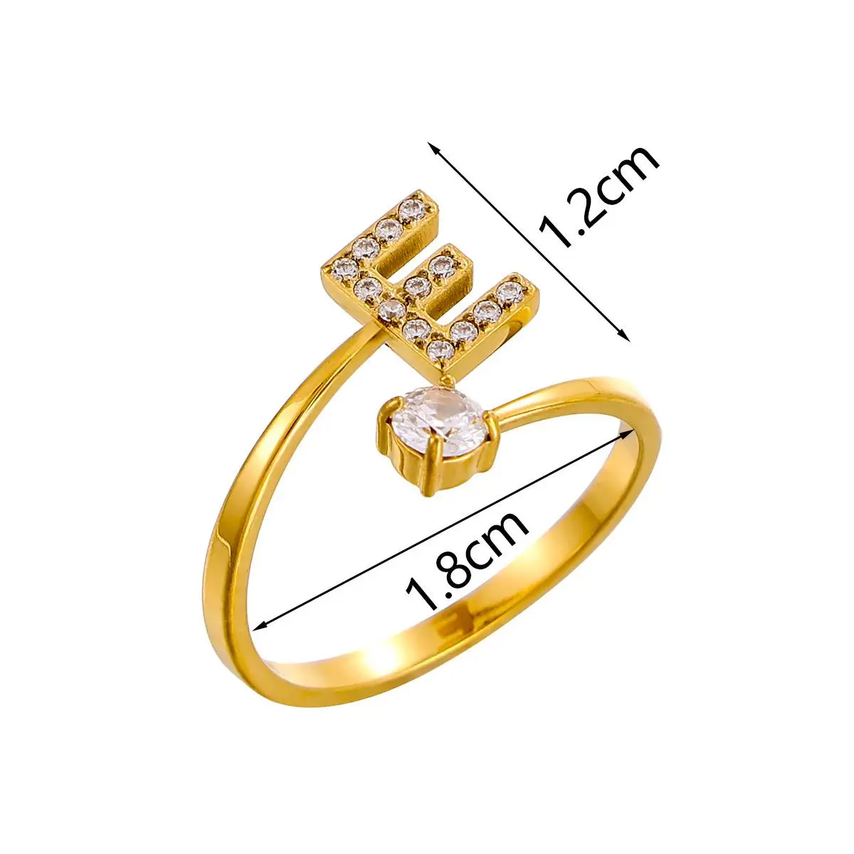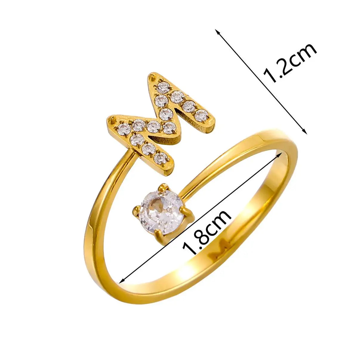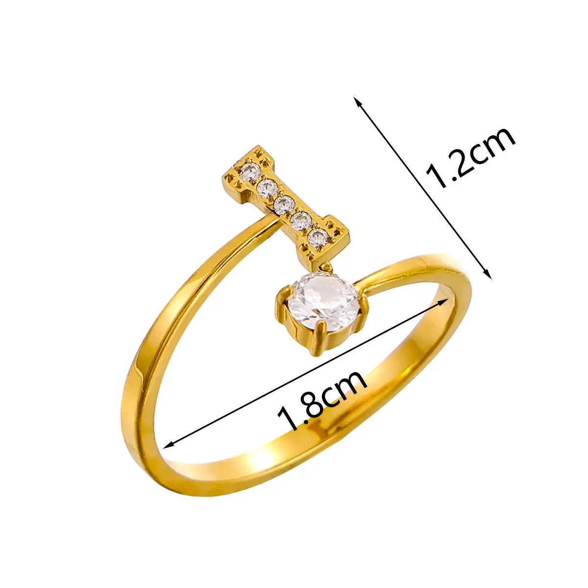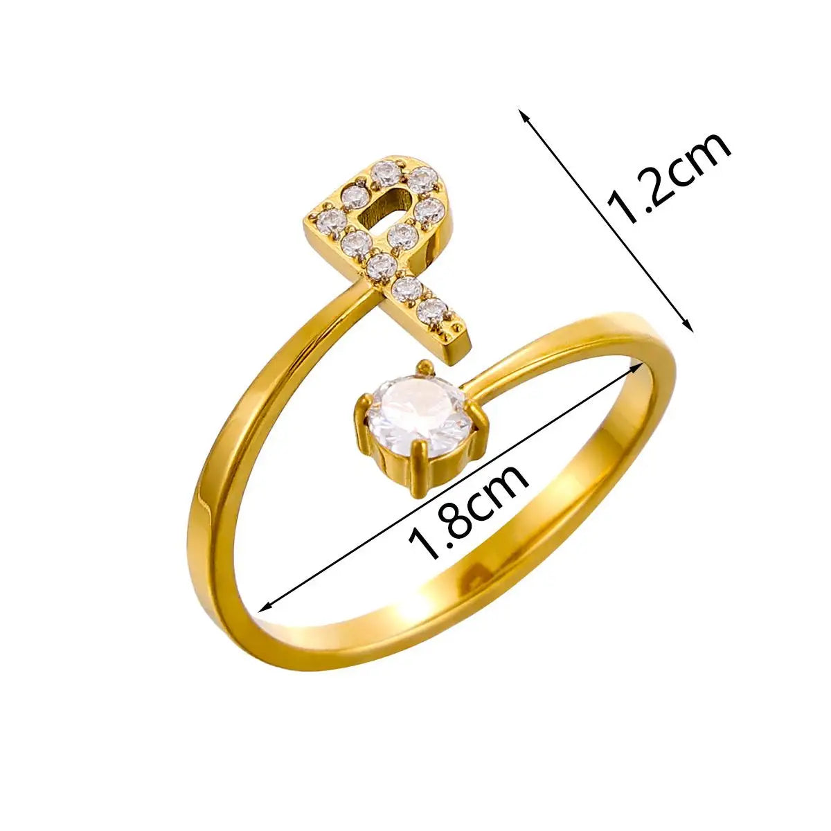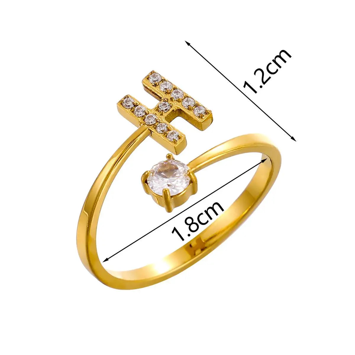 Wholesale 26 Initial Letters Ring Adjustable 18K Gold Zirconia A-Z Alphabet Ring Jewelry Gift for Women