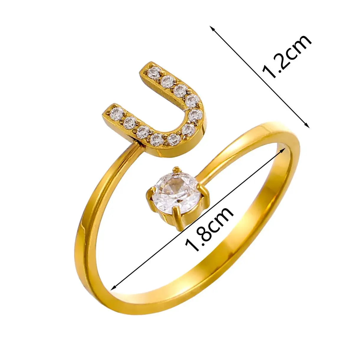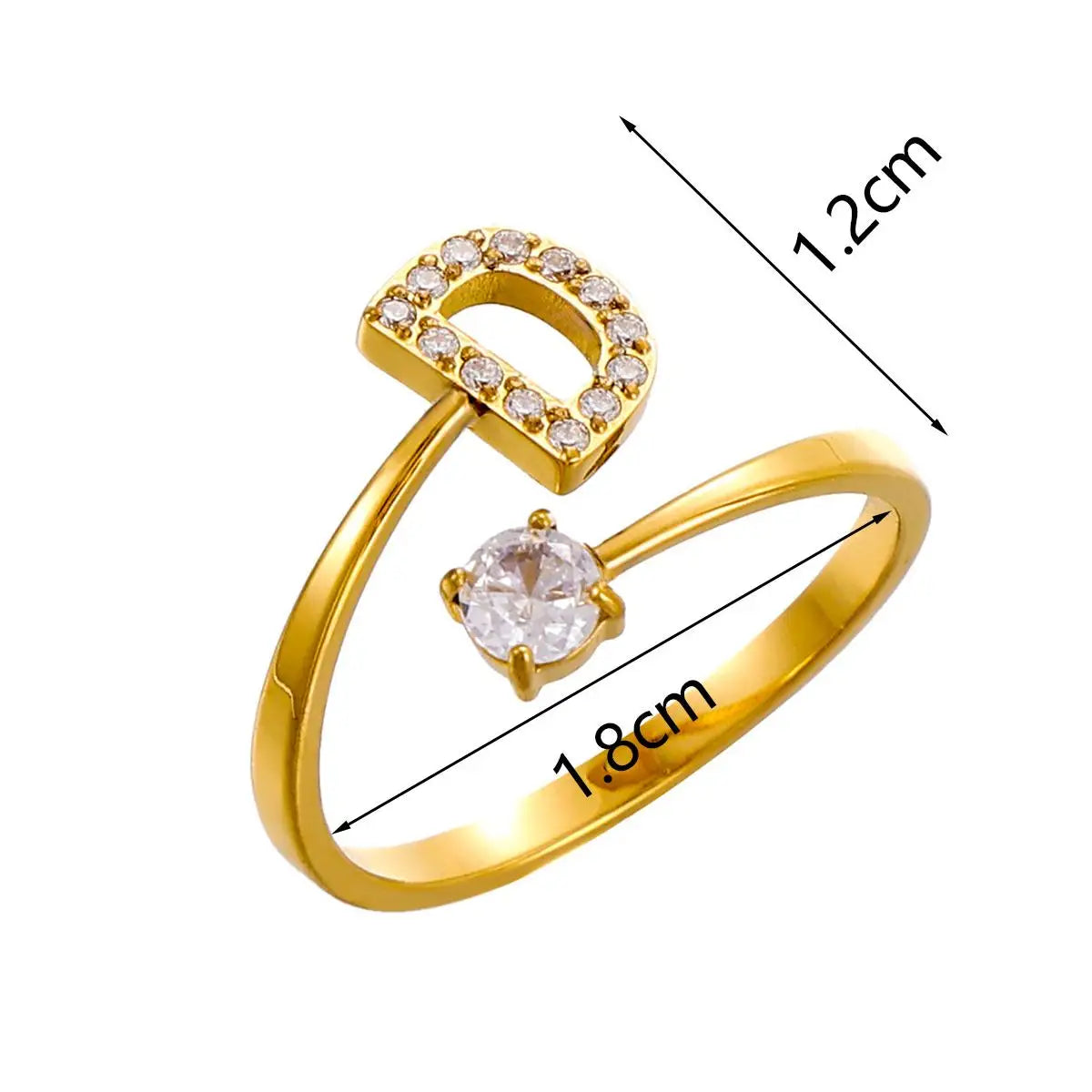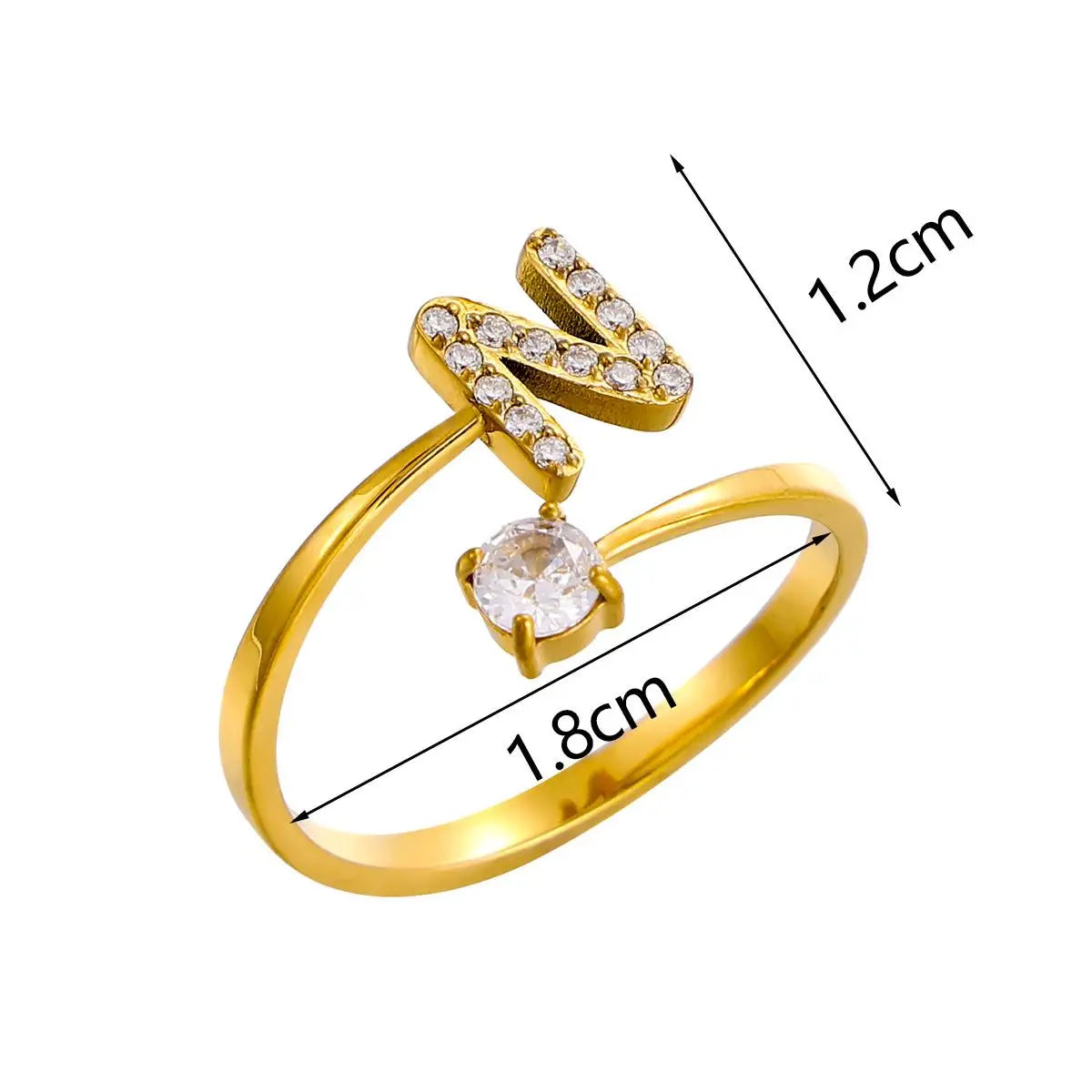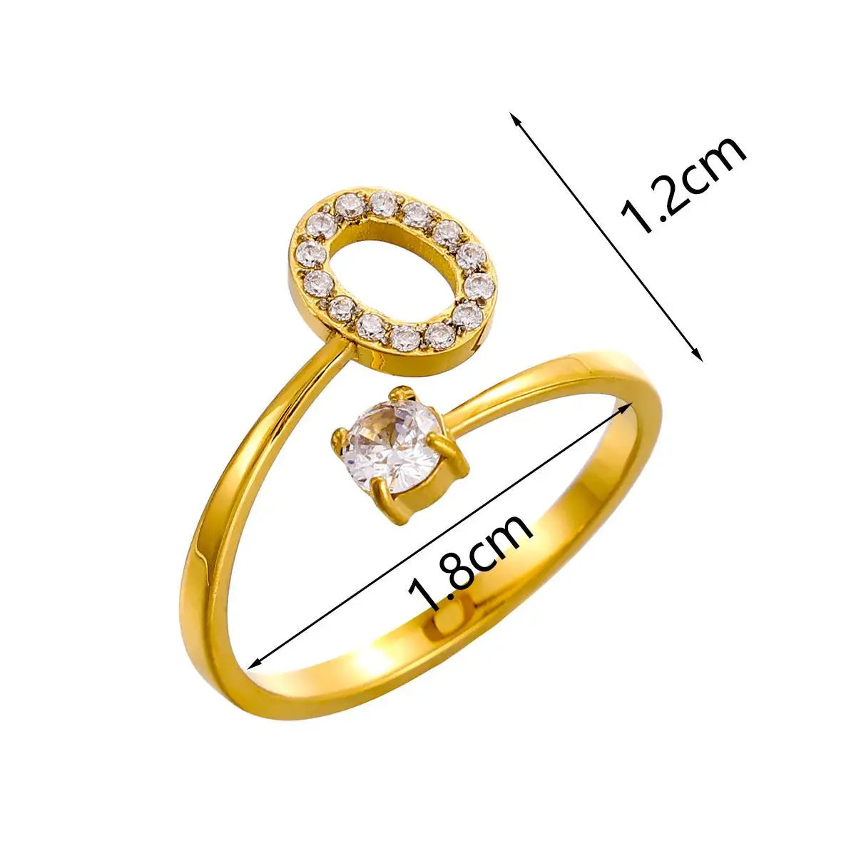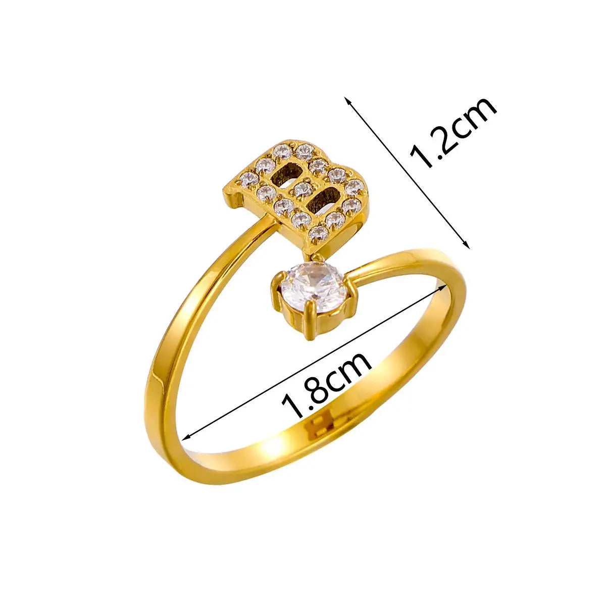 Wholesale 26 Initial Letters Ring Adjustable 18K Gold Zirconia A-Z Alphabet Ring Jewelry Gift for Women