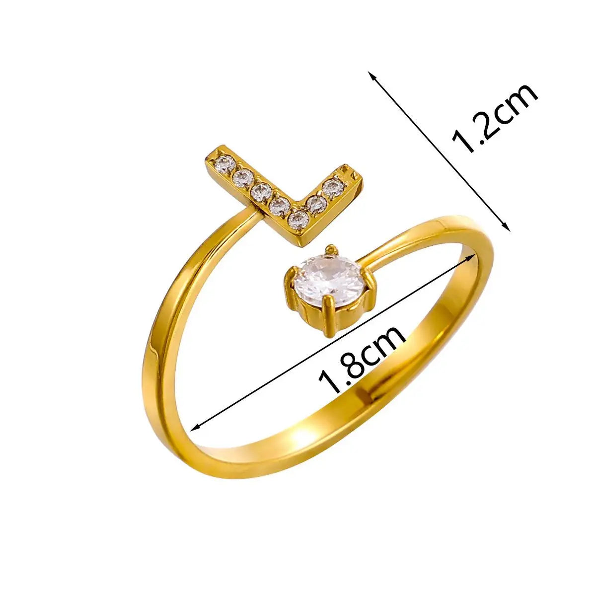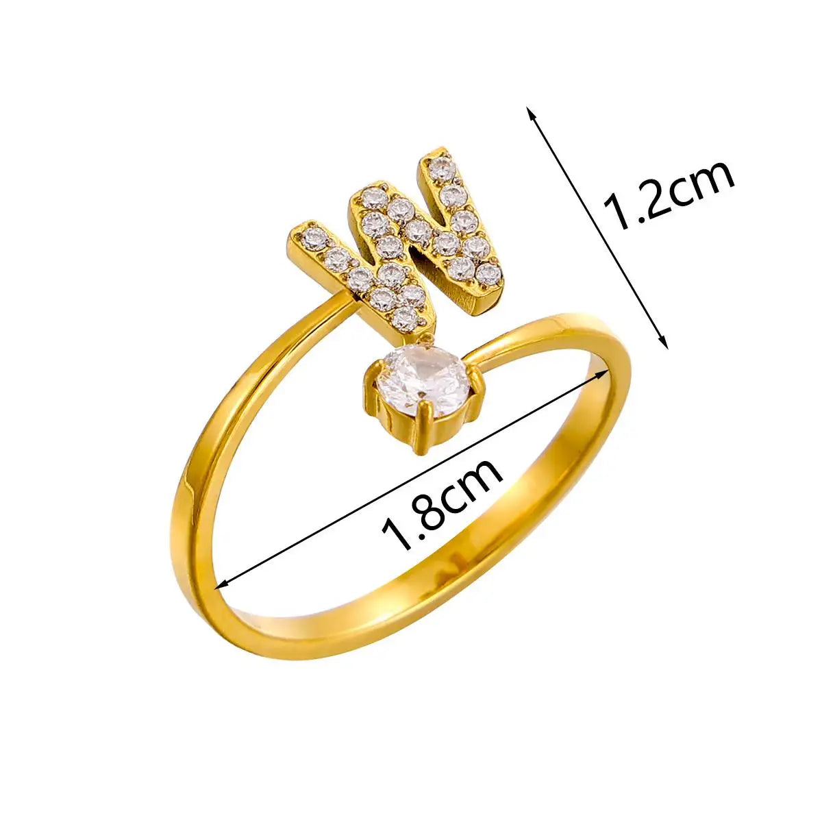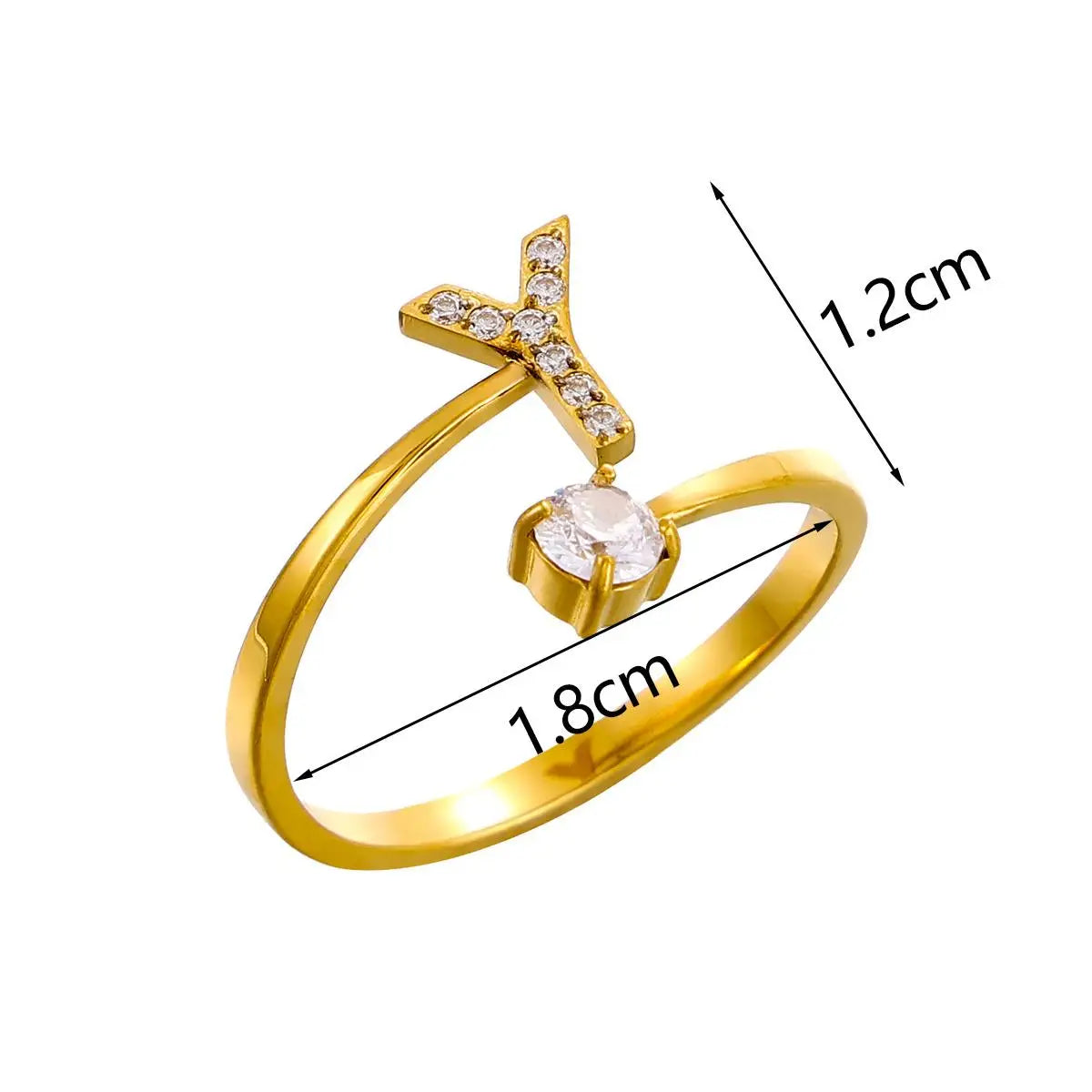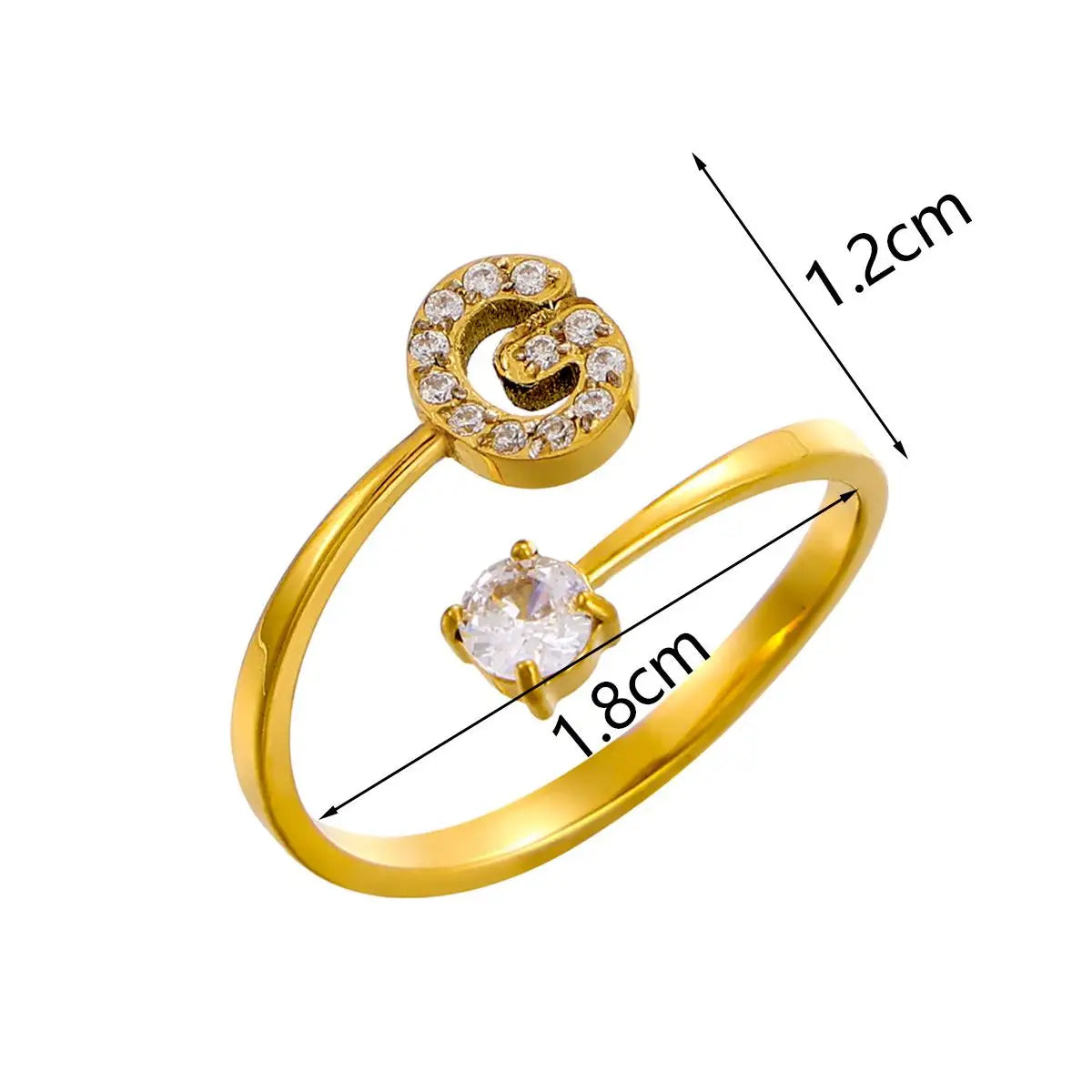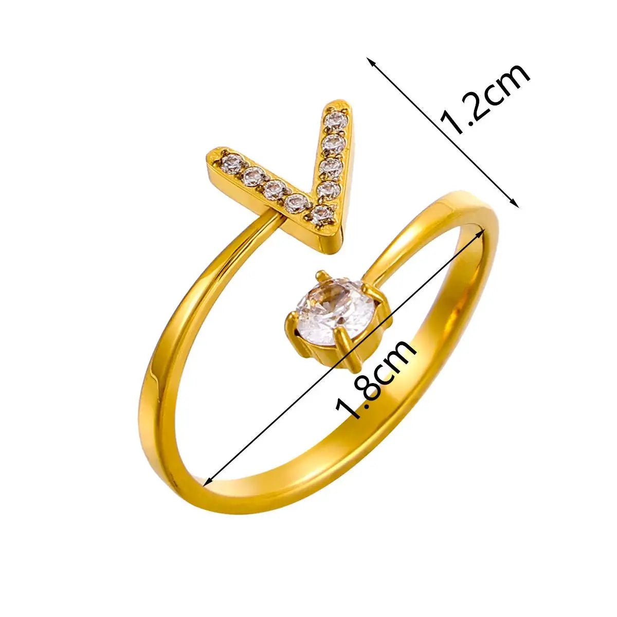 Wholesale 26 Initial Letters Ring Adjustable 18K Gold Zirconia A-Z Alphabet Ring Jewelry Gift for Women