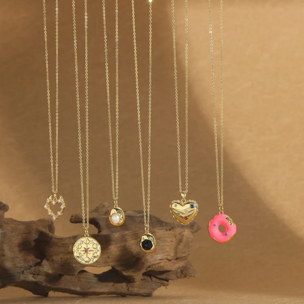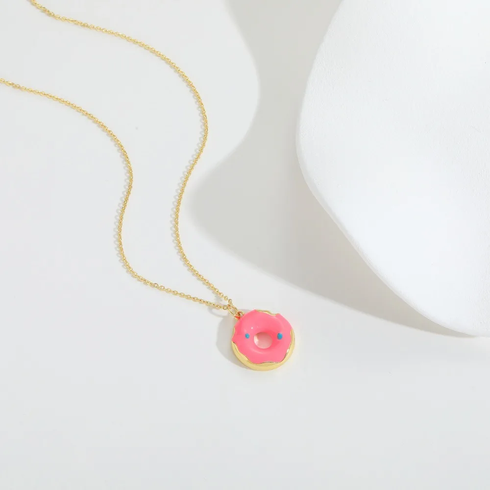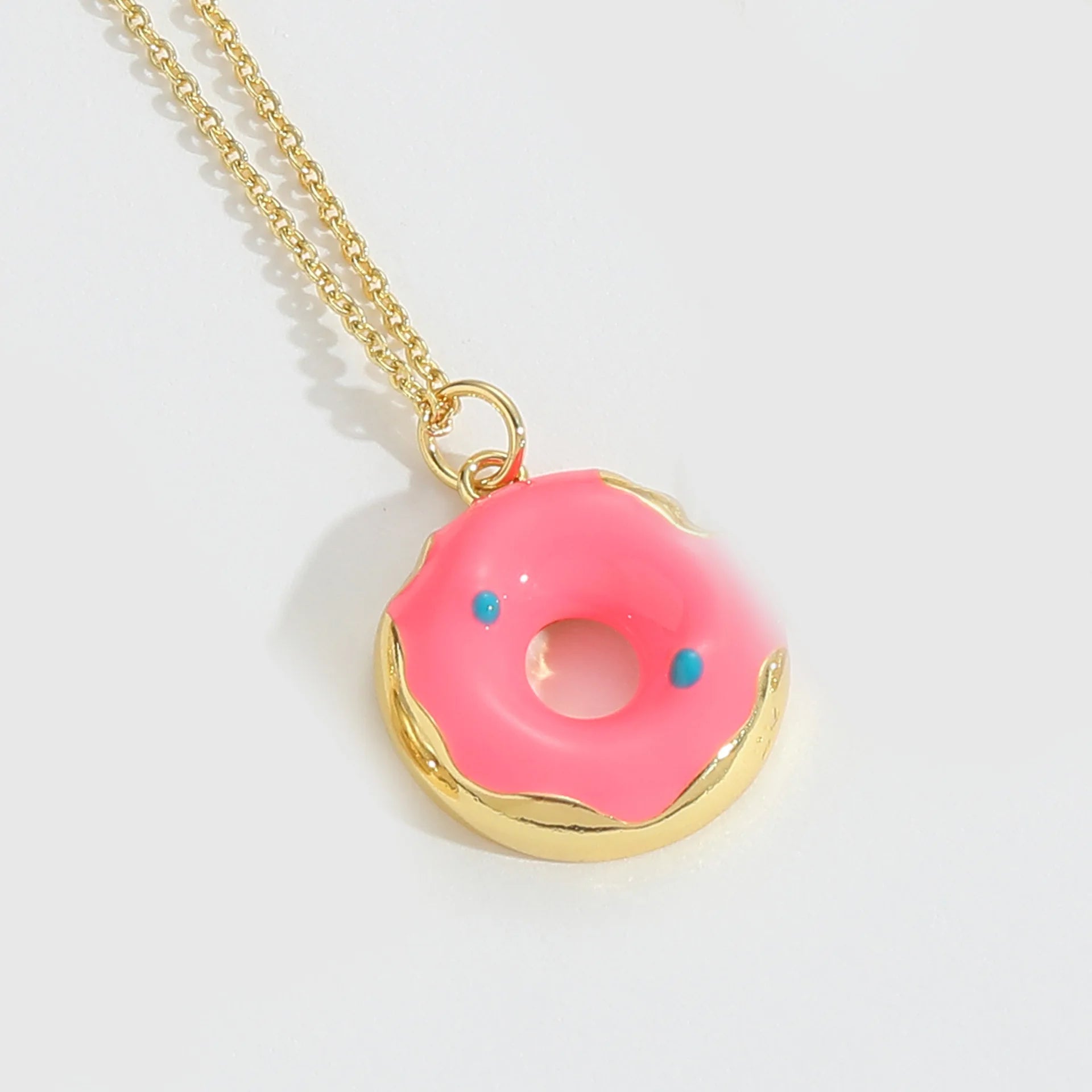 Copper ZIRCON Vintage Boho Jewelry for Women Chocolate Strawberry Enamel Donut Necklace with DIY Bracelet Layered Chain Gift