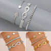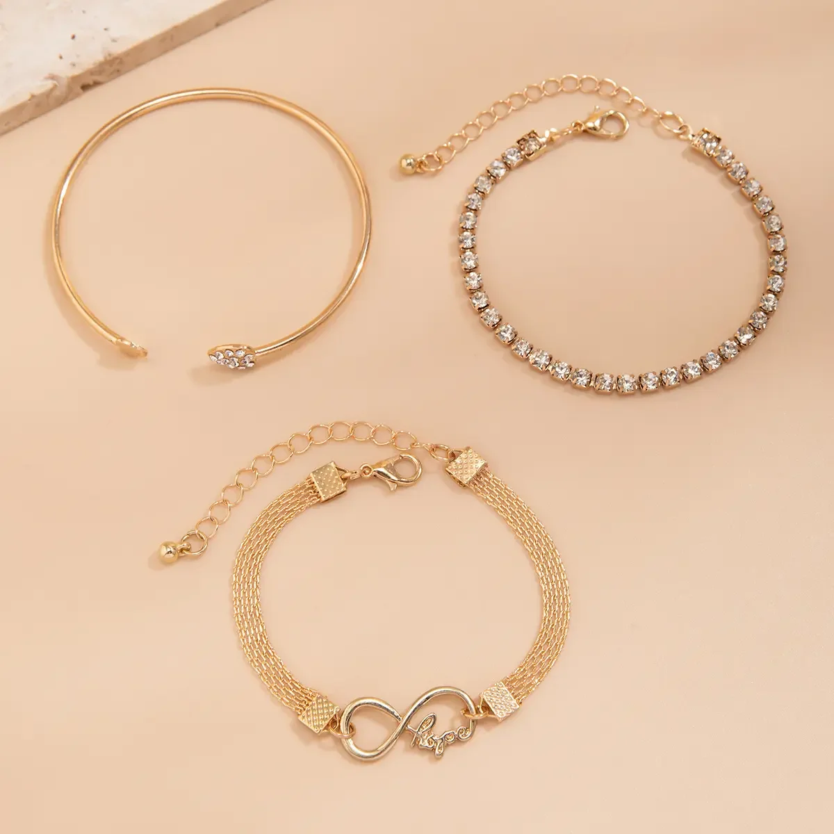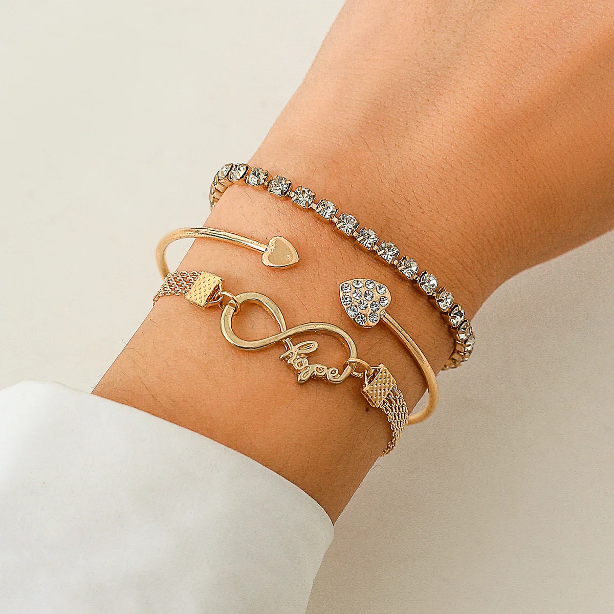 Fashion Stainless Steel Bracelets 3 Pieces/Set 18K Gold Plated Heart Hollowed Bracelet with Diamonds Set Ladies Party