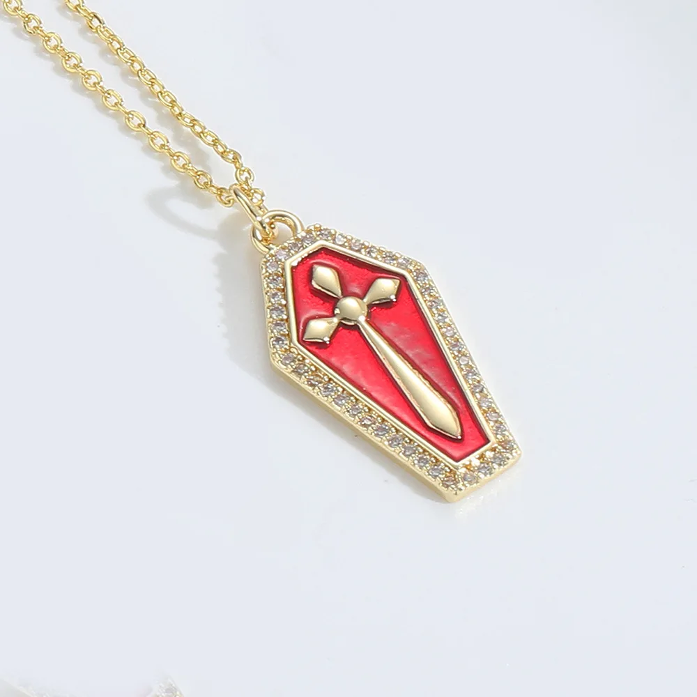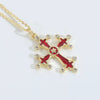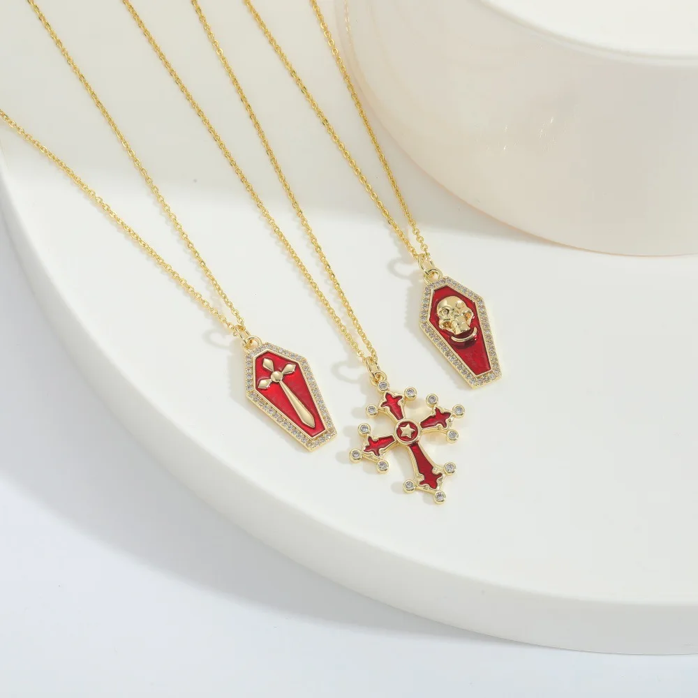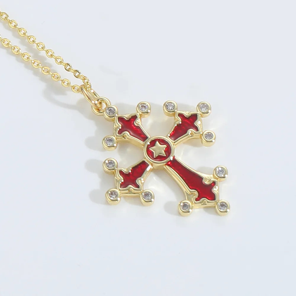 Exclusive Vintage Copper Red Zircon Cross Pendant Necklace with Delicate Link Chain for Women's Fashion and Special Occasions