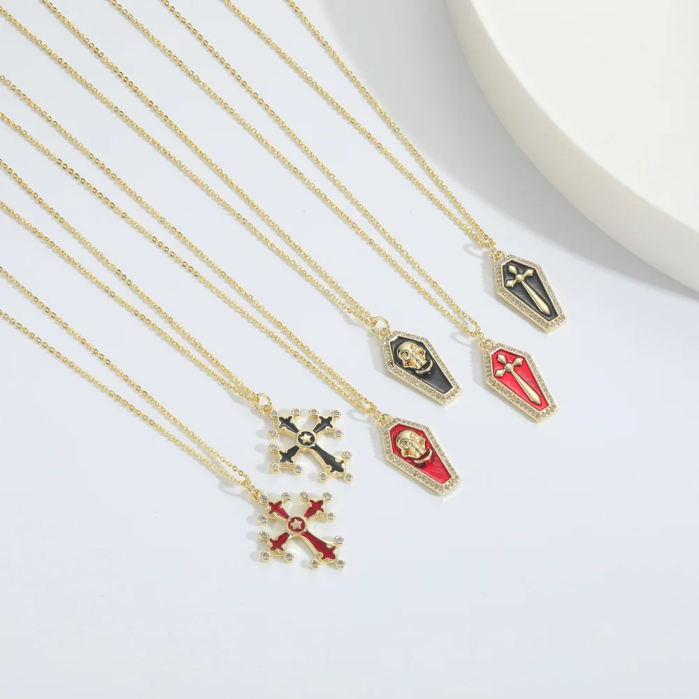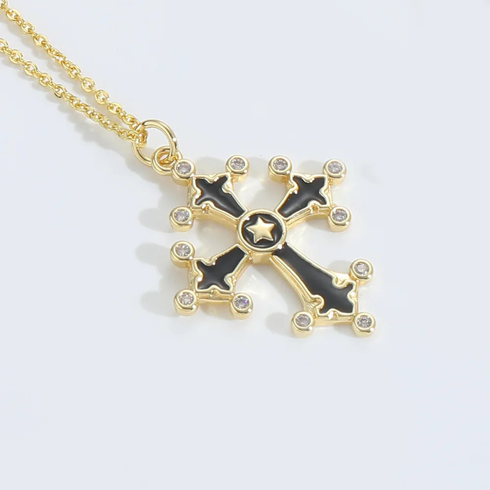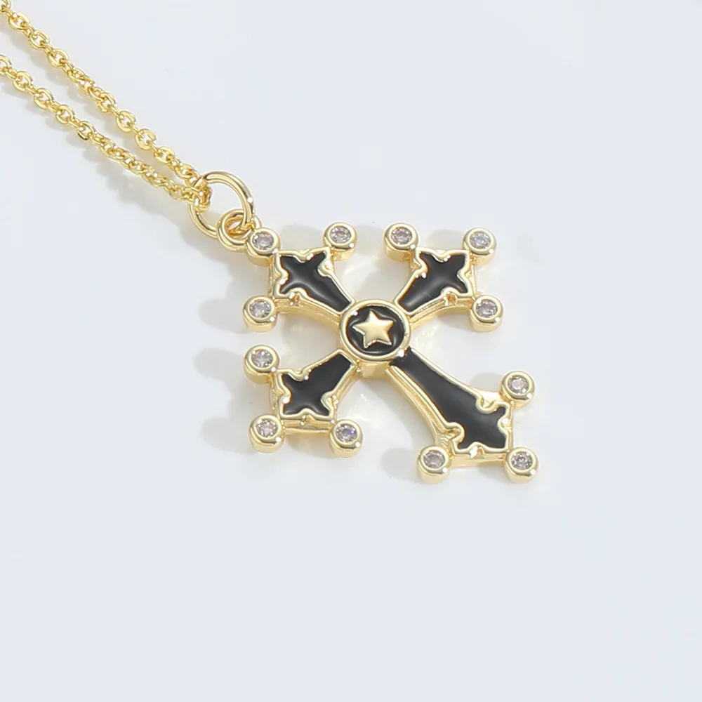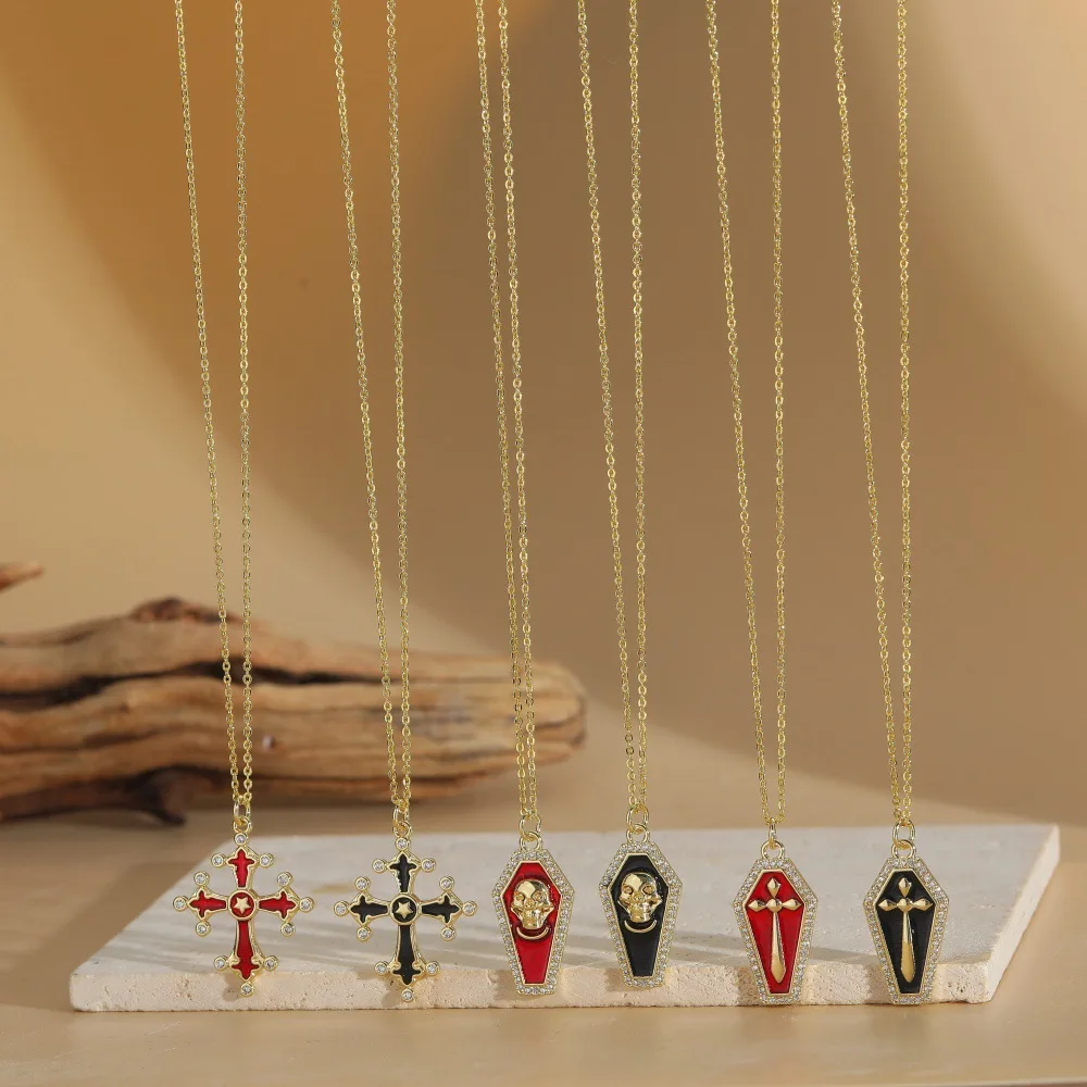 Exclusive Vintage Copper Red Zircon Cross Pendant Necklace with Delicate Link Chain for Women's Fashion and Special Occasions