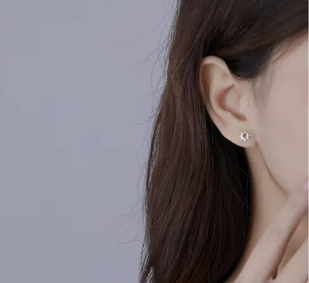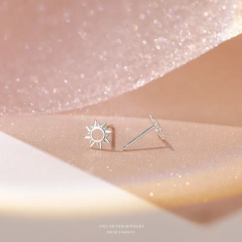 Hot Selling 925 Sterling Silver Gold Plated Mini Sun Shape Stud Earrings for Women Fashion Jewelry for Her Party Gifts