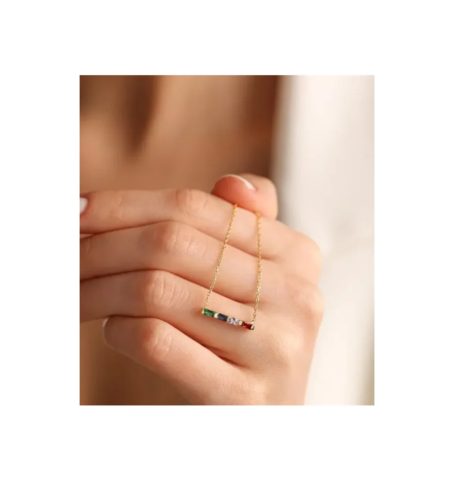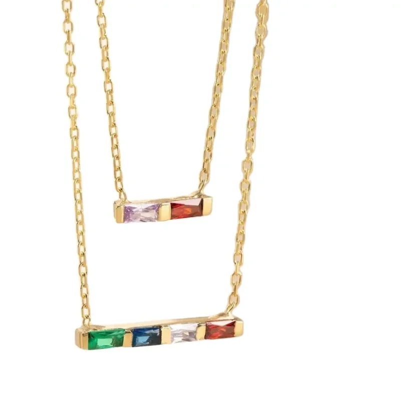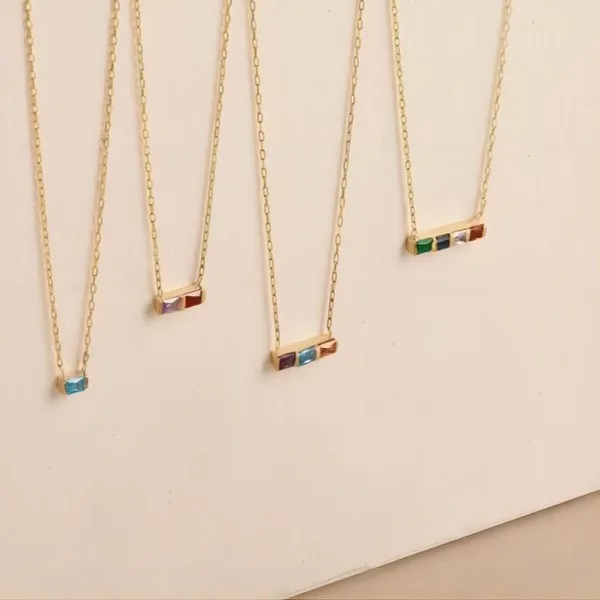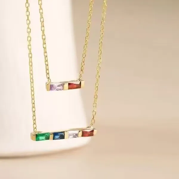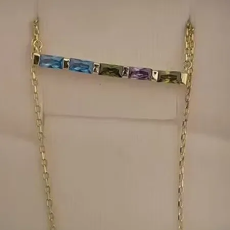 Fashionable Multicolor Zircon Bar Necklace 18K Gold Plated Stylish Accessory Jewelry for Party Wear