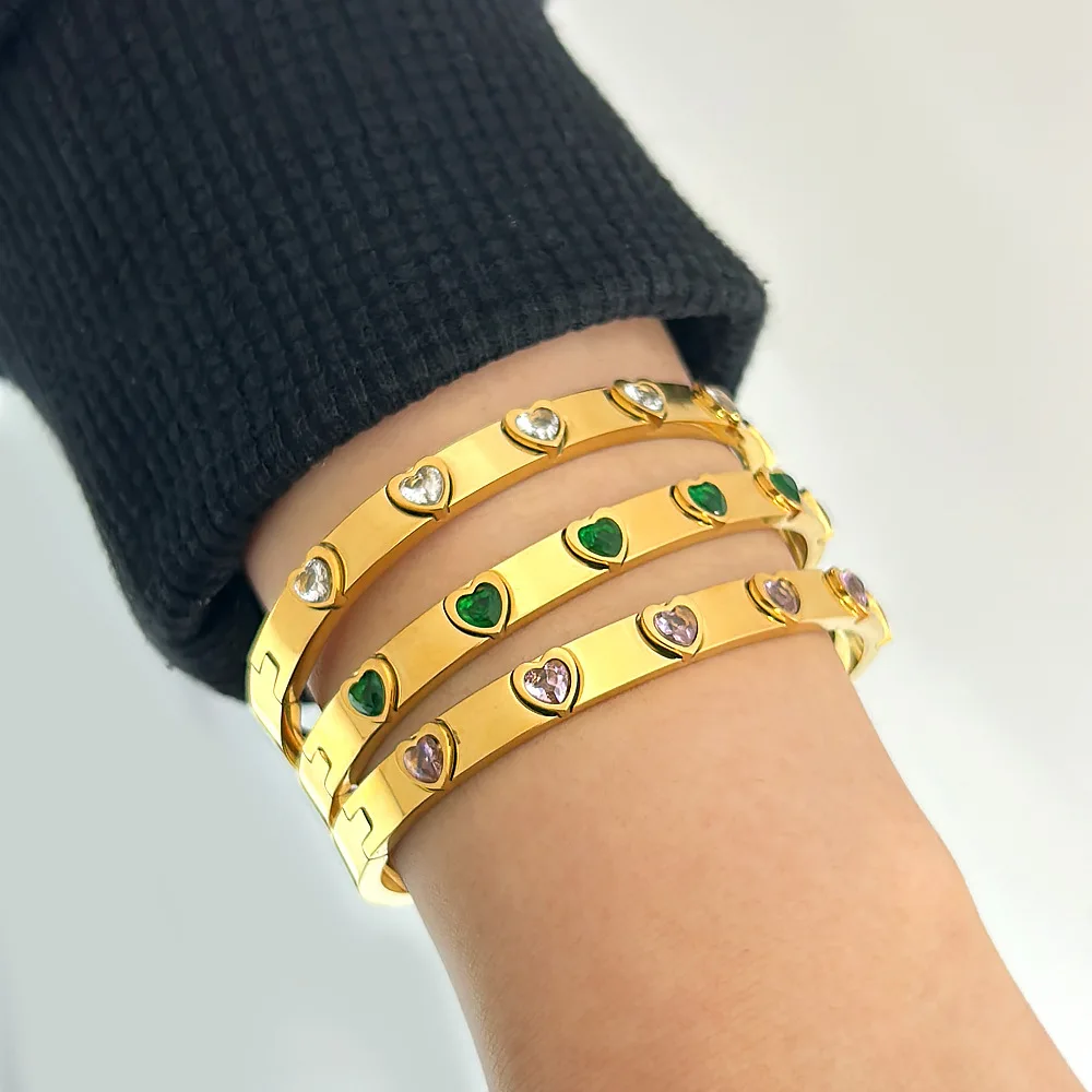 Stainless Steel Heart Zirconia Bracelet for Women Hypoallergenic Jewelry Gift Dainty Everyday Wear Bangle Cuff Chain