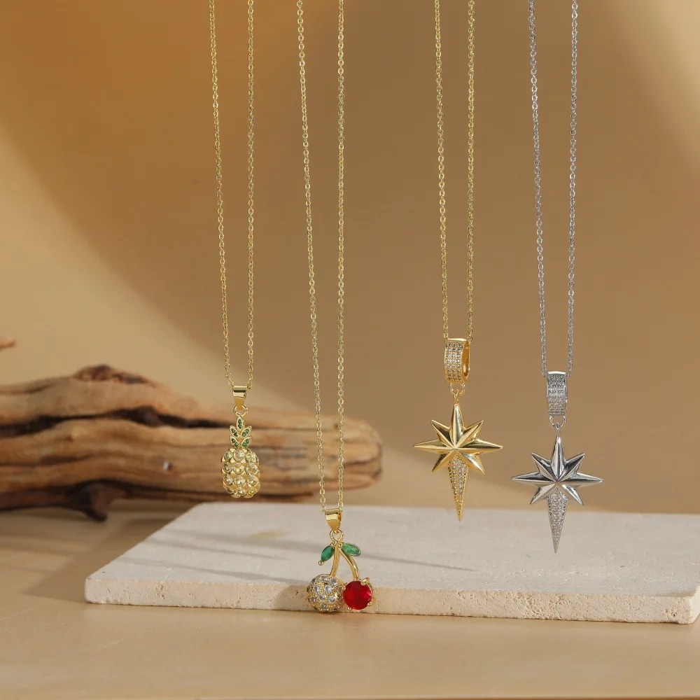 Vintagelook Elegant Starlight Copper Necklace for Women Unique Star Shaped Zircon Pendant Beaded Bracelet Perfect Gift Idea