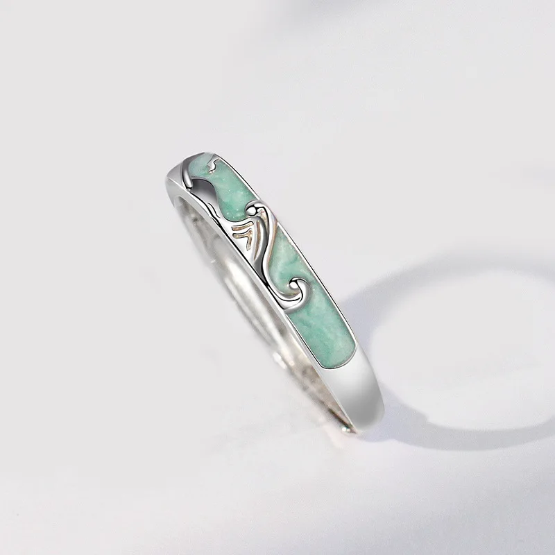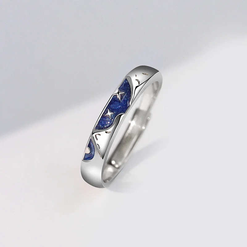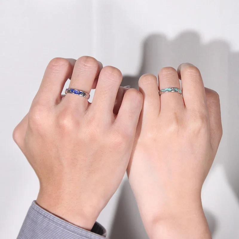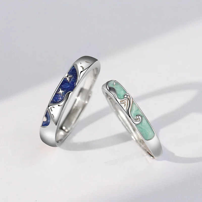 Adjustable 925 Silver Mountain Ocean Couple Ring Set Handcrafted Nature Inspired Rings for Valentine's Gift