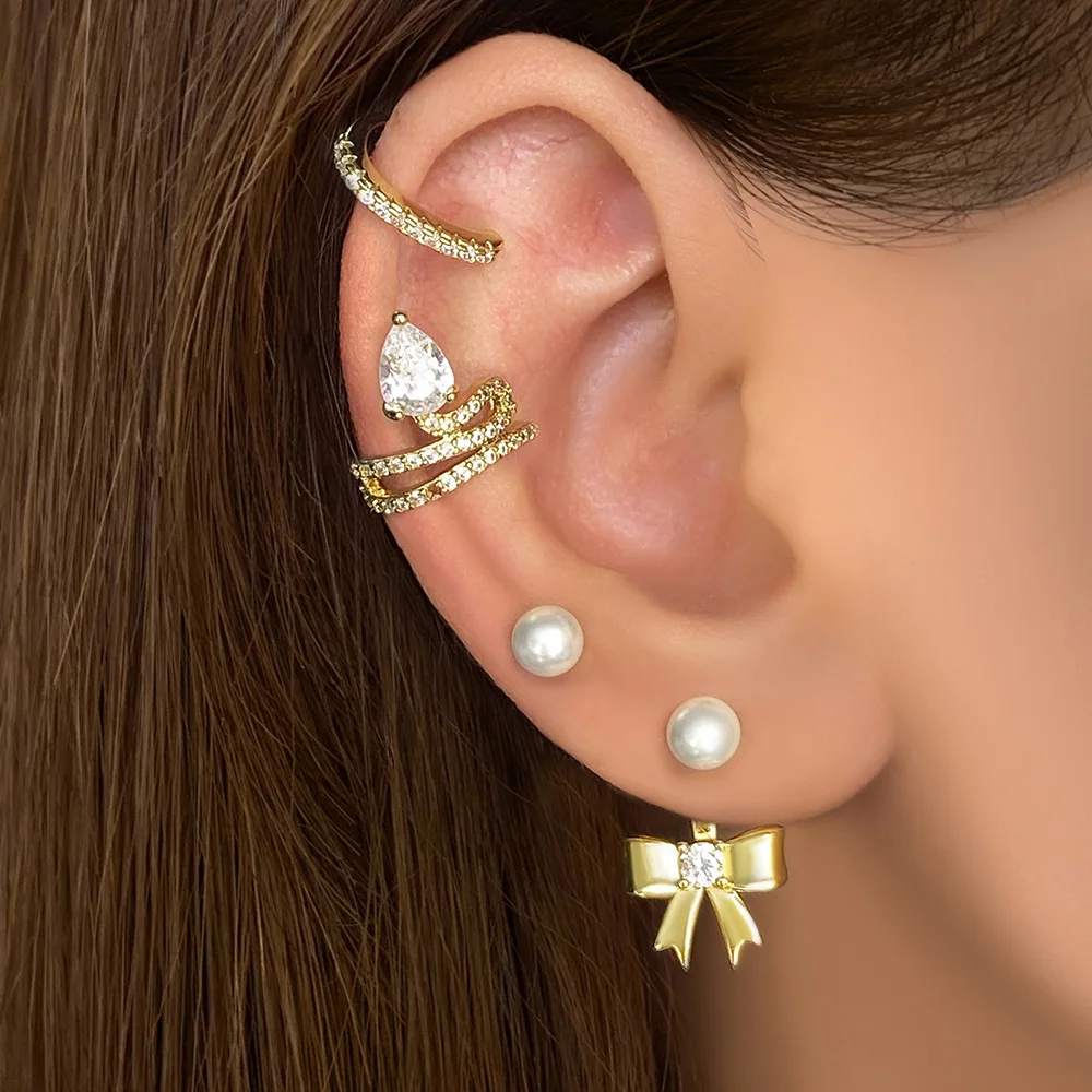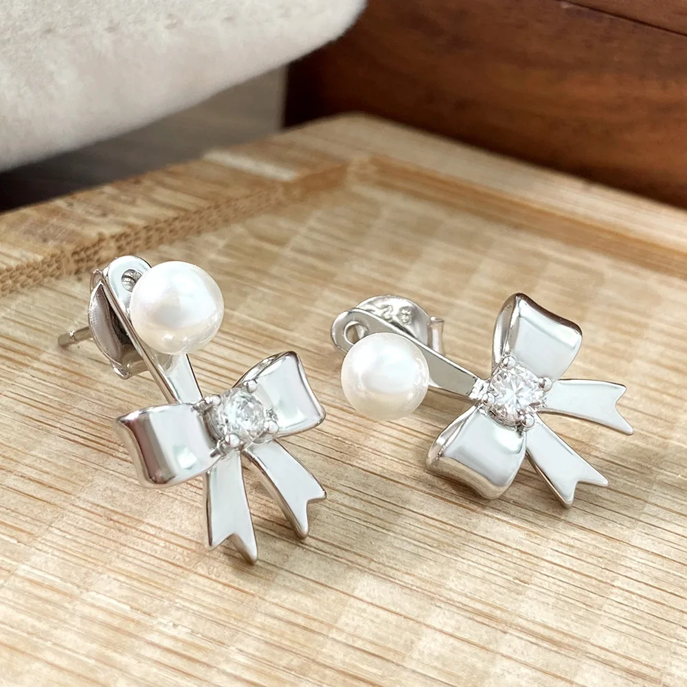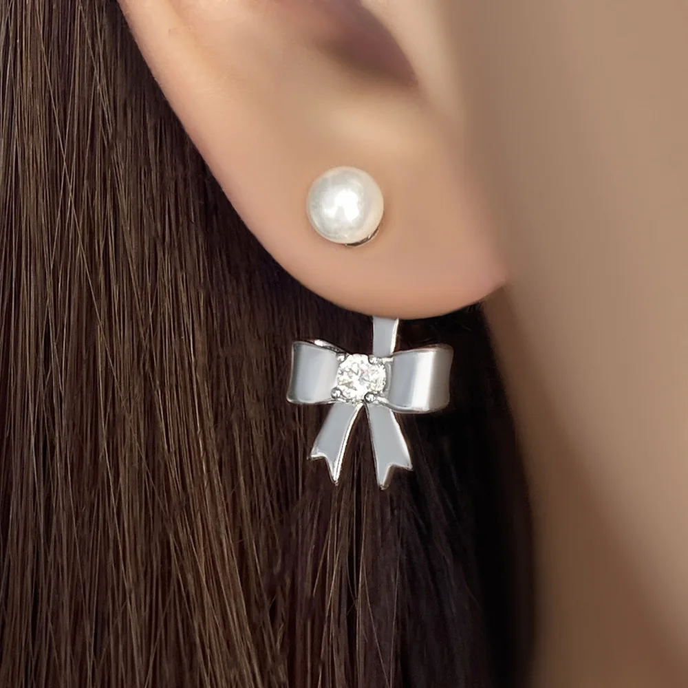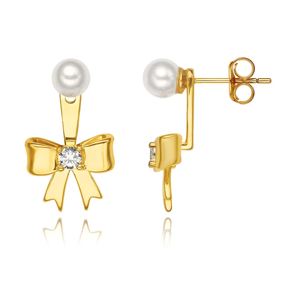 New Fashion Gold Silver Plated Bow Stud Earrings for Women Hypoallergenic Pearl Ribbon Earrings Jewelry