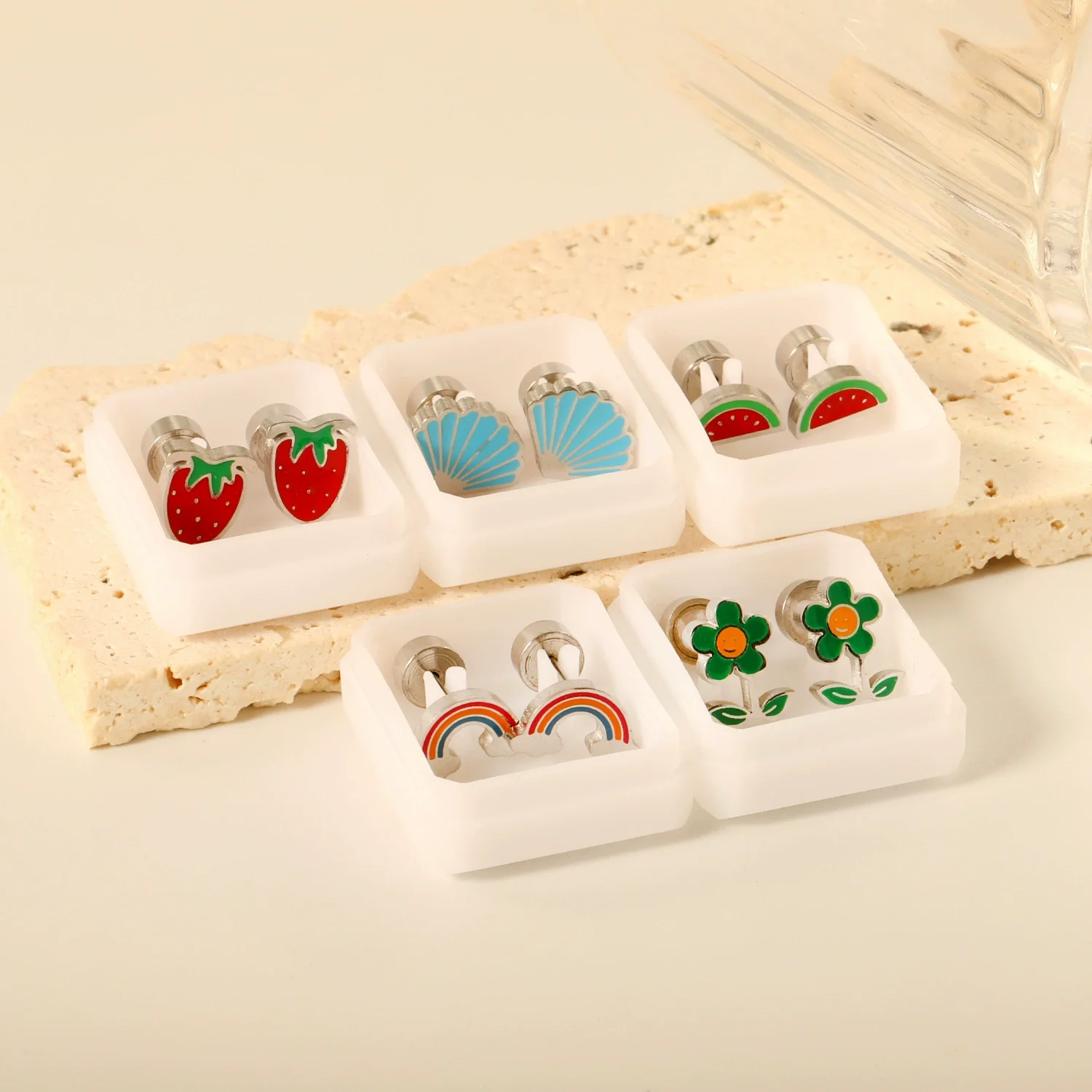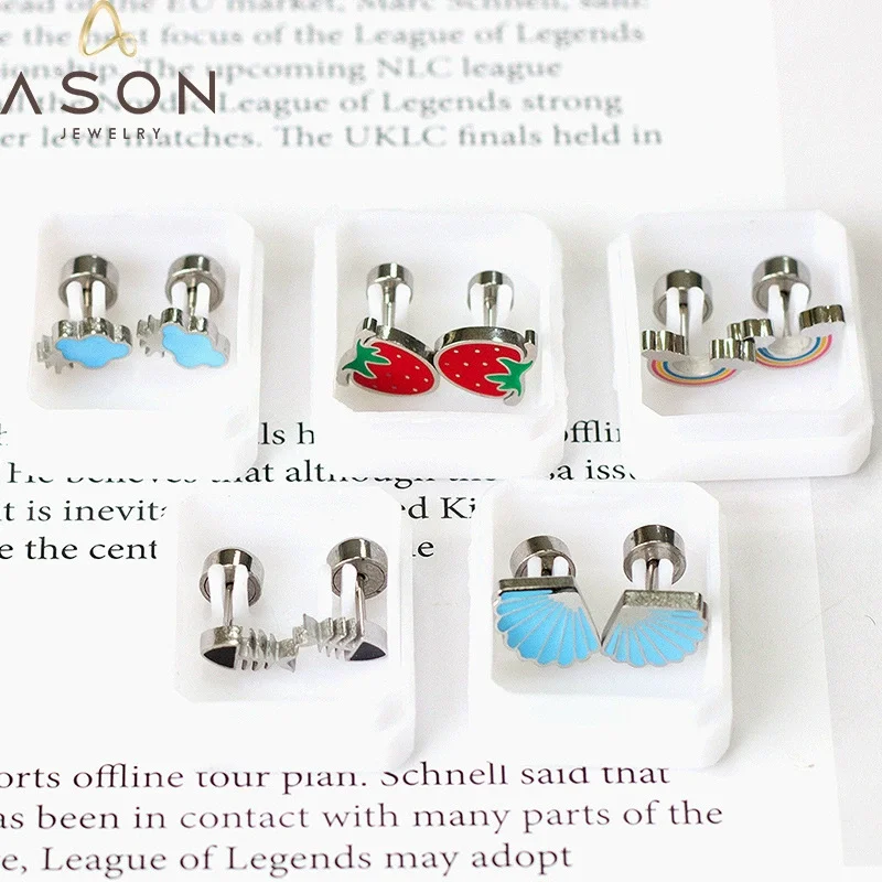 Ins Style 2025 18K Gold Plated Stainless Steel Cute Fruit Plant Rainbow Stud Earrings for Women's Gifts