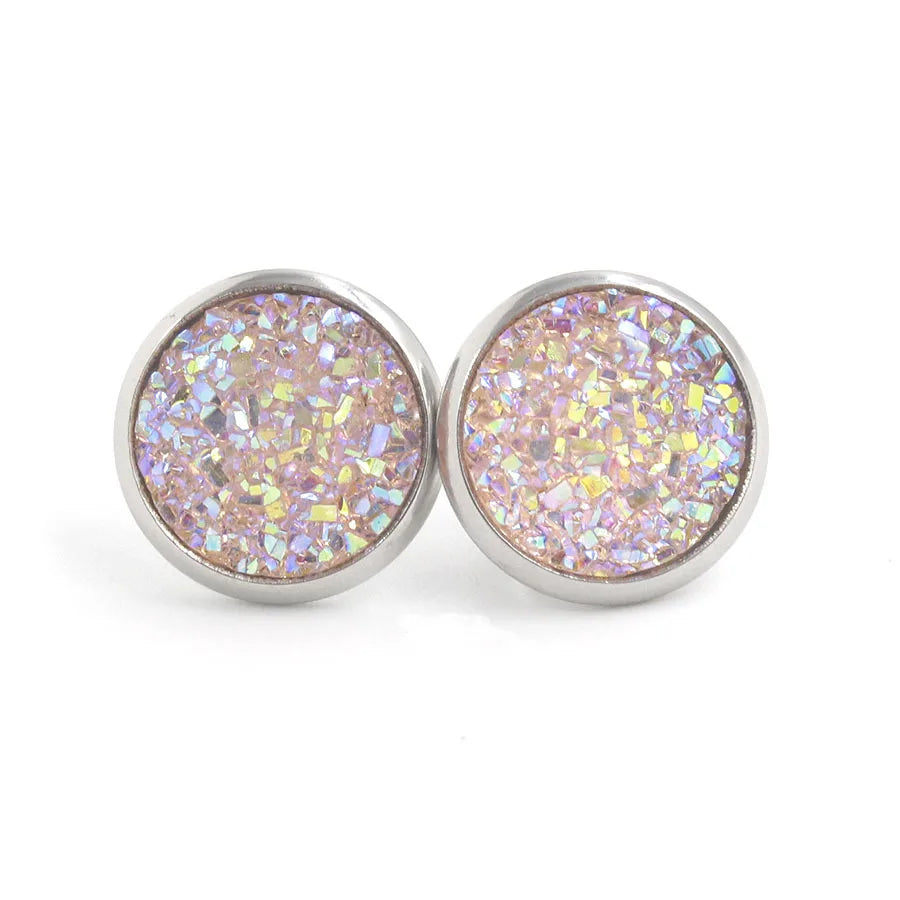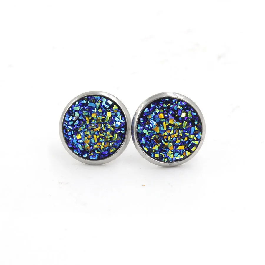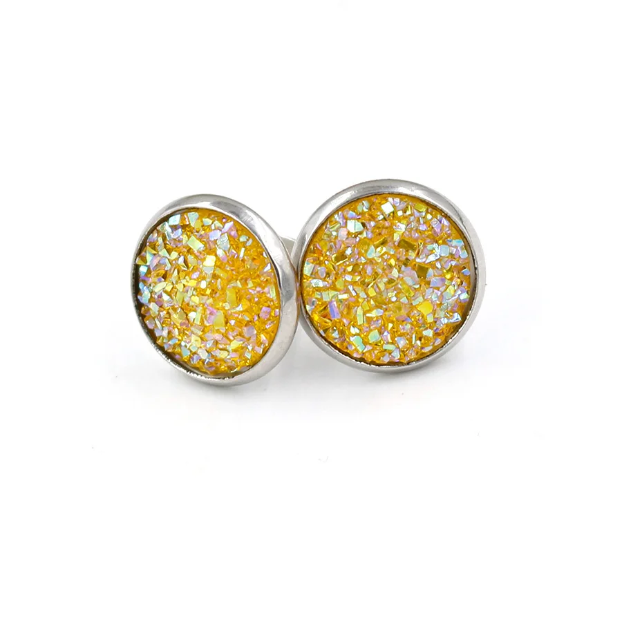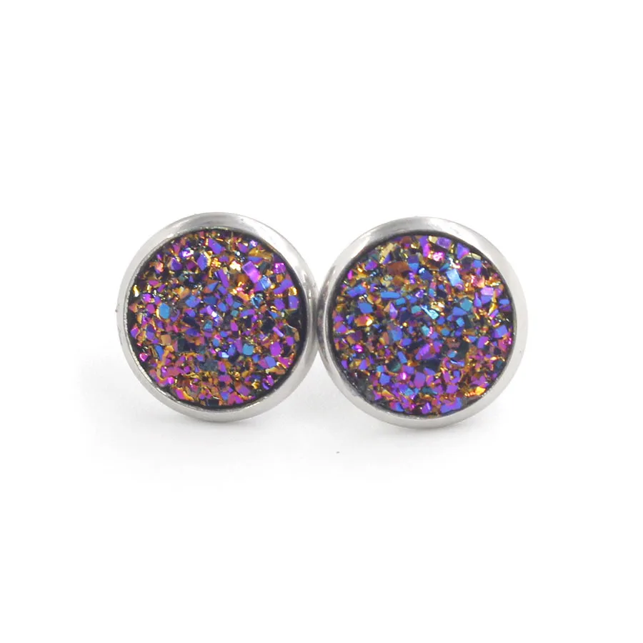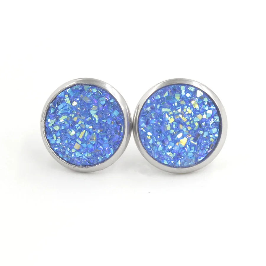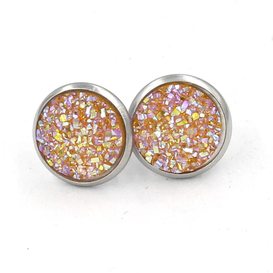 Multi Color Bling Bling Natural Stones Round Stainless Steel Full Star Shining Stud Resin for Men and Women Stud Earrings
