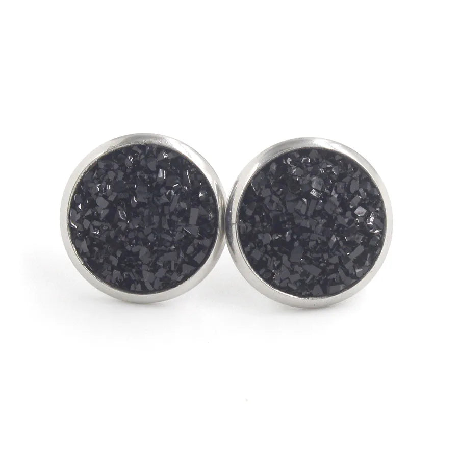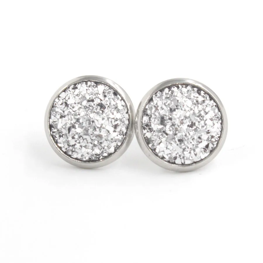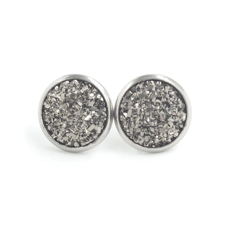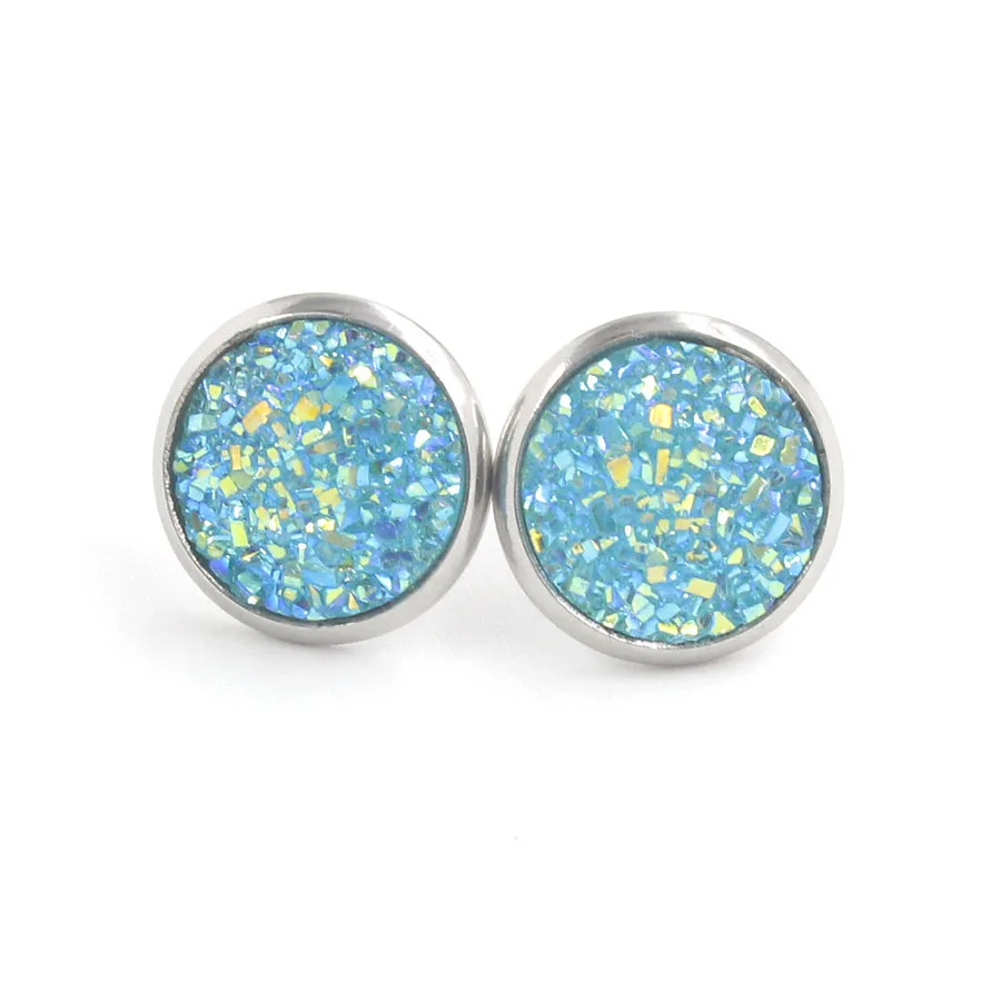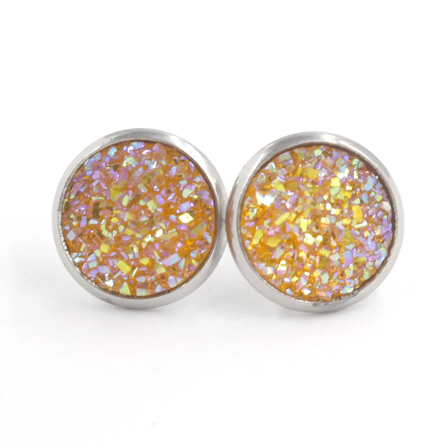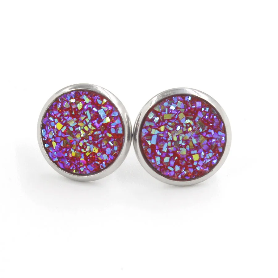 Multi Color Bling Bling Natural Stones Round Stainless Steel Full Star Shining Stud Resin for Men and Women Stud Earrings
