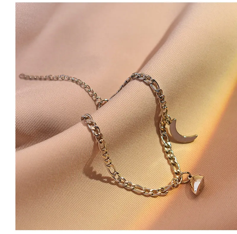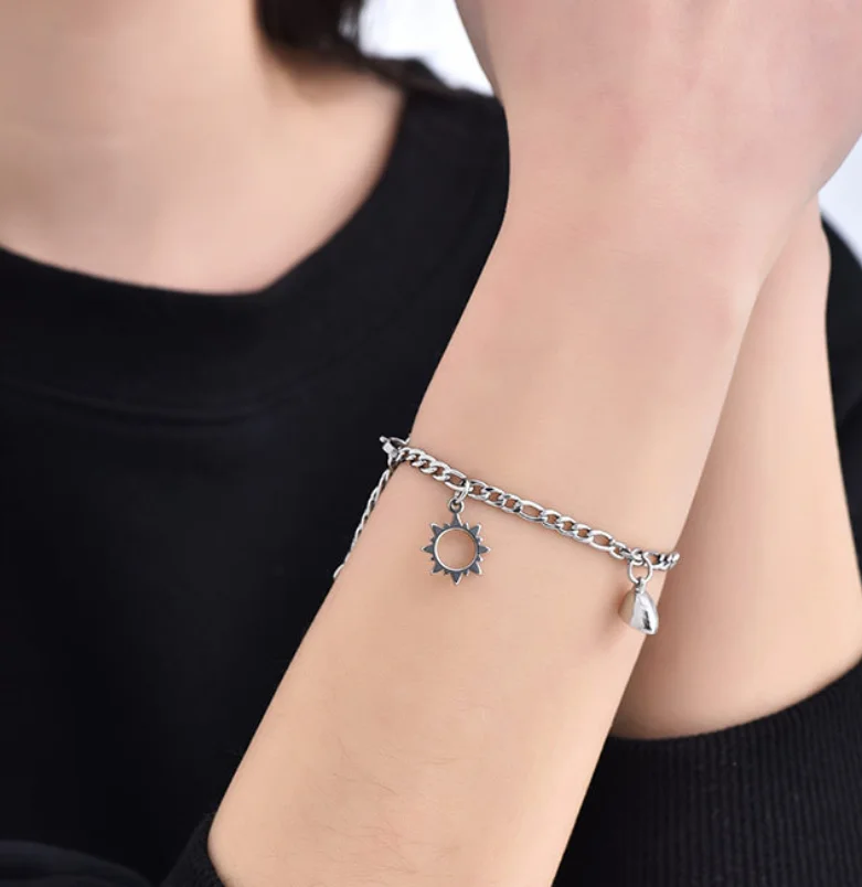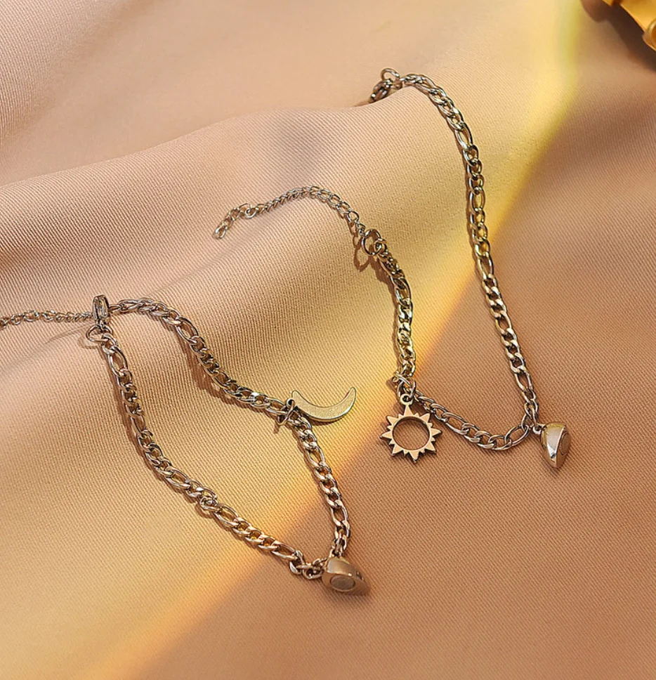 New Arrival Stainless Steel Magnetic Heart Sun and Moon Couple Pendant Bracelets Valentine's Day Gift for Men Women