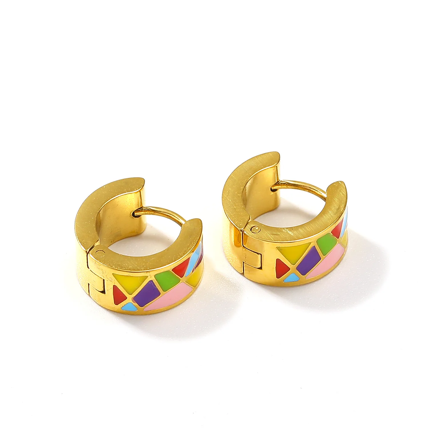 Vintage 18K Gold Plated Stainless Steel Hoop Earrings Tarnish Free Hypoallergenic Jewelry Enamel Drop Dangle Earrings for Women