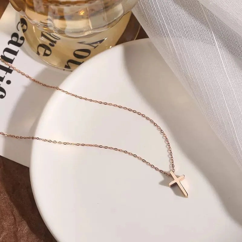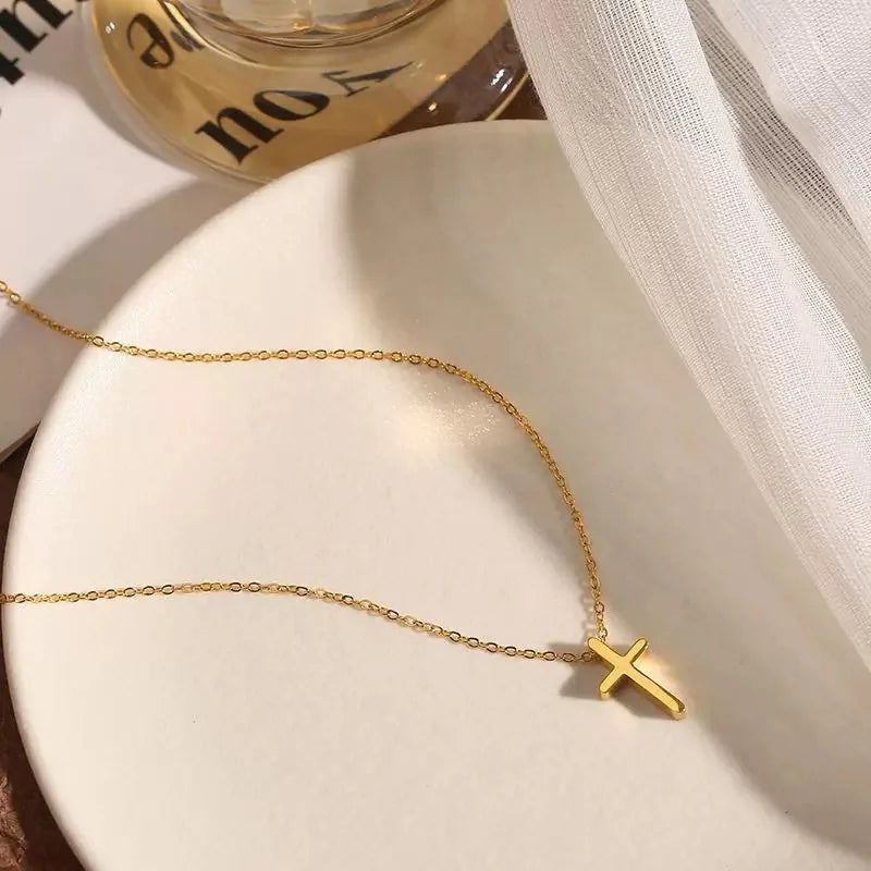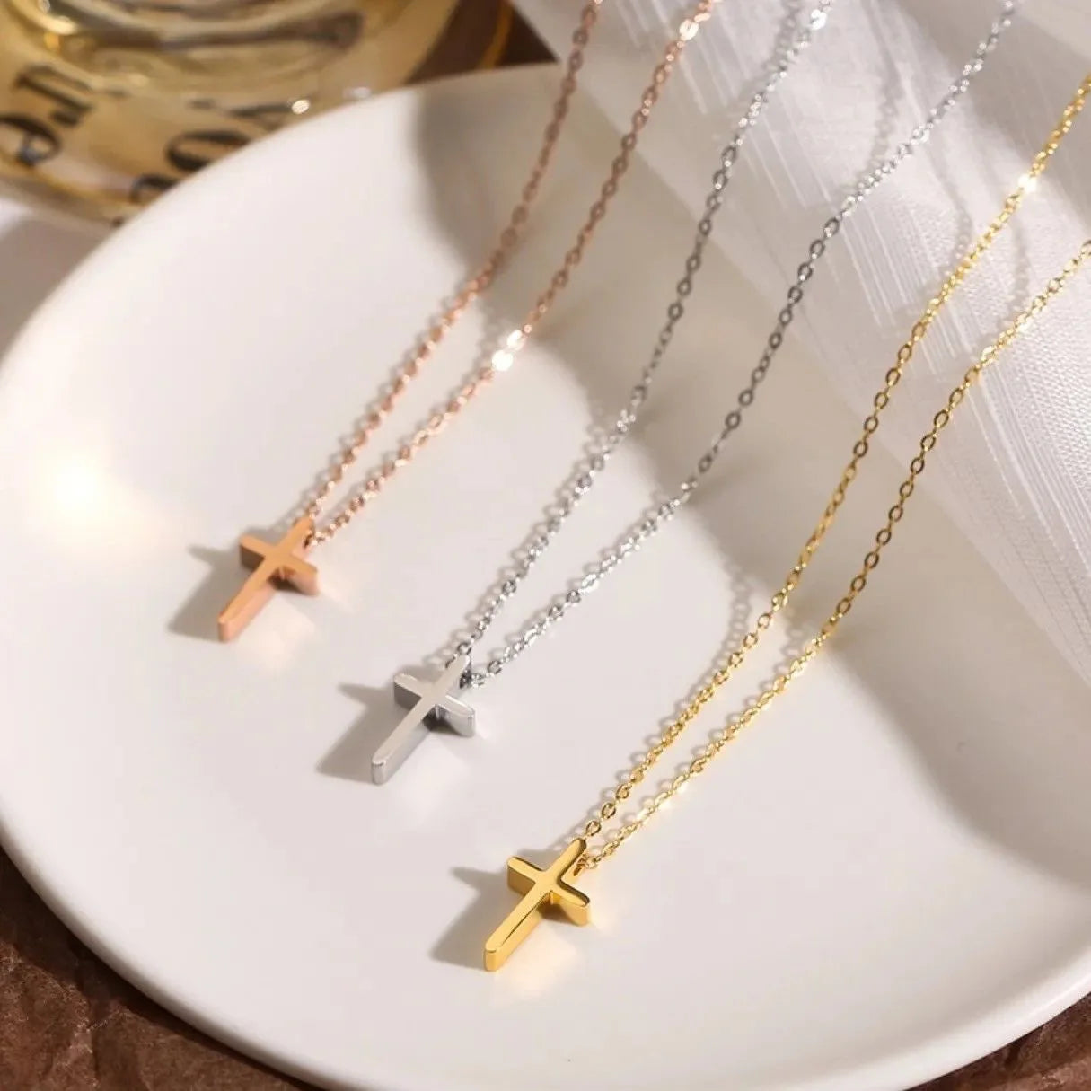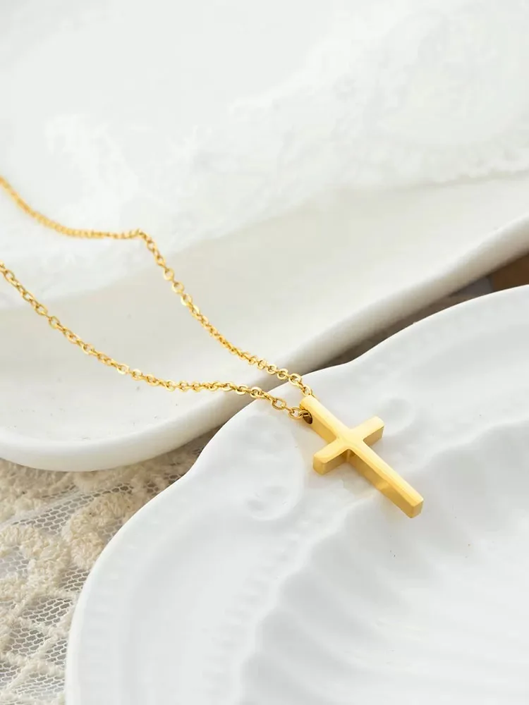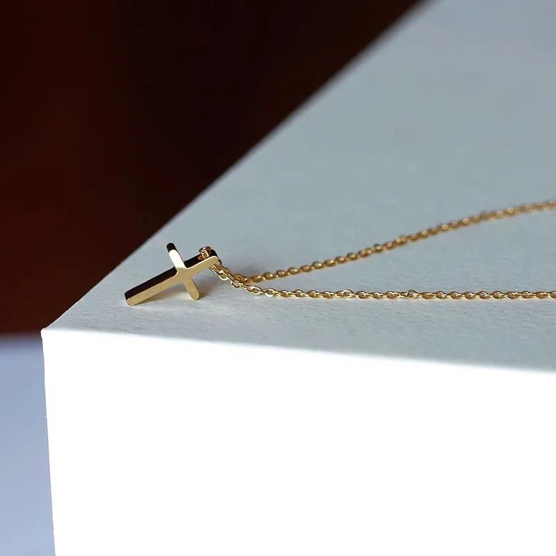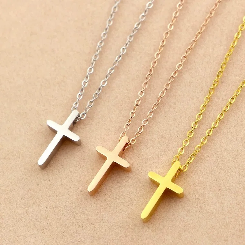 Wholesale Waterproof 18K Gold Plated Cross Pendant Necklace Stainless Steel Religious Pendant for Women