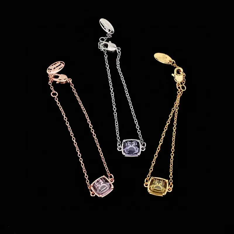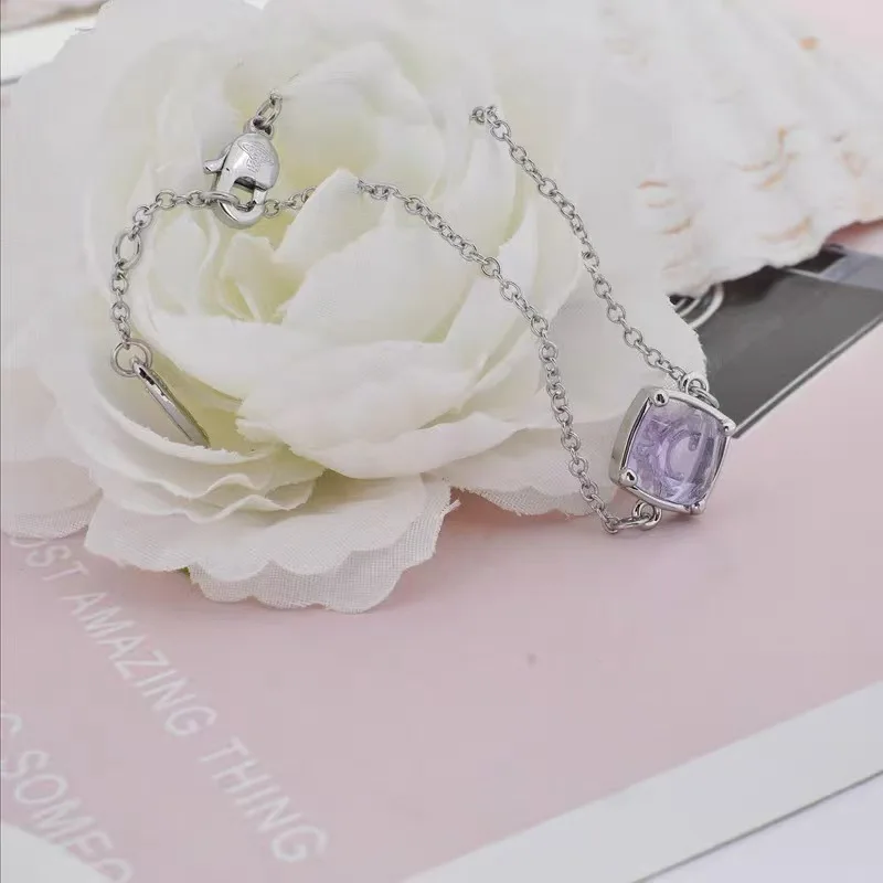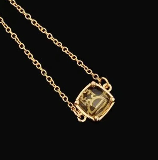 Fashionable Square Crystal Pendant Necklace Valentines Day 18K Gold Plated Stylish Accessory Jewelry for Gifts