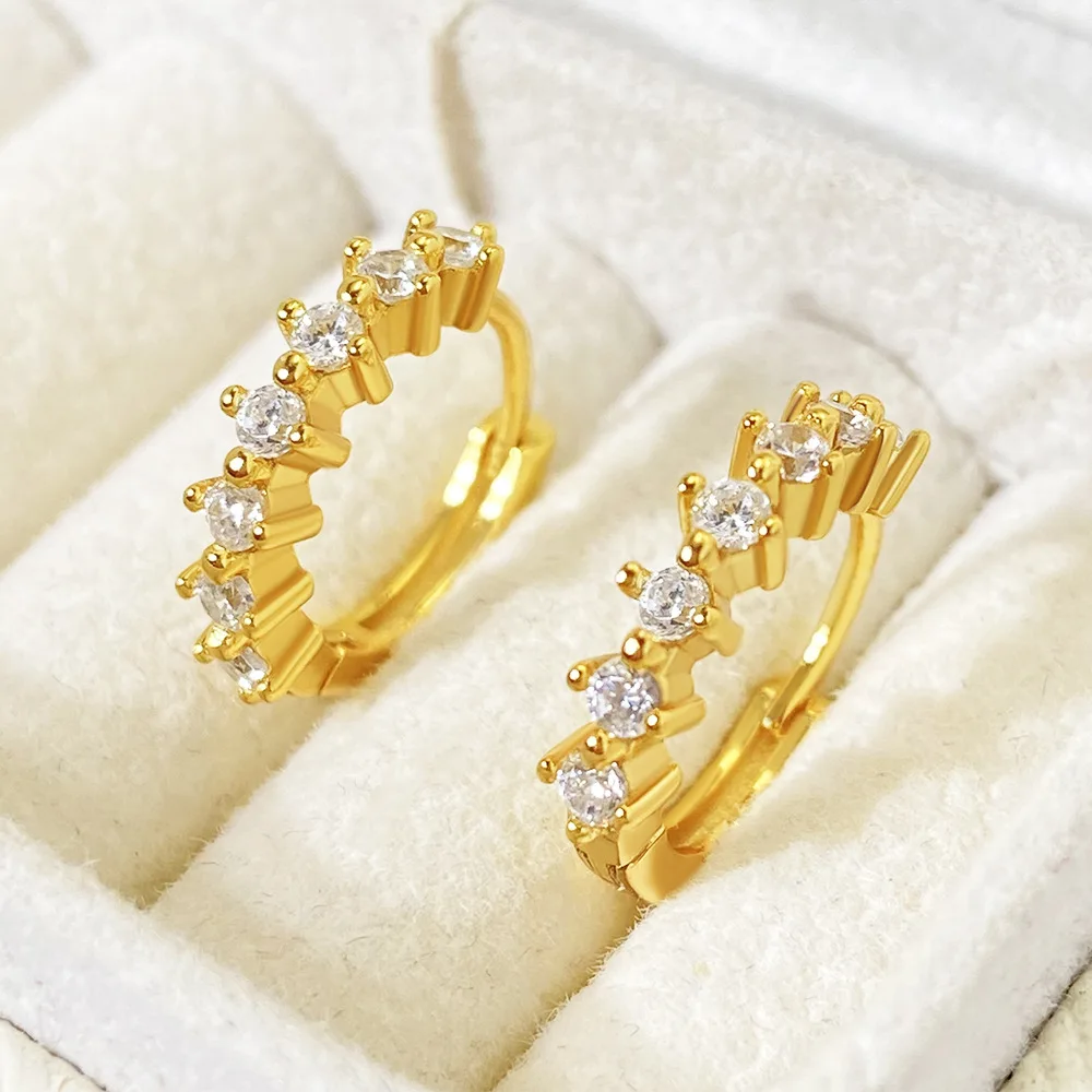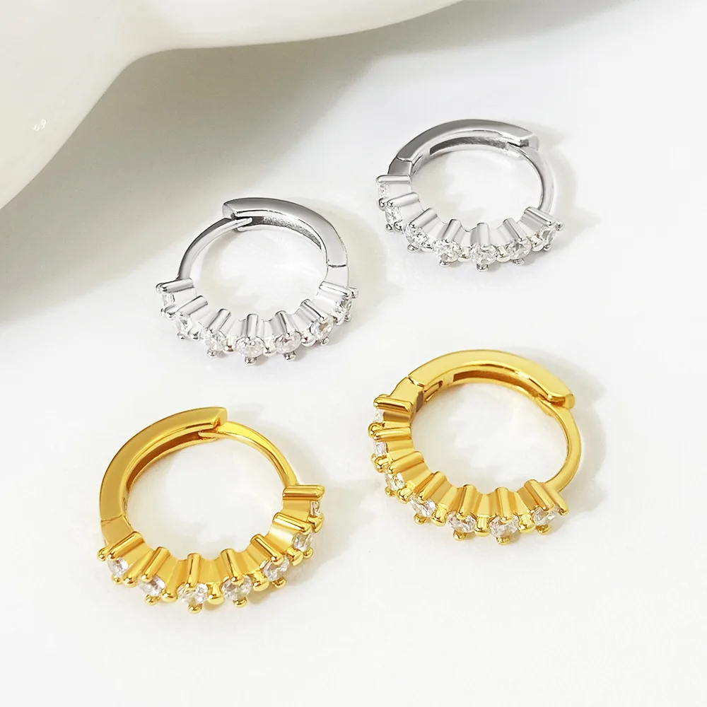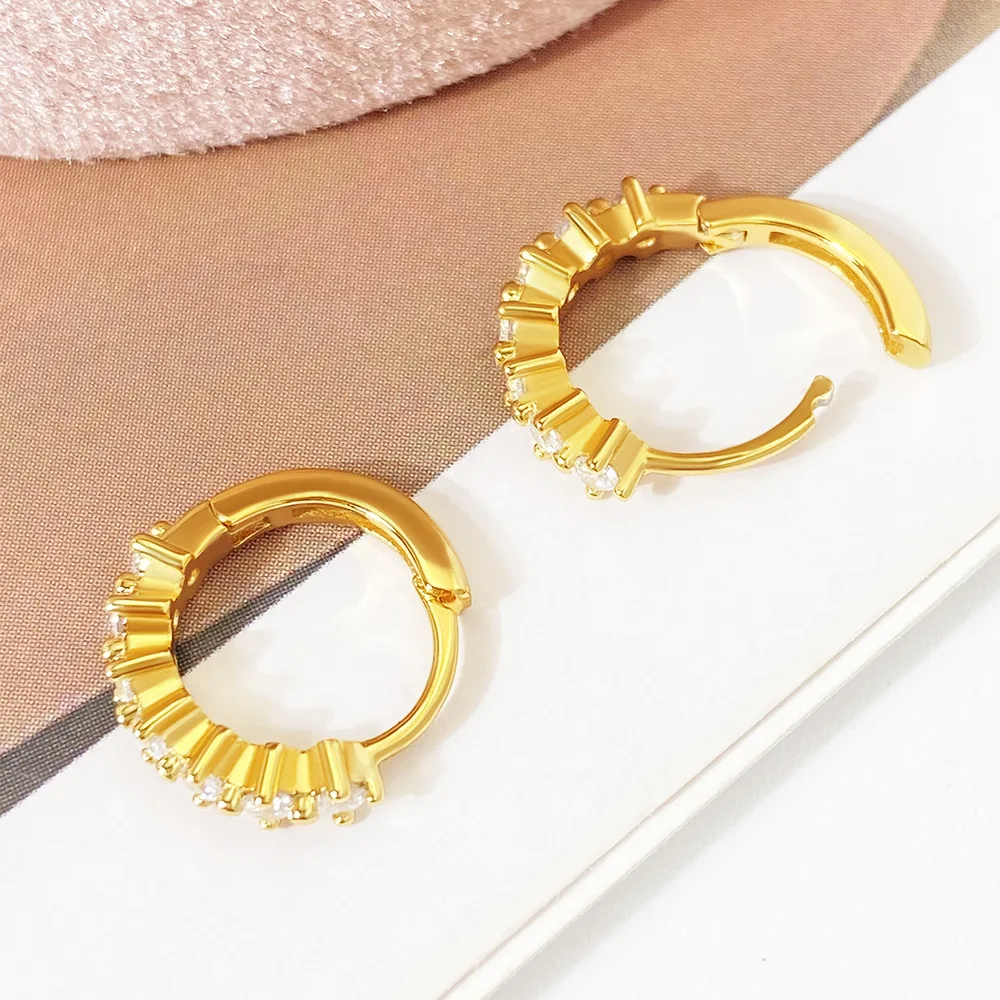 High Quality 925 Sterling Silver Cubic Zirconia Huggie Hoop Earrings Vintage 18K Gold Plated Non-Tarnish Women's Earrings