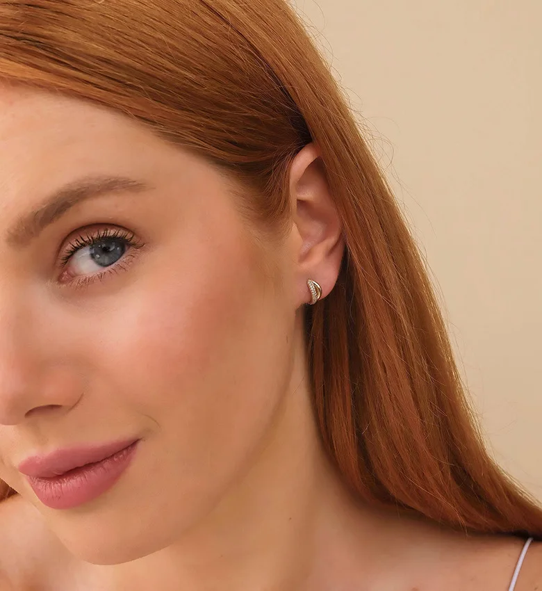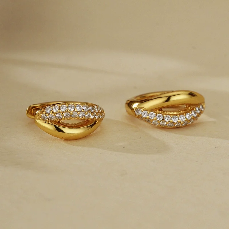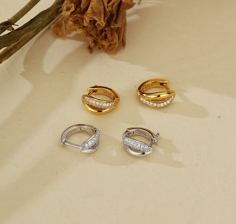 925 Silver Gold Plated Minimalist Hoop Earrings for Women Dainty Zircon Jewelry with Double-Line Design Everyday Earrings