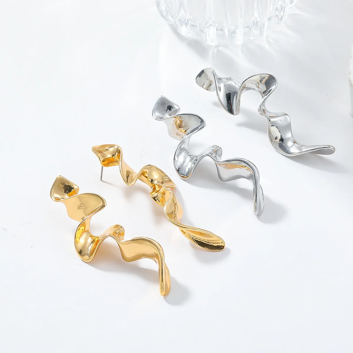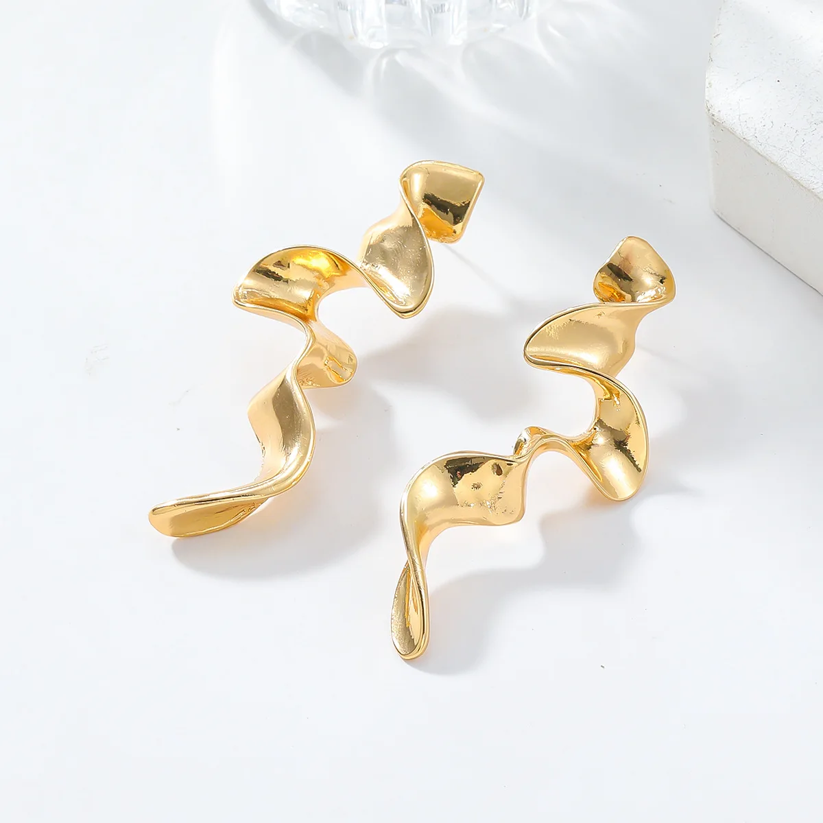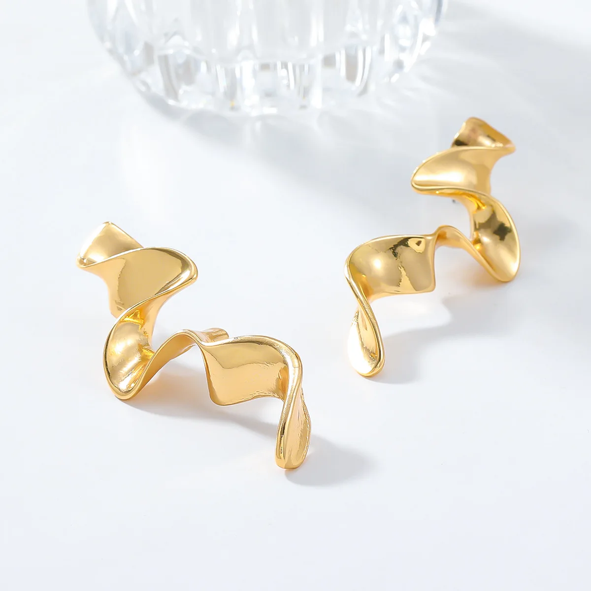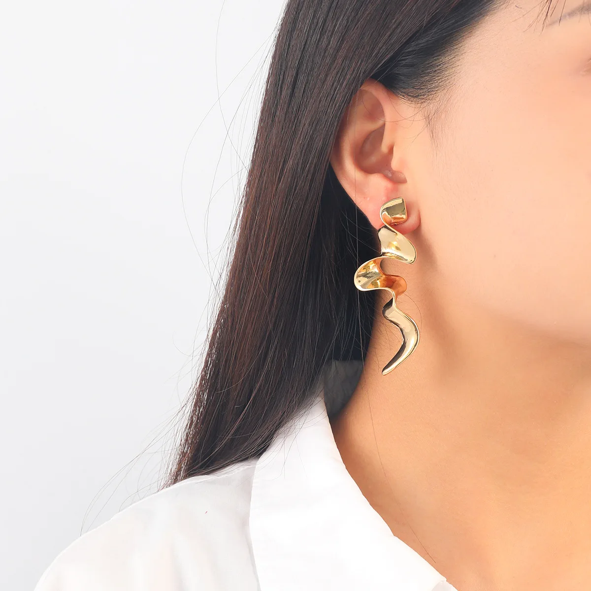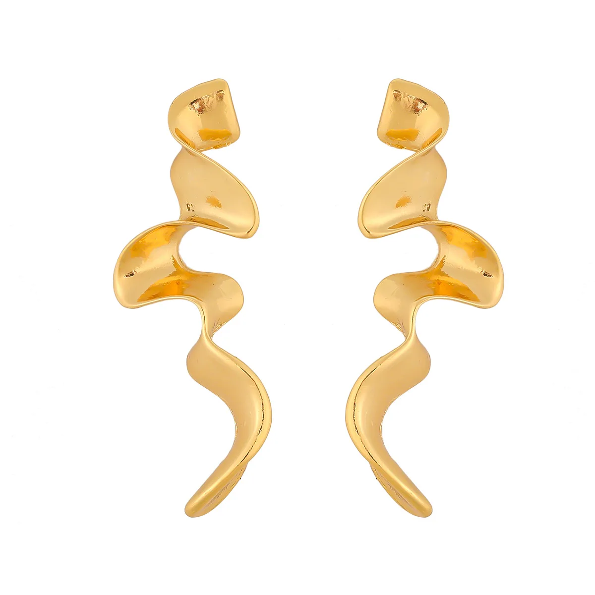 Bold Gold Plated Spiral Drop Statement Earrings Vintage Metal Twisted Long Drop Earrings for Women