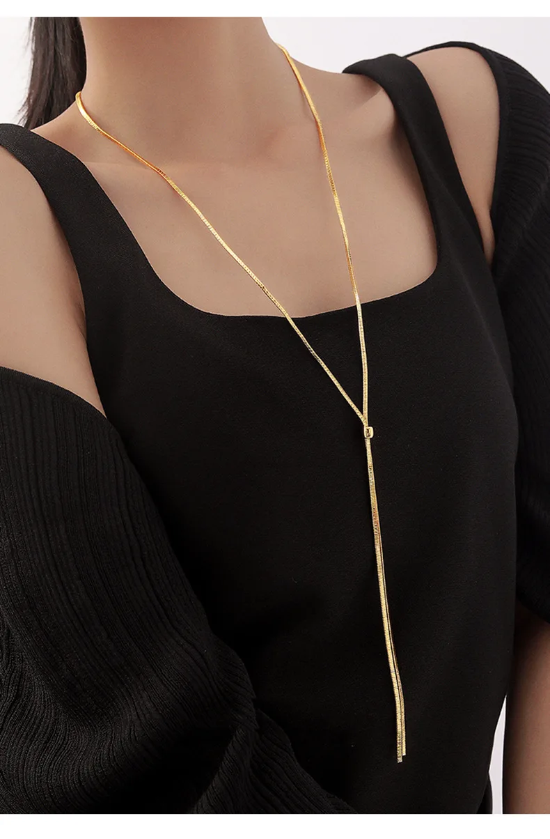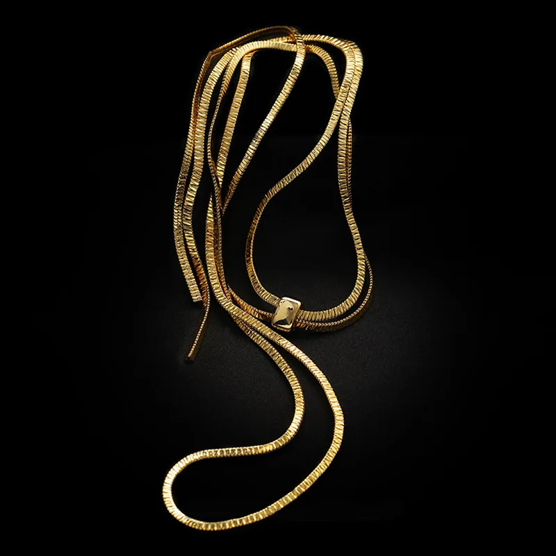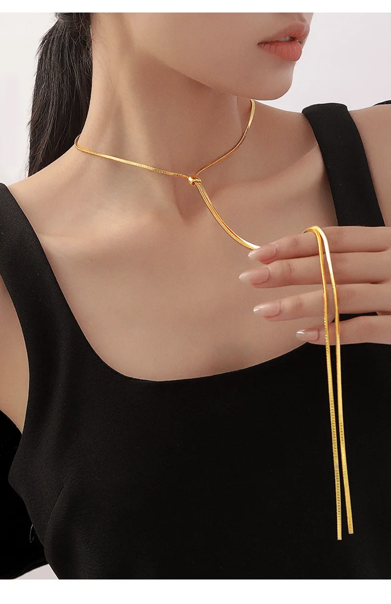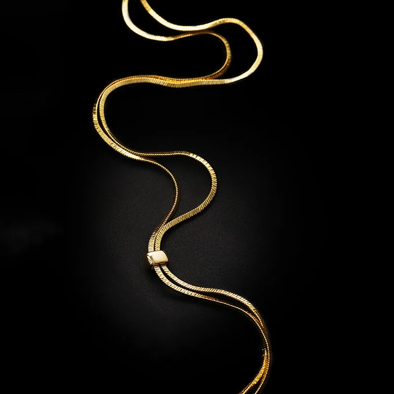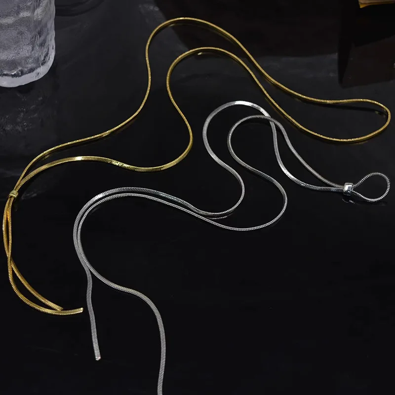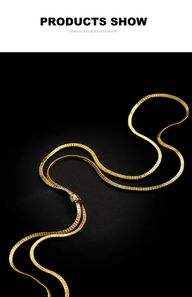 Trendy Gold Plated Stainless Steel Flat Snake Chain Necklace Adjustable Length Fashion Layered Necklaces for Women