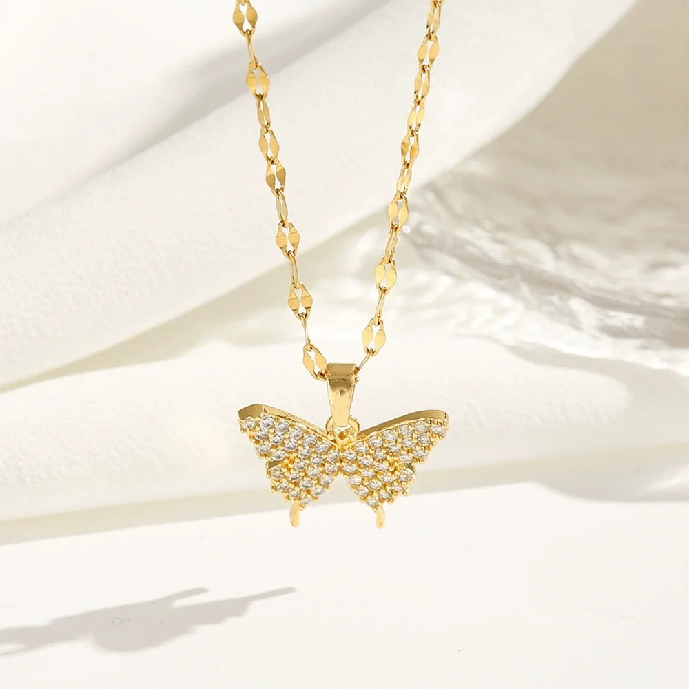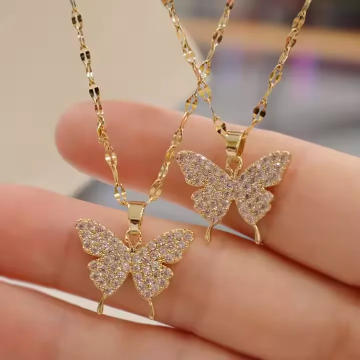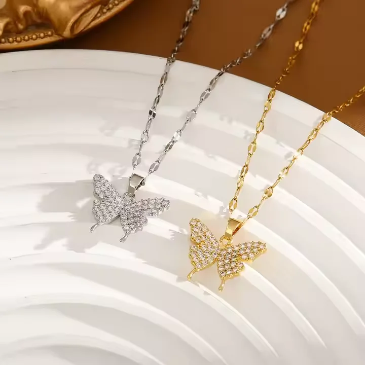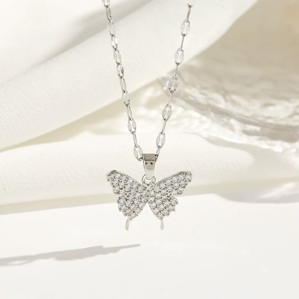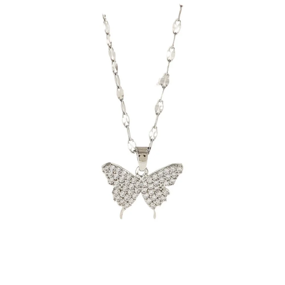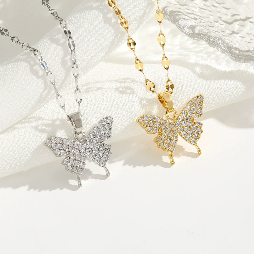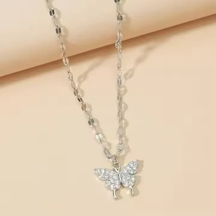 Butterfly Pendant Necklace Zircon Chain Choker with Layered Design Minimalist Korean Jewelry for Women